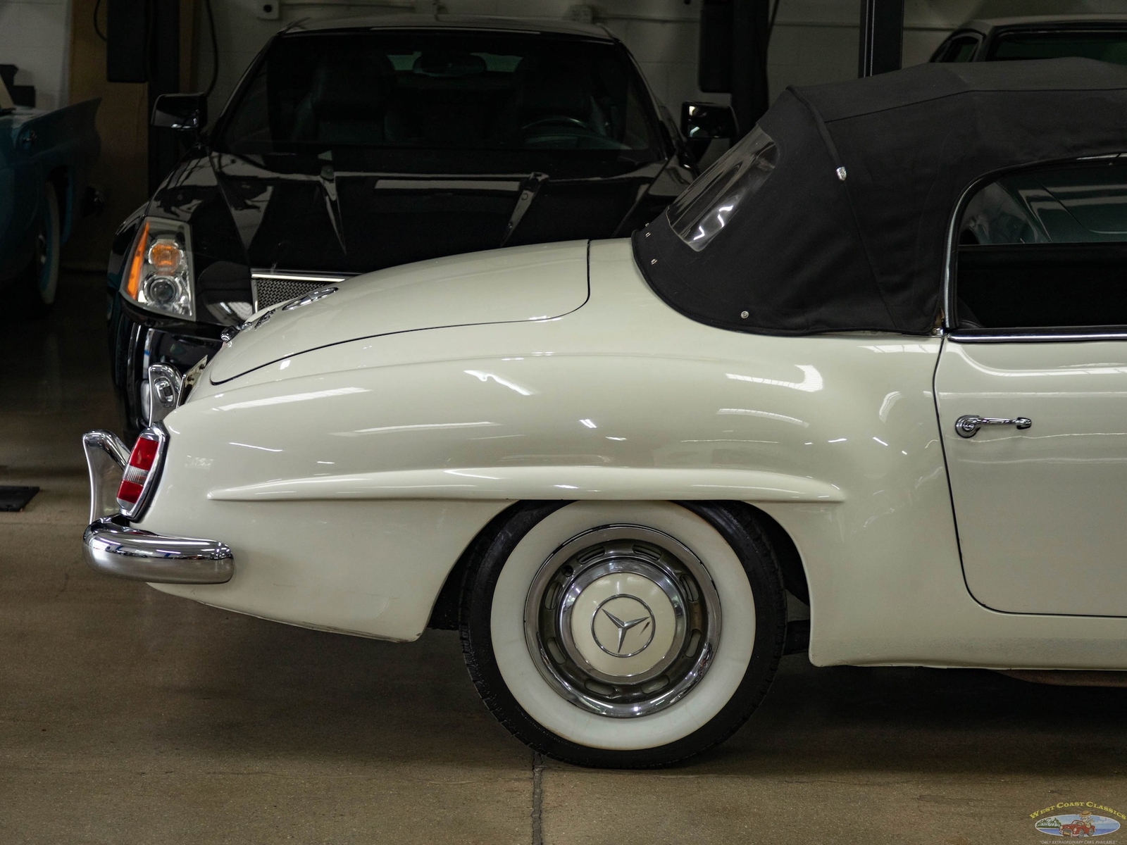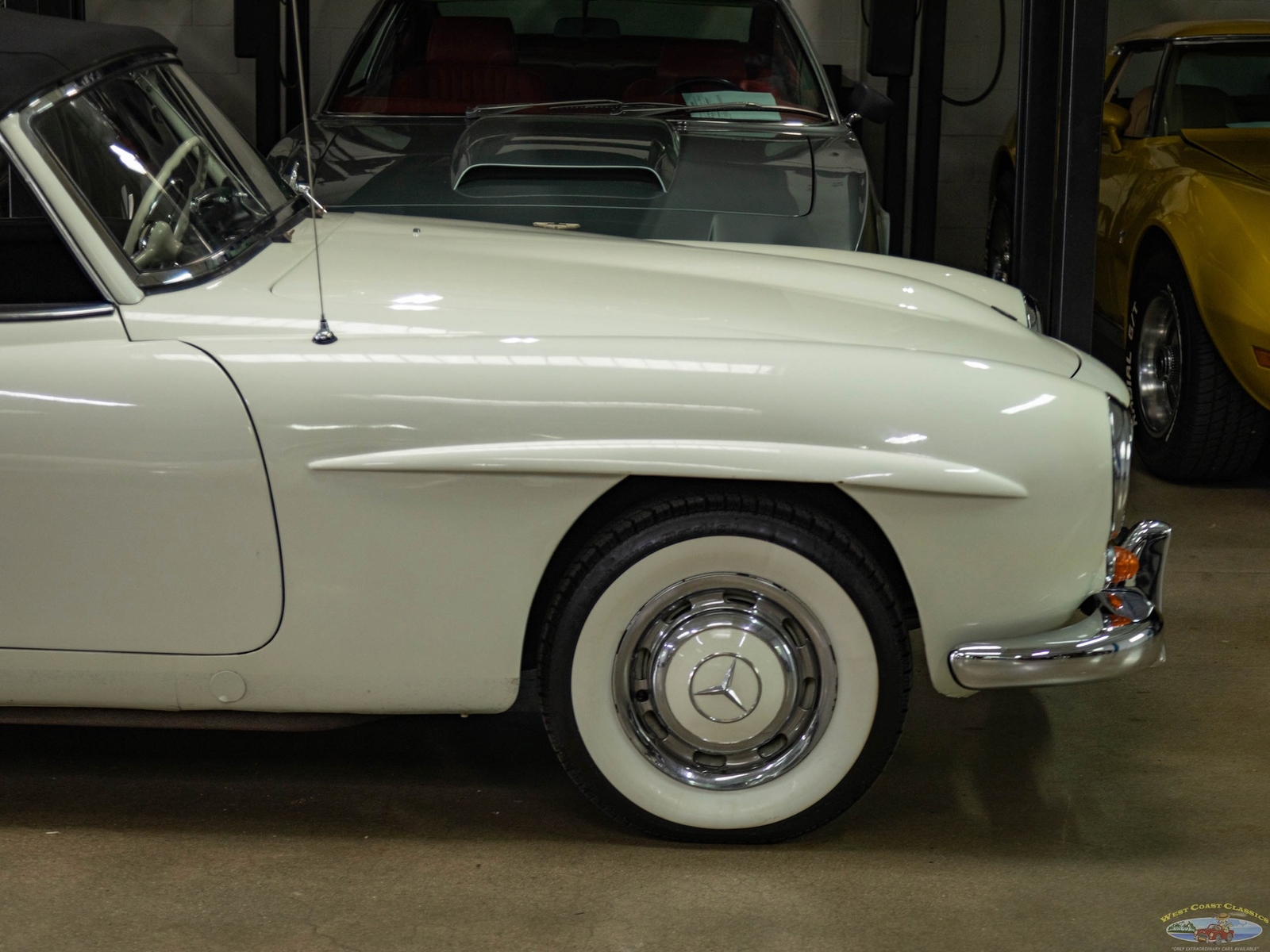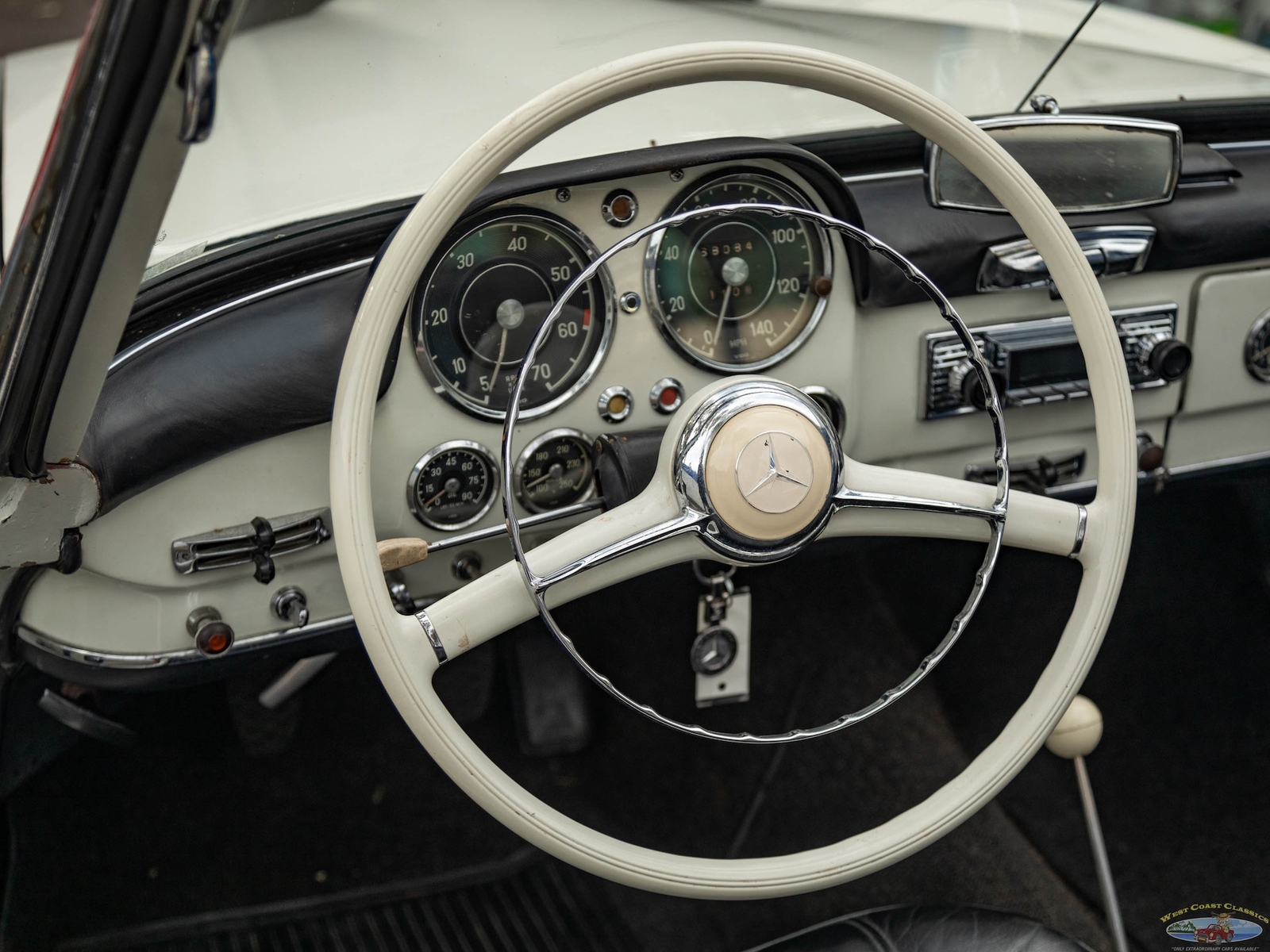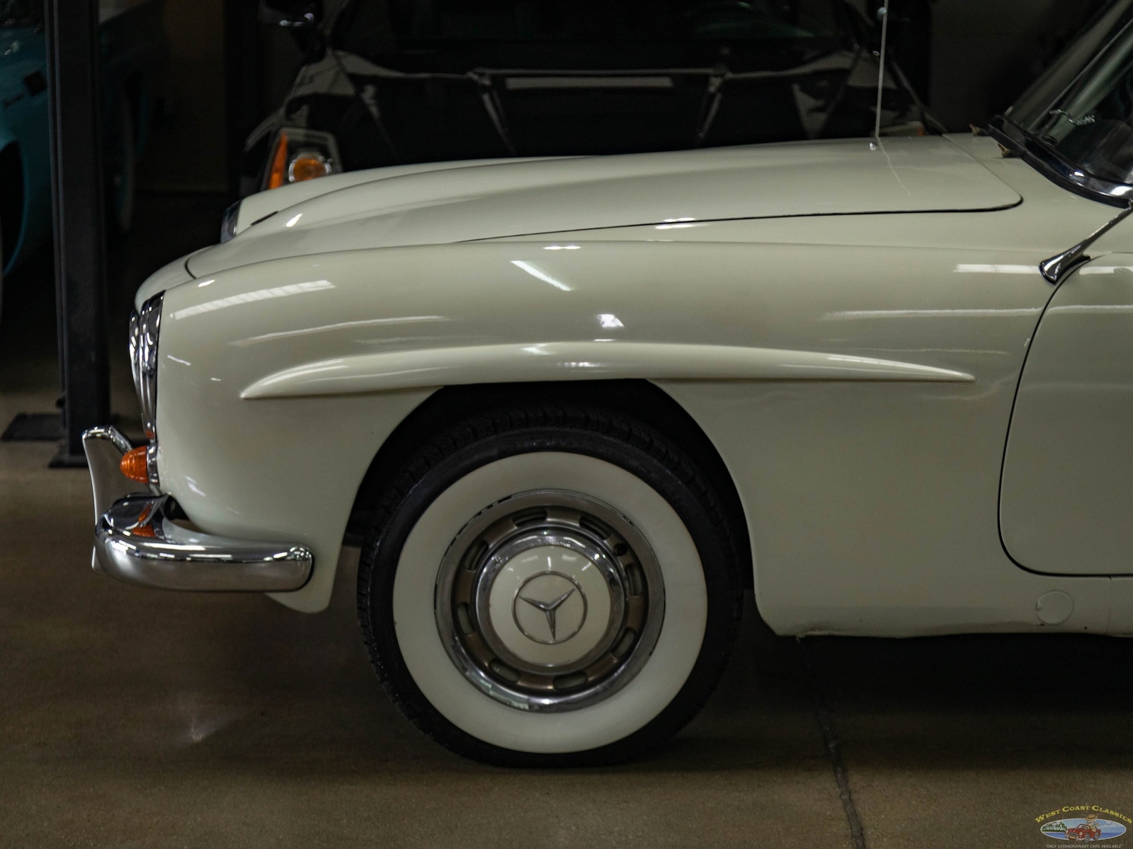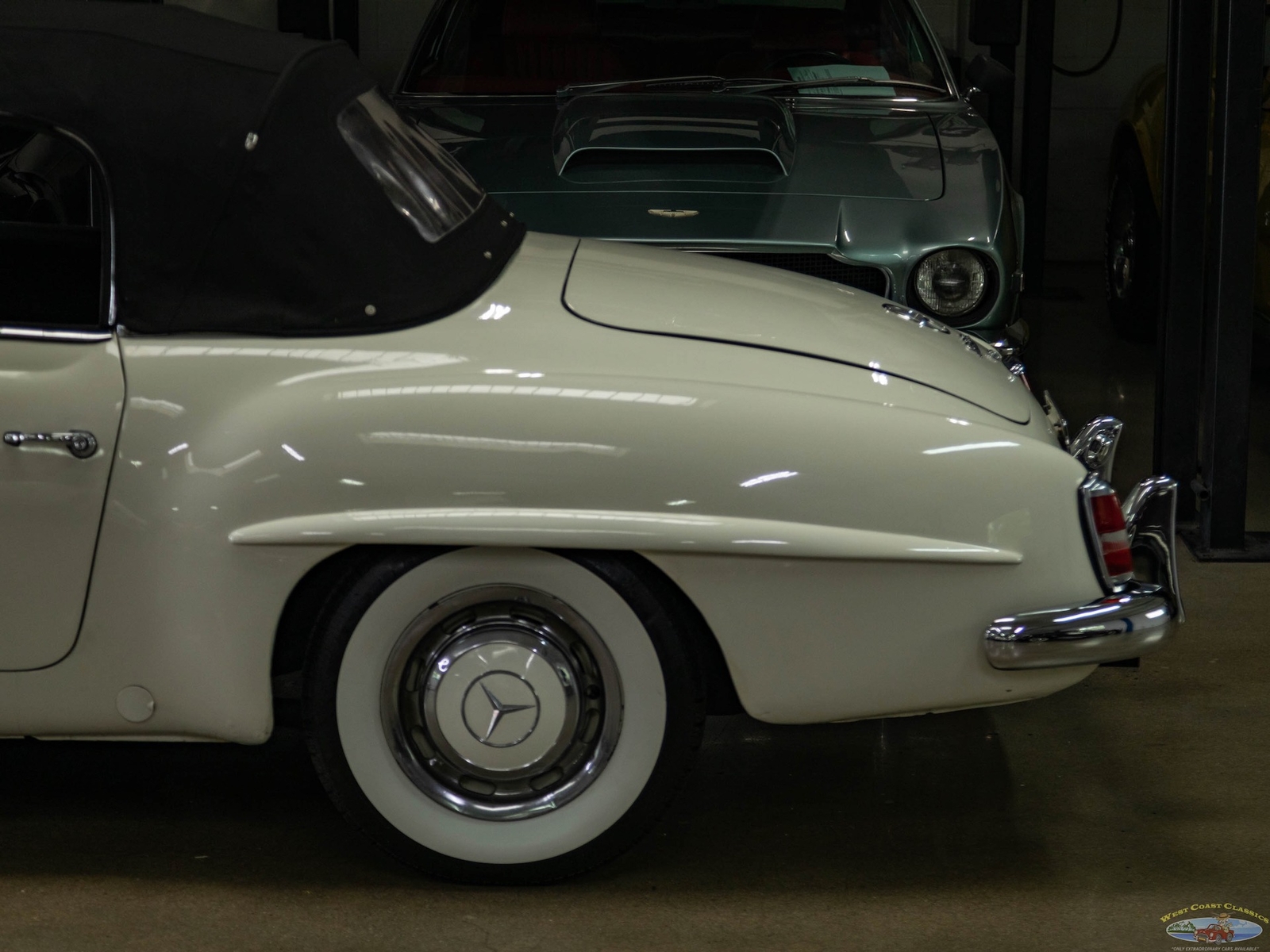 Odometer shows 68,000 milesMatching numbers1.9L inline SOHC 4-cylinder engine4-speed manual transmissionWhite exteriorBlack convertible topNew tiresRecently servicedBlack leather interiorThis Mercedes-Benz 190 SL is finished in White with a Black convertible soft top, over a Black leather interior with black carpet. It rides on the correct set of 13-inch steel wheels with polished trims and body-coloured hub caps. A more modern Pioneer radio/cassette player has been fitted in the cabin. The older White paintwork is in generally fair condition, having been repainted reportedly sometime during the 1990s but it should be noted that it does show wear such as stone chips and small markings and there are some small areas of cracking on the cars lower sills, and some areas where the paint has now started to peel away. Inside, the cabin presents well, with some light creasing on the black leather upholstery, but with no major wear. The interior has a charming and what most would consider time-earned patina throughout. This 190 SLs most recent routine maintenance was reportedly carried out during September 2021 by German Car Service with the work comprising of an engine oil and filter change, along with the replacement of the brake fluids, all of the cars belts, and the rebuild of the cars carburetors, with very few miles on the car since the service. Power comes from a Type M121 BII 1.9L SOHC inline-four carbureted engine (based on the 300SL's straight-six) which has been equipped with upgraded Weber carburetors and the rear wheels are driven by way of a fully synchronized 4-speed manual gearbox. Other mechanical features include four-wheel drum brakes and a fully independent suspension derived from the 300SL.