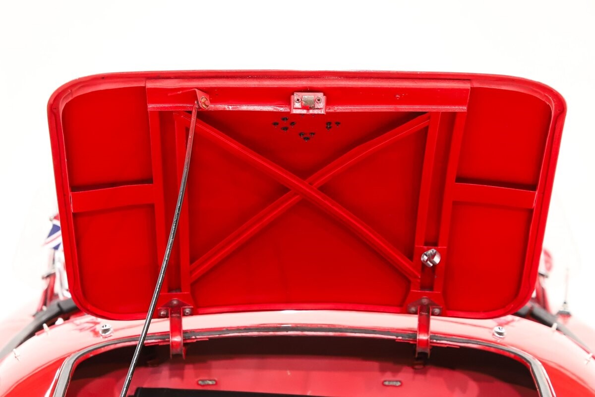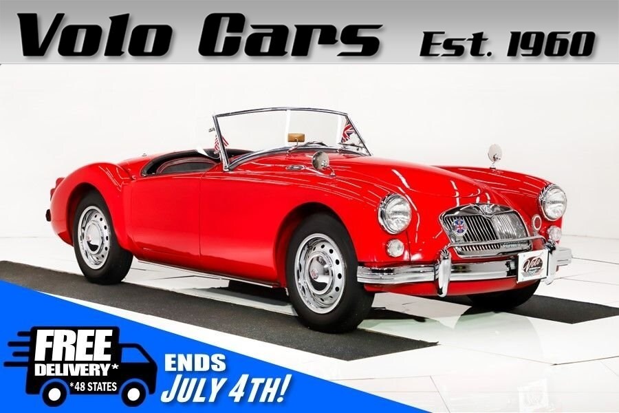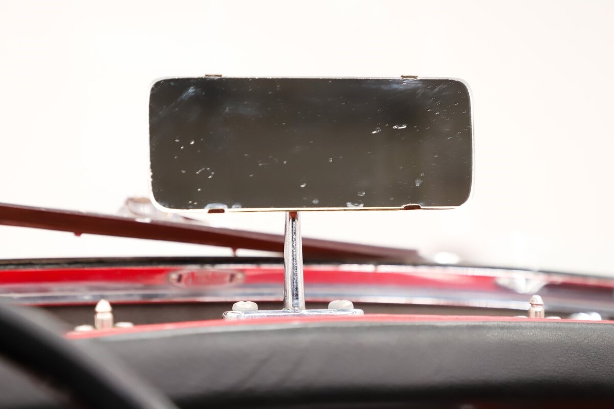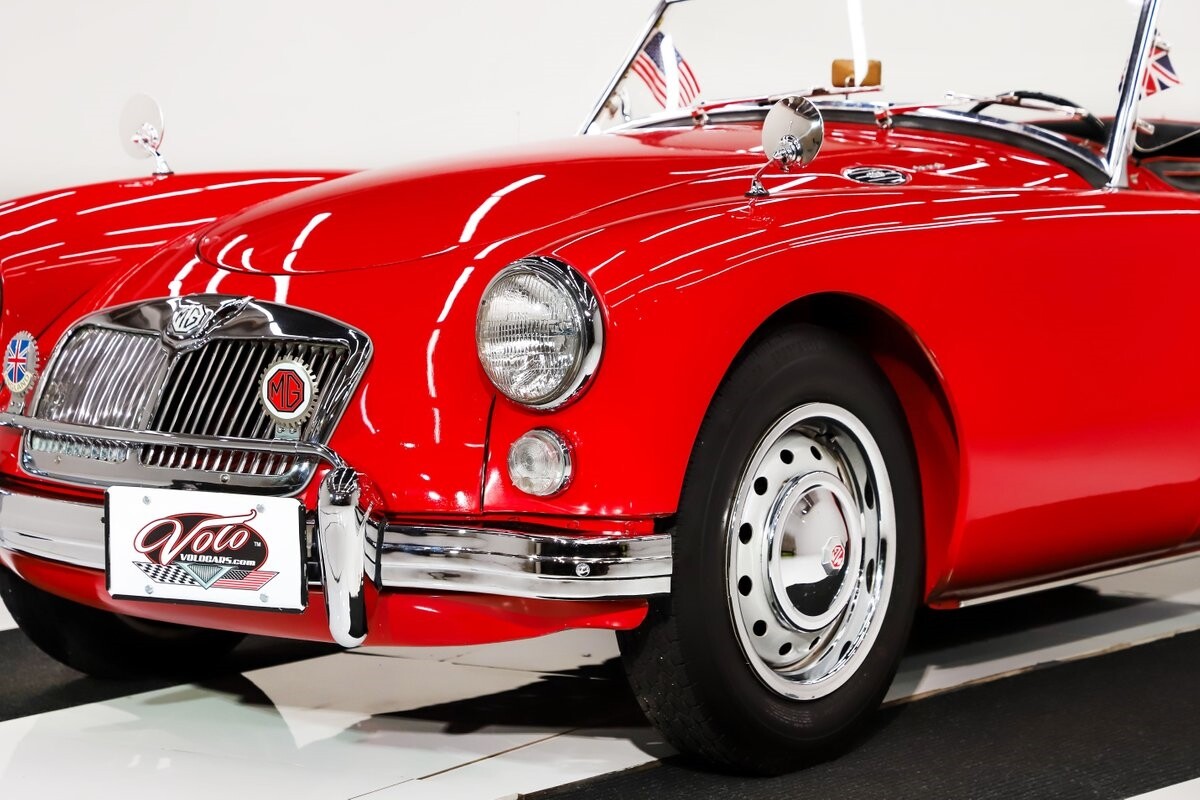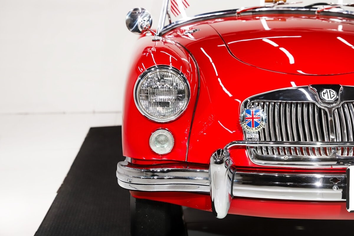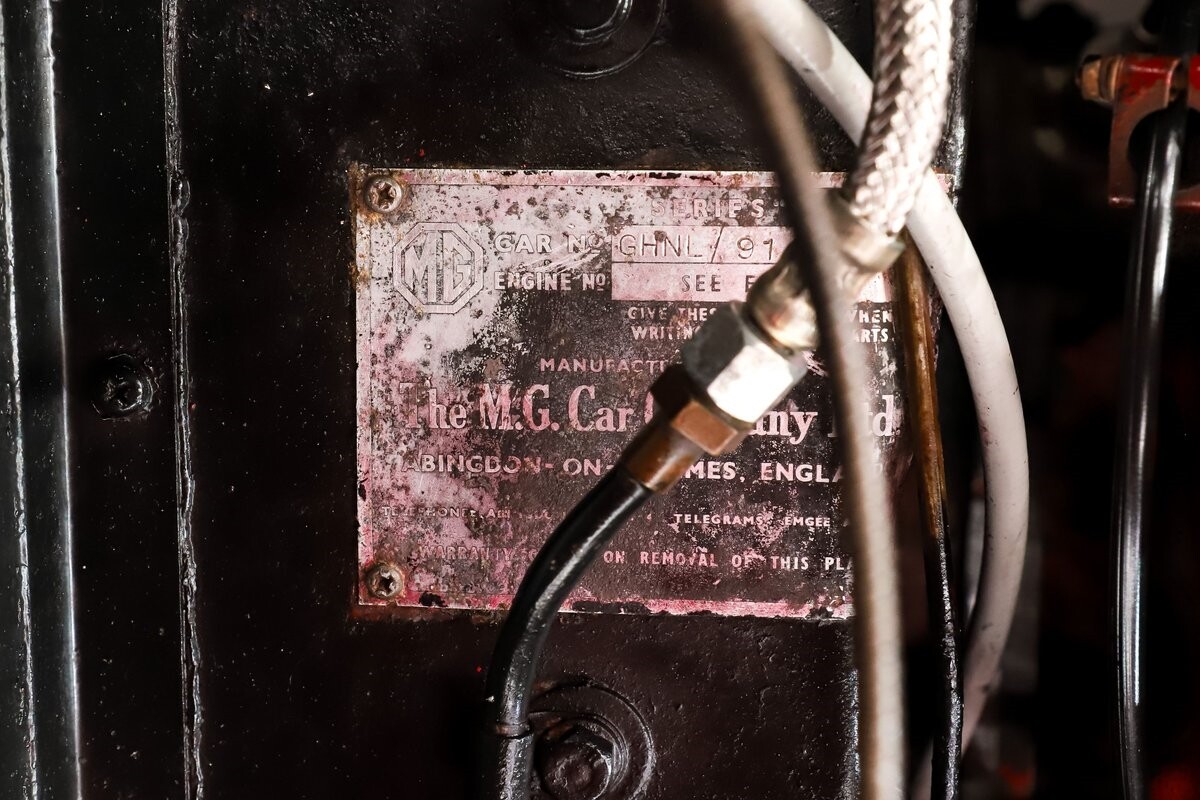 INTERIOR: The cabin is simplistic yet intriguing. The dash reminds you of an airplane cockpit. The gauges are stylish, matching, and complete with tachometer. It's even equipped with the factory AM radio and hidden under the dash is an 8-track player and speakers. Comfortable black with red piping bucket seats make driving this pleasurable. Other options include adjustable choke and throttle, and map lighting for your passenger to guide you on your road trip. Our favorite feature must be the original style 4 speed shifter coming up from the floor and completed with an authentic MG wood shift knob.