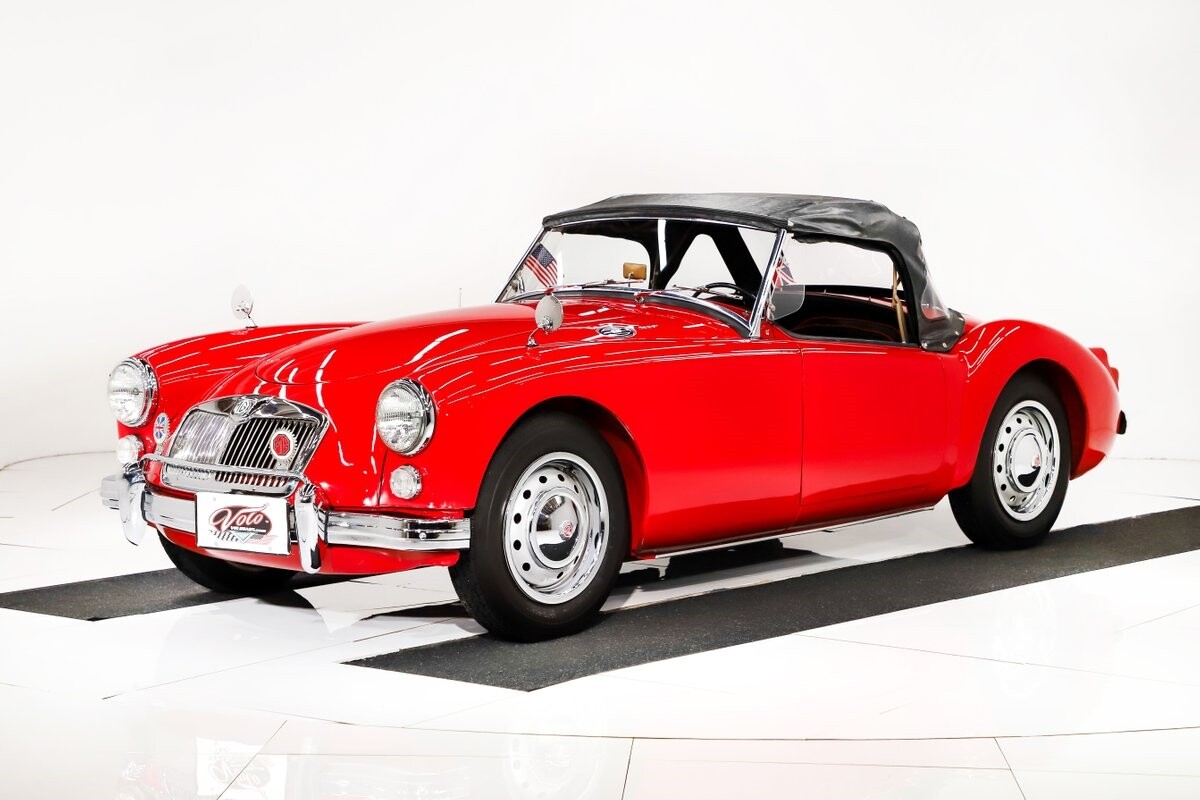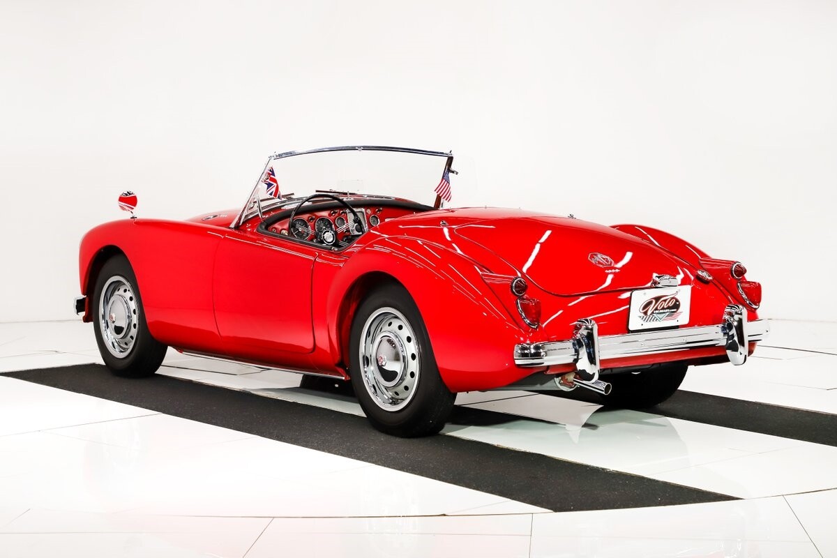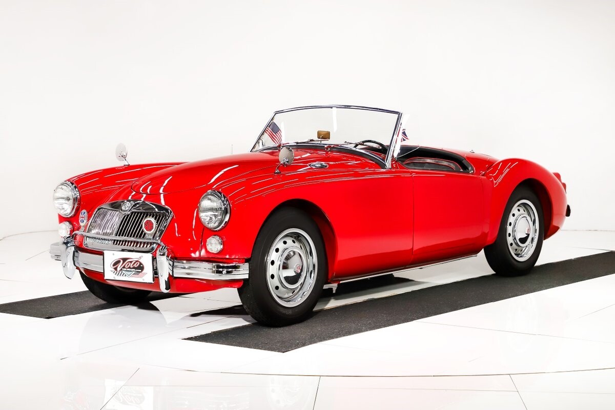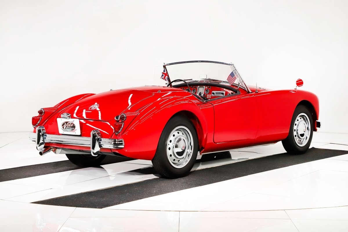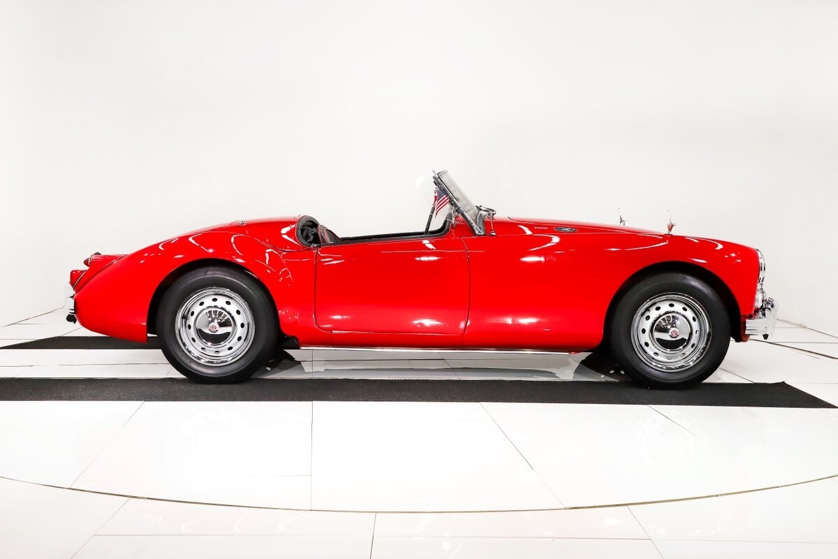 INTERIOR: The cabin is simplistic yet intriguing. The dash reminds you of an airplane cockpit. The gauges are stylish, matching, and complete with tachometer. It's even equipped with the factory AM radio and hidden under the dash is an 8-track player and speakers. Comfortable black with red piping bucket seats make driving this pleasurable. Other options include adjustable choke and throttle, and map lighting for your passenger to guide you on your road trip. Our favorite feature must be the original style 4 speed shifter coming up from the floor and completed with an authentic MG wood shift knob.