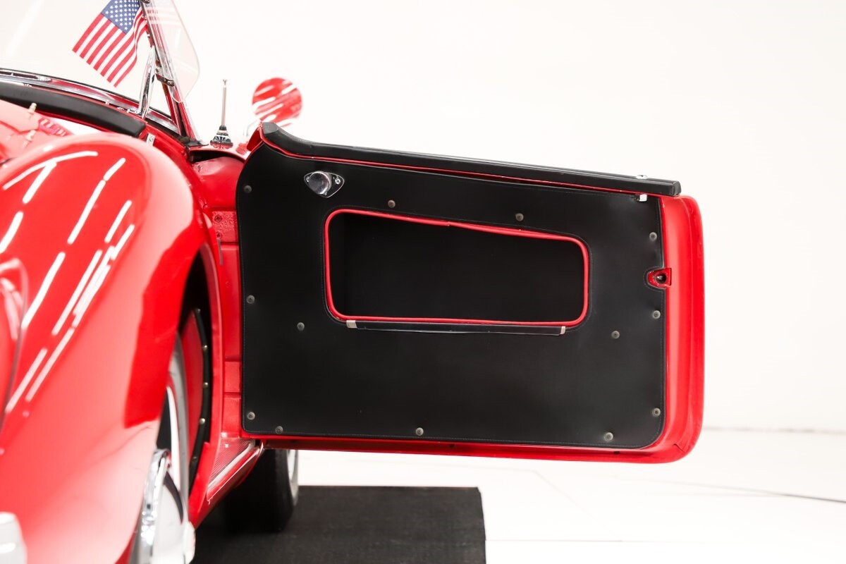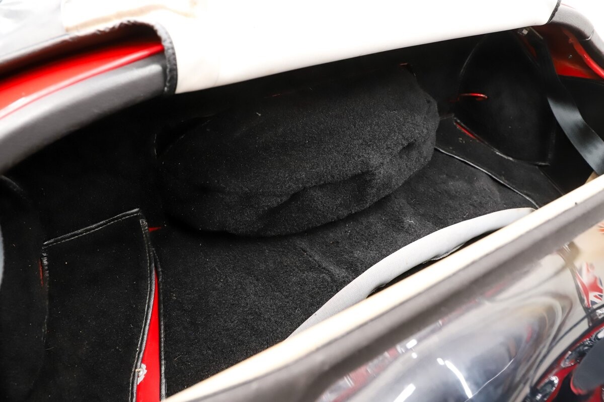 EXTERIOR: Just a sharp looking roadster. The body fit and finish is fantastic, and the bright red paint pops and is accented nicely with chrome trim and accessories. The front features sparkly fender fitted mirrors, stainless rings around the headlamps, a mirrored finish MG front grill, and chrome bumper with badge bar. The steel wheels are equipped with trim rings and fit perfectly to the car. For the chance you get caught in cold or rainy weather, this spunky little roadster comes with a tonneau cover, side windows, and soft top to fully enclose the cabin off.