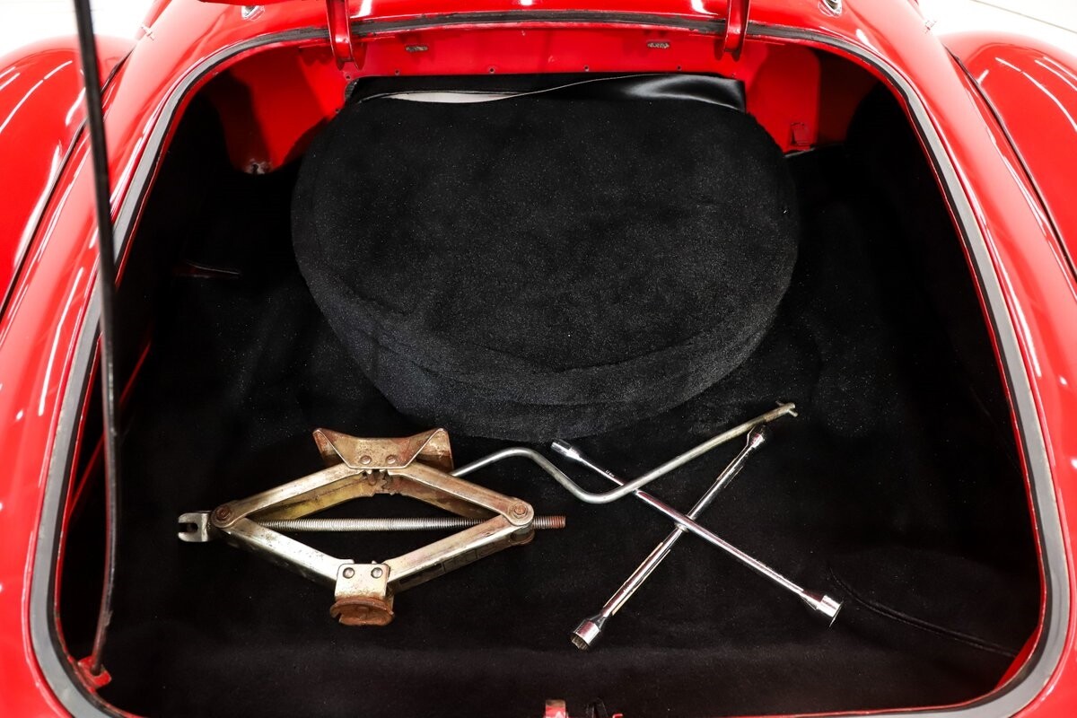 TRUNK COMPARTMENT: Under the trunk lid is painted nicely, as well as the jamb. The weather stripping has been replaced also. Overall nice and complete fully carpeted trunk with spare tire and original jack!