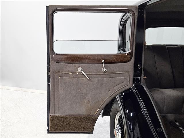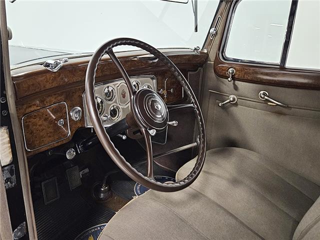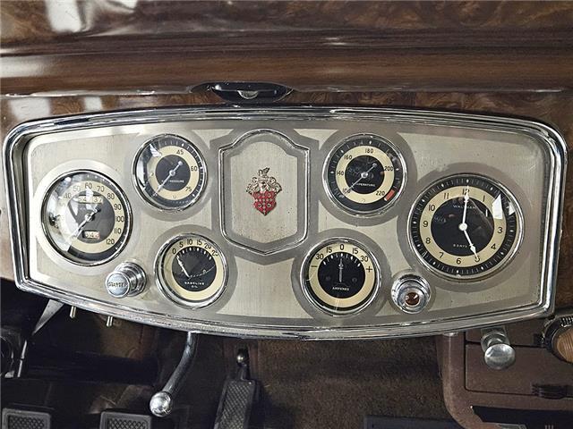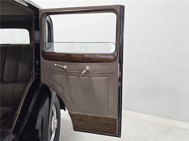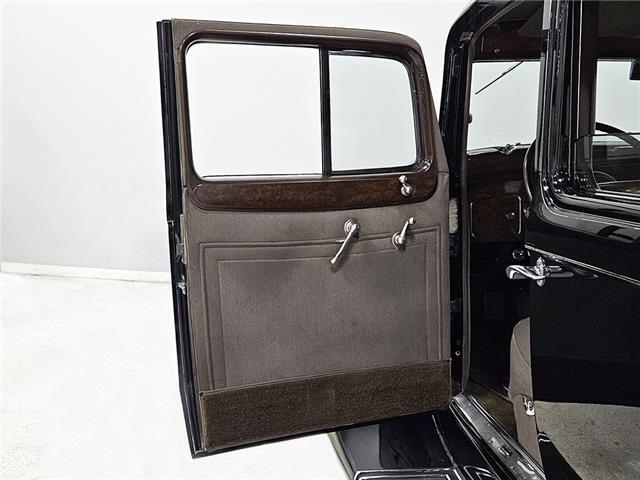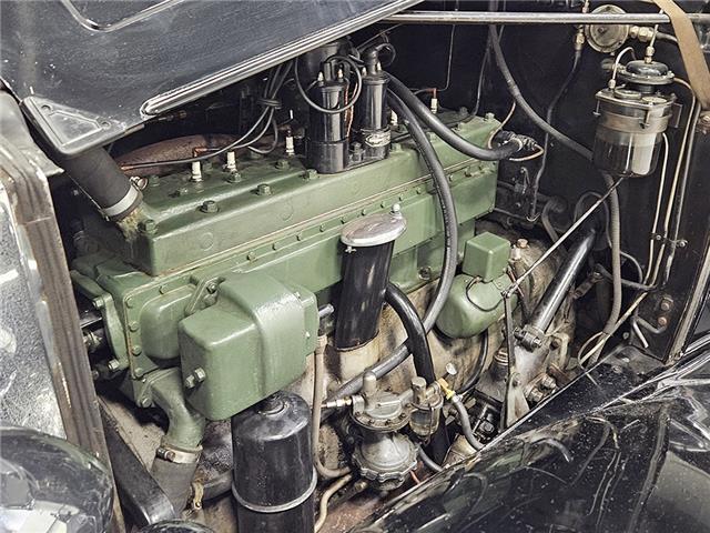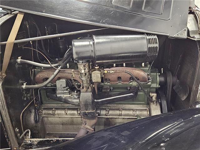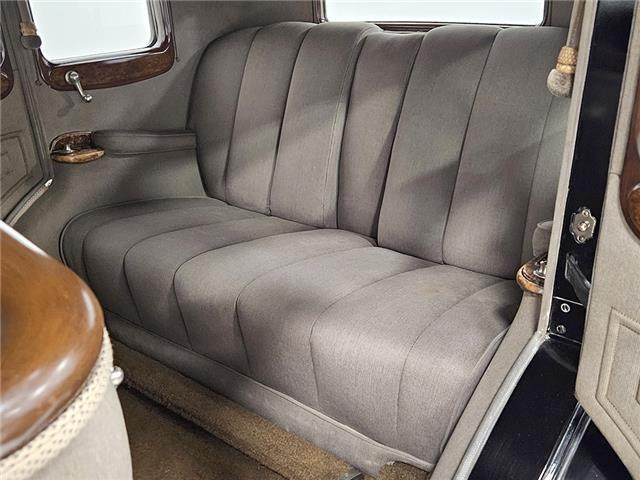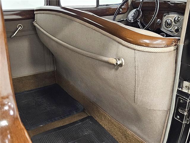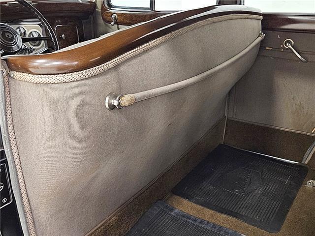 Inside you’ll find the original tan Bedford cord interior that’s simply beautiful. Like the exterior, there are a few minor signs of use and one panel of the front seat has been replaced, but again, it would be a major mistake to try to erase the imperfections that this car earned over nearly a century of living. Even the carpets appear to be original issue. The woodgrained window moldings and dash are extremely nice and the cream-faced gauges are some of the most beautiful of the era and they all work properly. Heavy-duty rubber floor mats protect those original carpets, but the rest appears to be vintage 1934. The big steering wheel makes even this rather large sedan easy to handle, and offers headlight and throttle controls on the hub. There’s also an accessory under-dash heater whose installation is outlined in the original dealer paperwork. The back seat looks virtually untouched and showcases the little luxury touches for which Packard was justifiably famous—check out the assist straps, the individual ash trays with lighters, and the hidden window shades. Lovely! Even the headliner is in remarkable condition with no stains or tears. This is why survivors are so special.