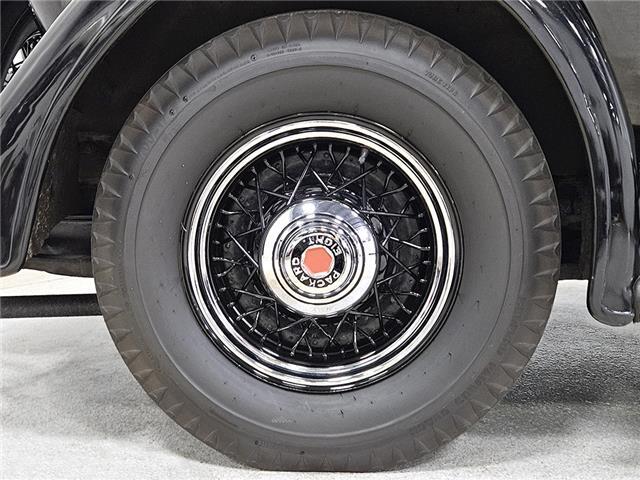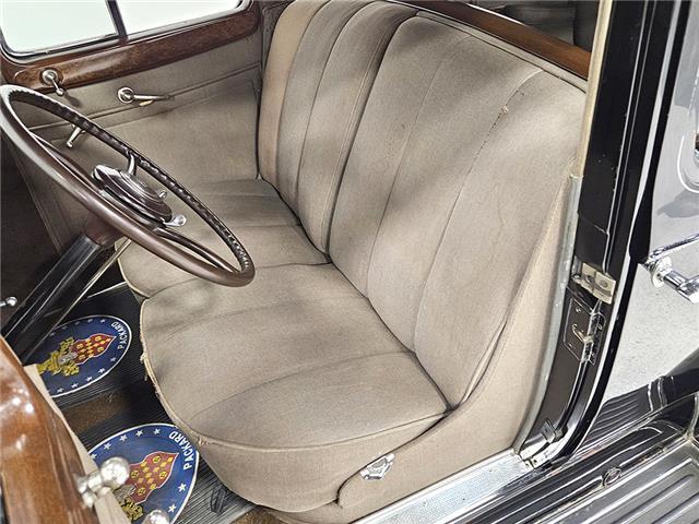 Packard’s famous 320 cubic inch straight-8 features nine main bearings for impeccable smoothness and durability and was rated at 120 horsepower in 1934. But it’s the creamy-smooth torque that makes this car so delightful to drive, as it just pulls from almost any speed in high gear without any drama. The engine has been recently serviced and detailed, so it runs great and looks correct from the massive oil bath air cleaner to the aluminum crankcase. At some point it was fitted with a Carl King high compression head for a bit more power, and it does run and drive like a Packard should. A few pumps of the throttle, hit the starter button the dash, and the big straight-8 purrs to life without any drama. It settles into a smooth idle and makes great 8-cylinder sounds from the exhaust. It has been properly maintained, so it stays cool, has plenty of oil pressure, and generally goes about its business without a fuss. The 3-speed manual transmission offers silky clutch action and smooth shifts thanks to synchromesh on 2nd and 3rd gears, and with 4.69 gears out back, it’s comfortable cruising at 50-55 MPH. This car has never been apart, so the undercarriage is a bit greasy, but there is exactly zero rot or rust and the robust frame looks strong enough to support a railroad bridge. Original spring gaiters ensure the smooth Packard ride and the brakes, while still mechanical in 1934, are remarkably powerful and confidence-inspiring. The gas tank has been recently cleaned and there’s an auxiliary electric fuel pump for easy starts and assistance during hot weather. Finally, it sits on a fresh set of 7.00-17 Bedford blackwall tires that are the perfect touch on this subtle, imposing Packard. It is 100% ready to tour.