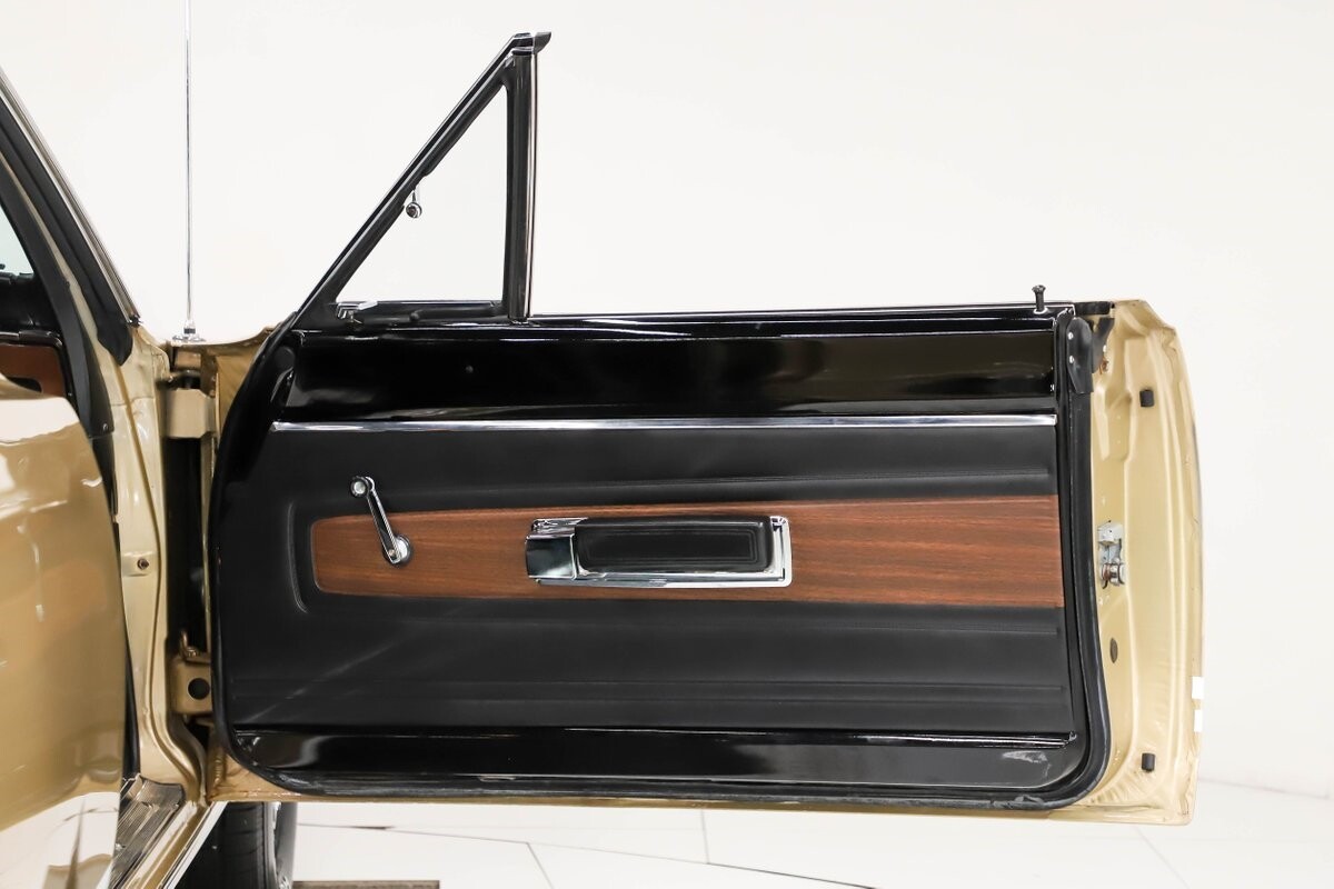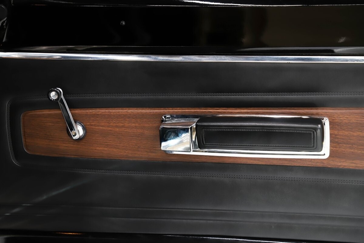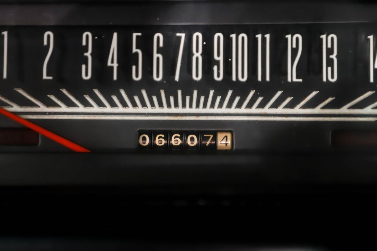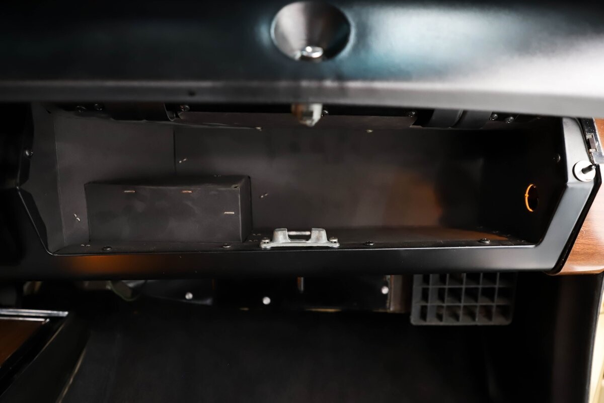 INTERIOR: Overall very nice. Door panels, armrests have been replaced. The metal trim is smooth gloss black. Dash area is very nice, nut cut up or broken. Very nice center console with working lights. The seats have excellent cushions and upholstery. Headliner and visors are excellent, dome light works. Complete set of original seatbelts.