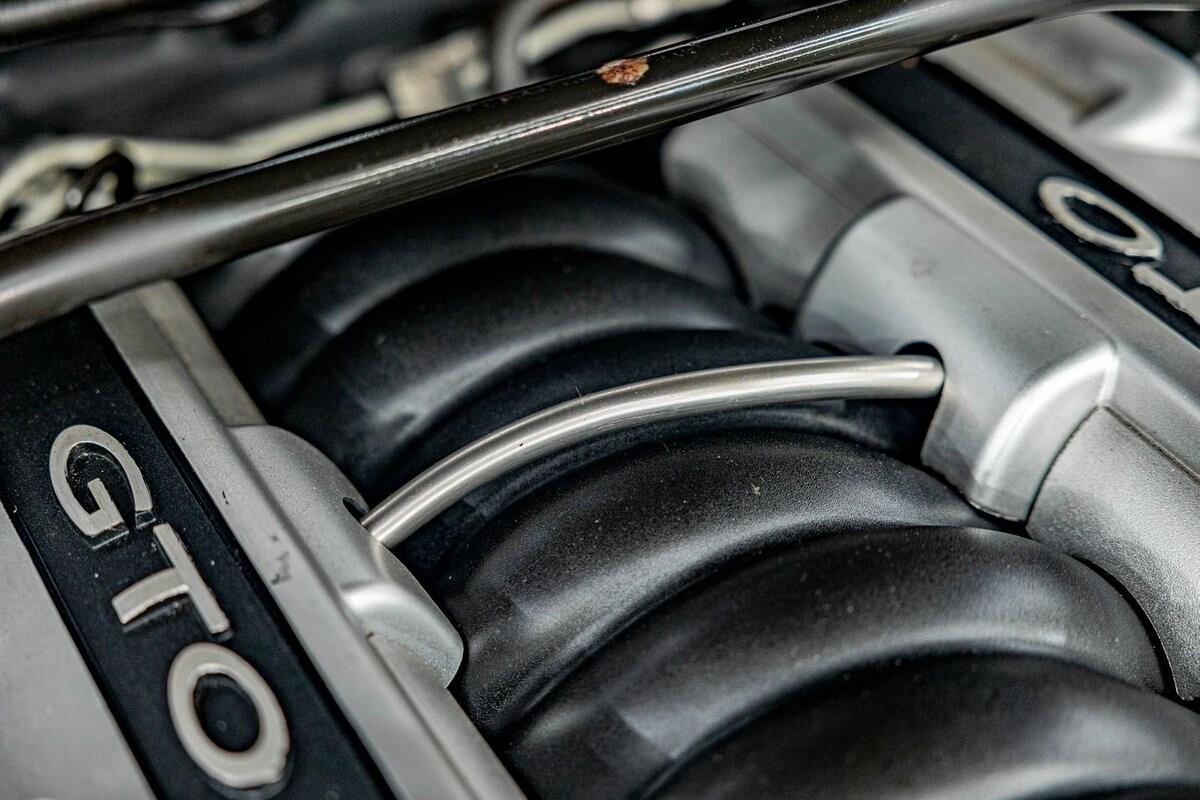 ENGINE COMPARTMENT: When you pop the hood, you'll find a very powerful LS2 6.0 V8. Its mated to a 6spd manual transmission. Everything is stock with the exception of an aftermarket K&N Cold Air Intake. The engine bay is extremely clean like it just left the showroom!