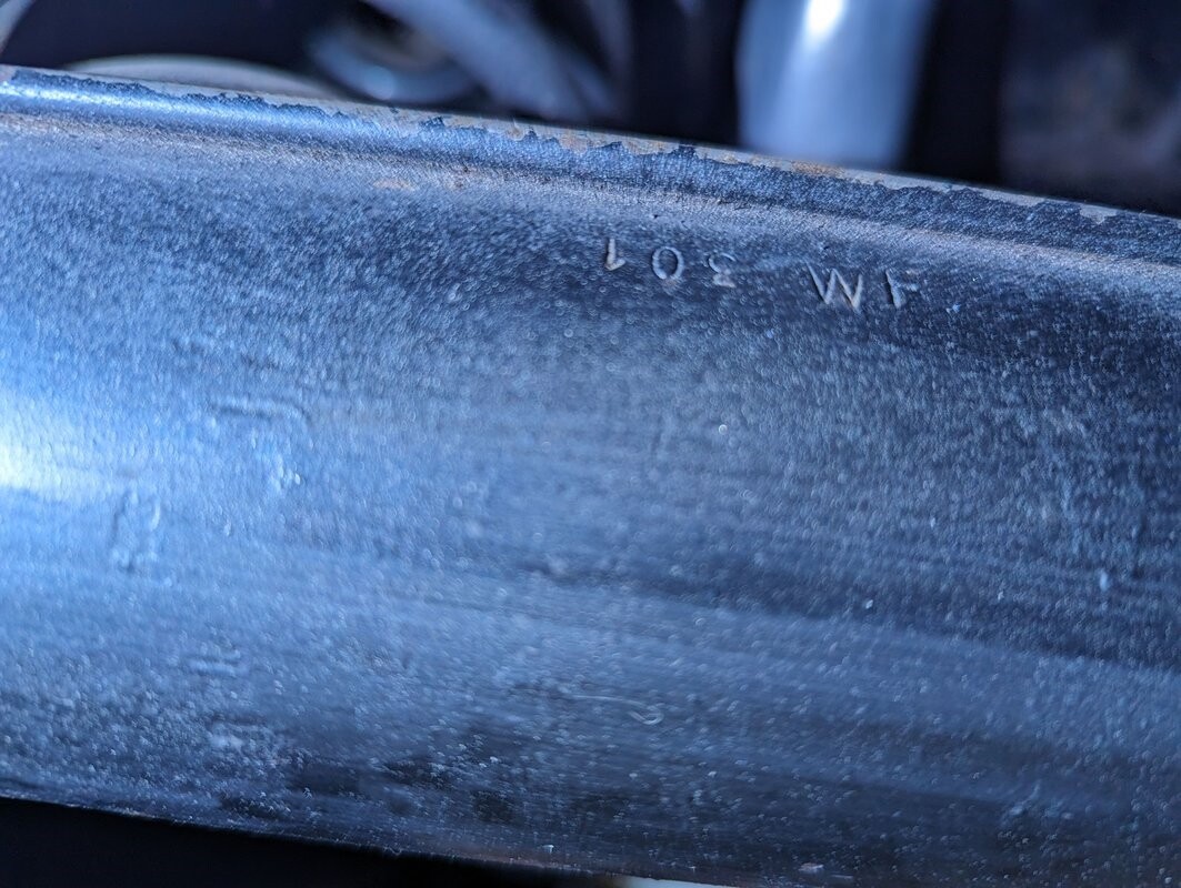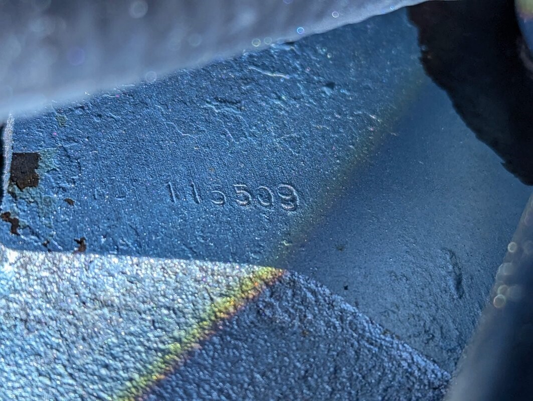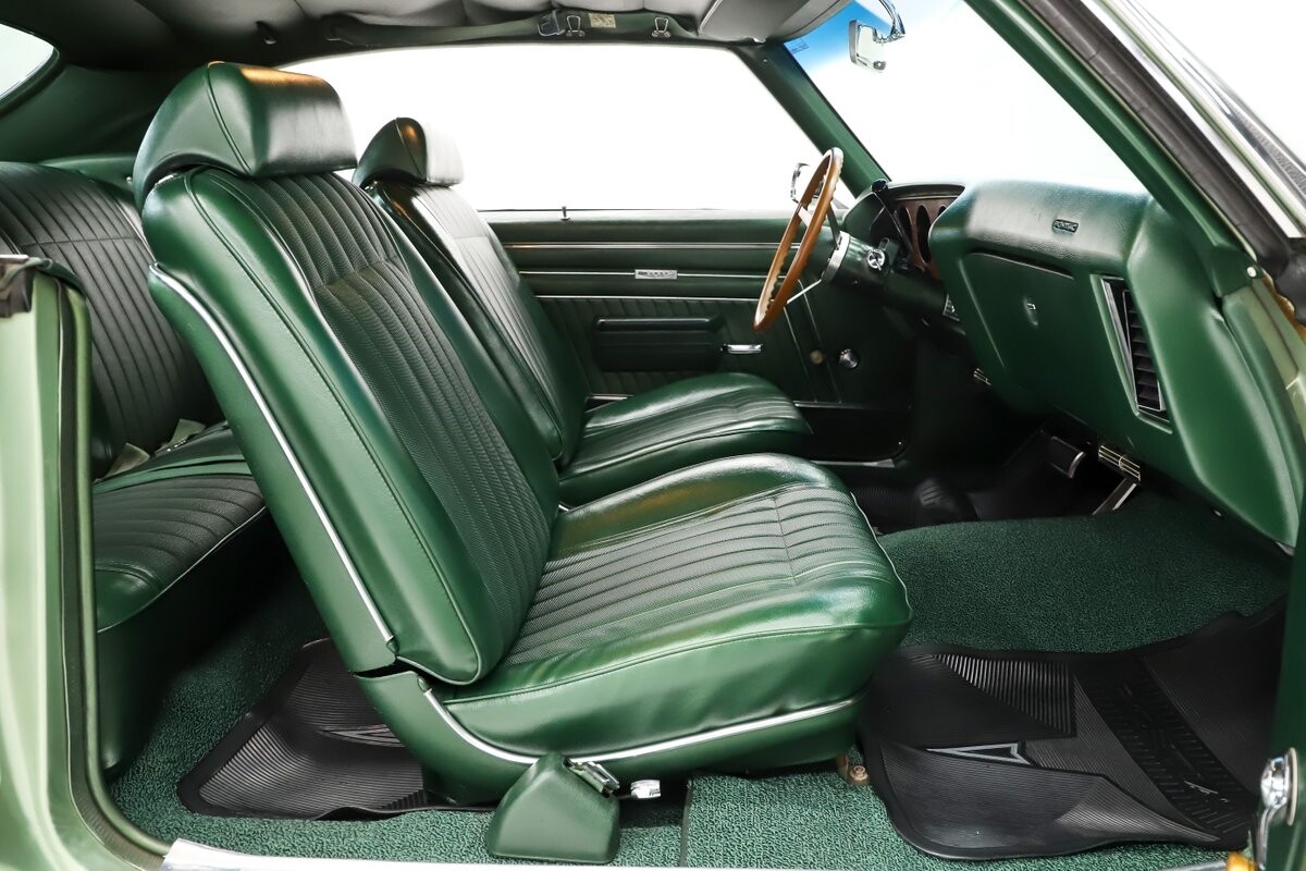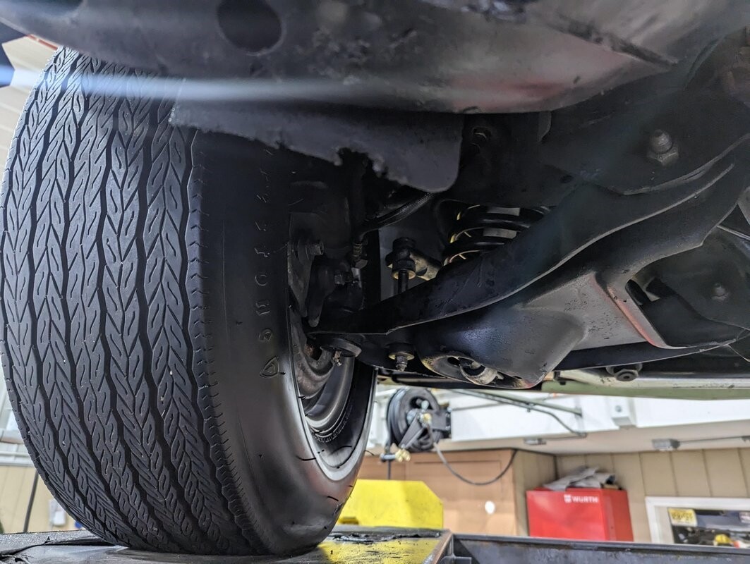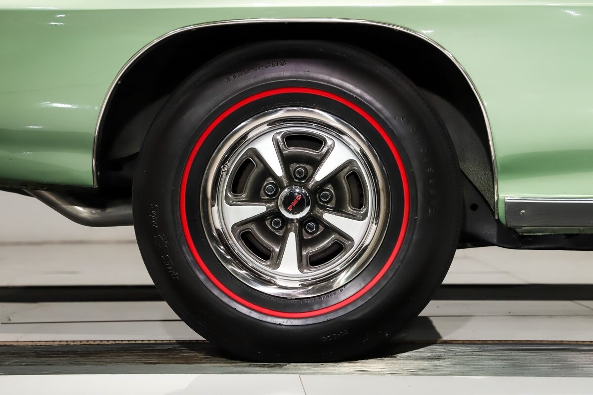 TRUNK COMPARTMENT: 100% original metal; no cuts or splices. Under the trunk lid and the jamb still have the original green paint and the original jacking instructions decal is still in place! The trunk mat and tire cover were replaced. It does have complete jack and spare assembly.