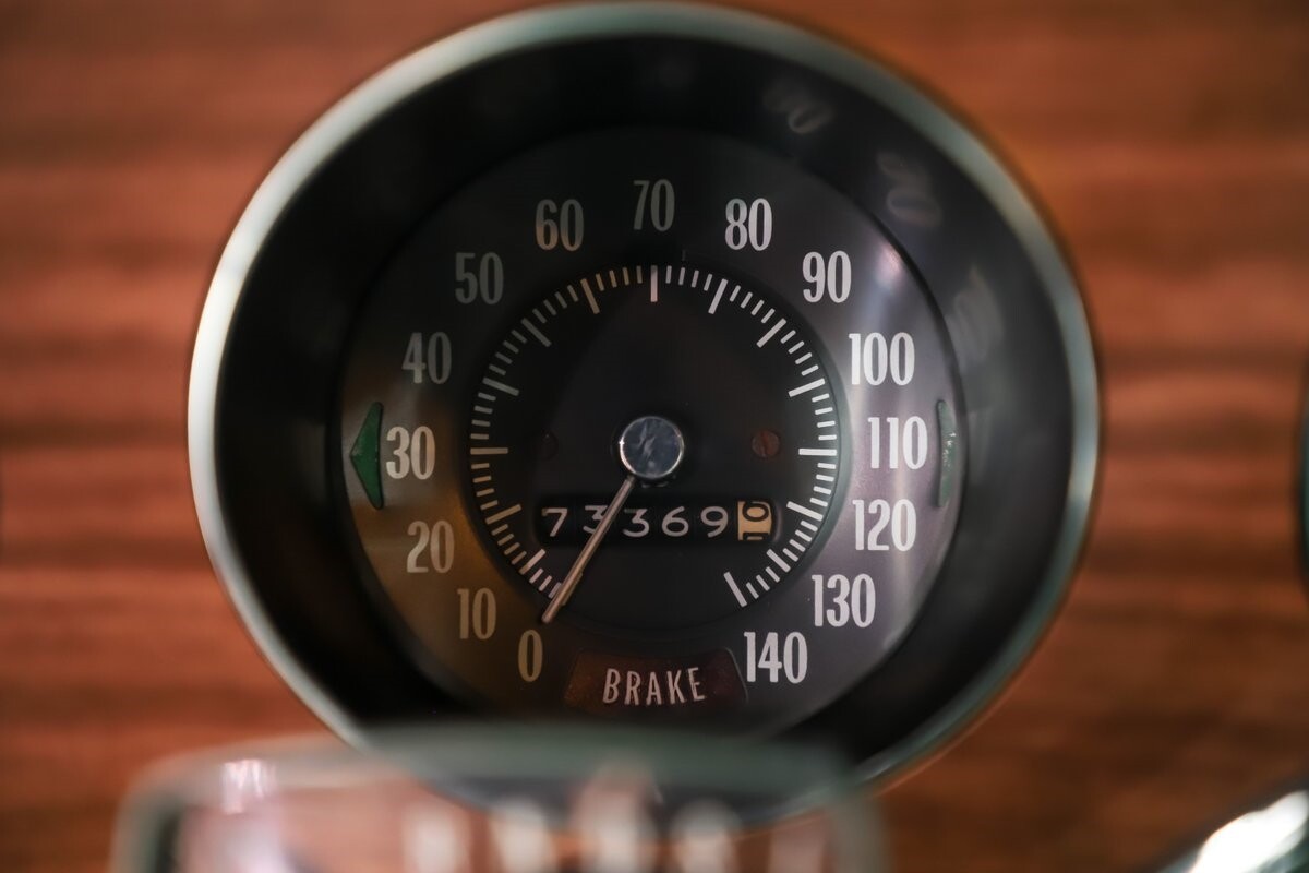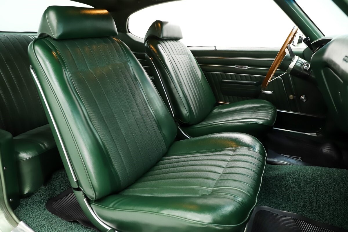 EXTERIOR: California built car with all its original sheet metal including the fenders, quarters, hood, trunk, doors, roof, floors, rockers etc. The car is arrow straight, all the panels fit square and flush. No rust or damage. It's only been repainted one time, back in 1986. Beautiful original Palisade Green color. They used the correct ditzler acrylic lacquer. It looks like it was just done a few weeks ago! It's very smooth and glossy. Even the front rubber bumper is still in excellent shape. There are a few minor imperfections I point out in the video. All four correct T3 headlamps. Original windshield. The vinyl top was replaced. Stainless trim is straight and shiny, rear bumper was rechromed. It's sitting on a set of restored Rally ll wheels and reproduction redline tires.