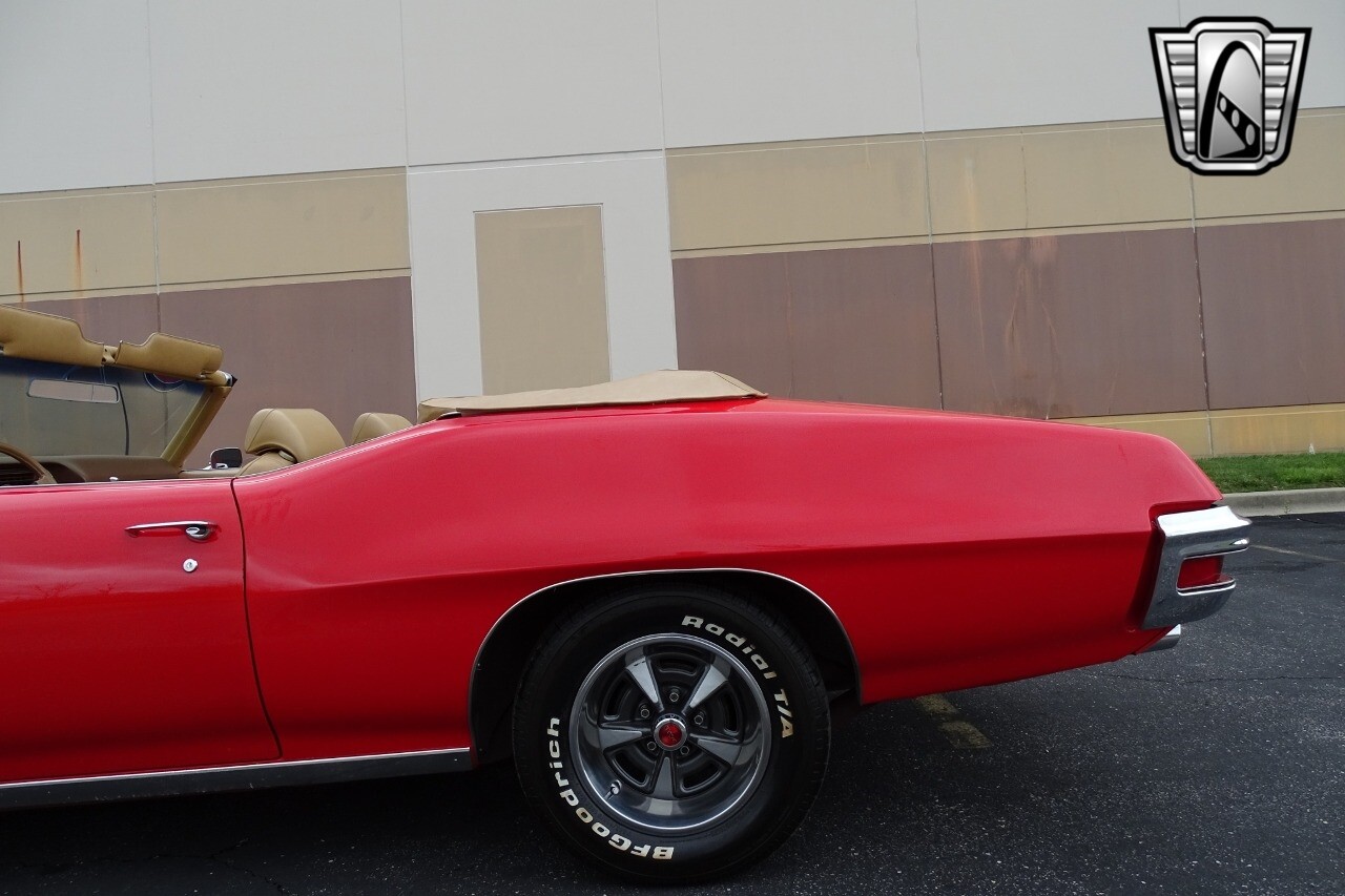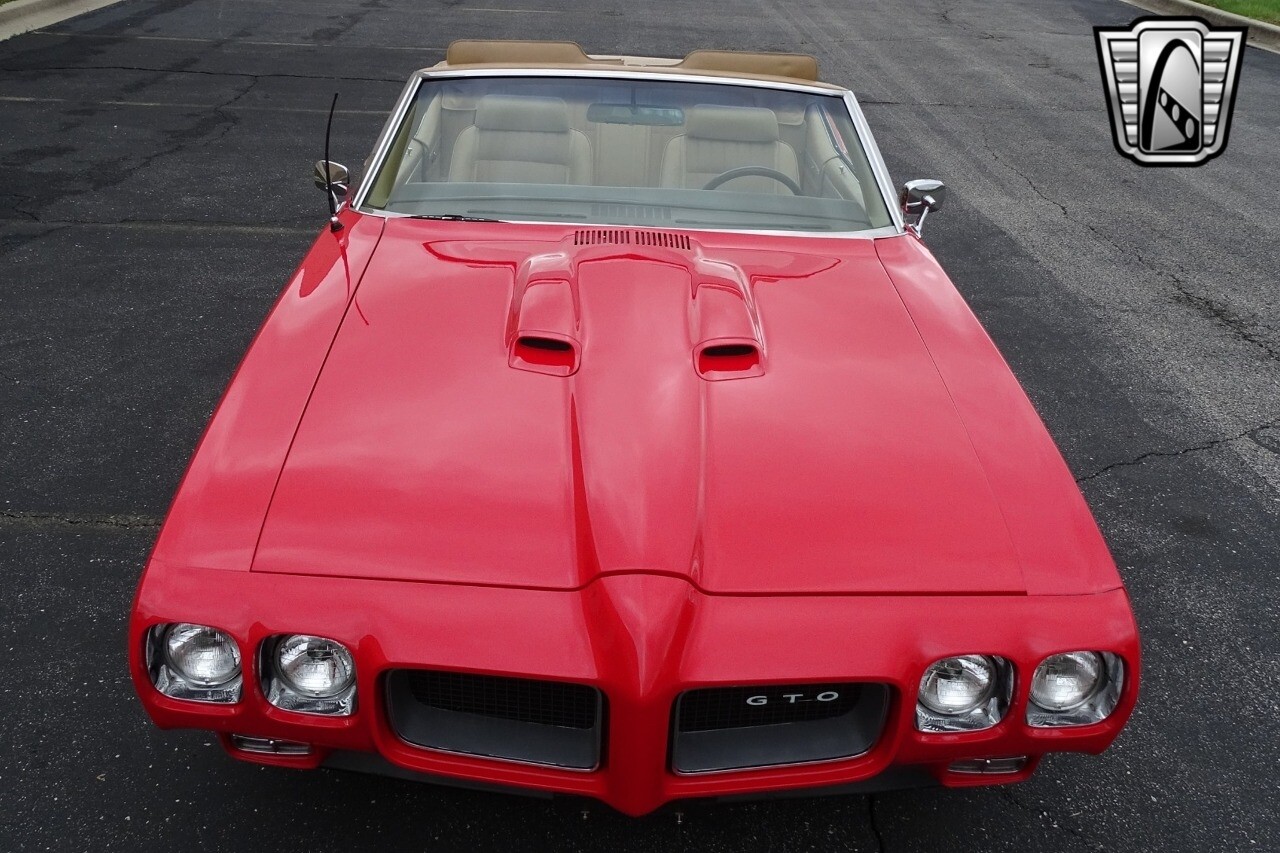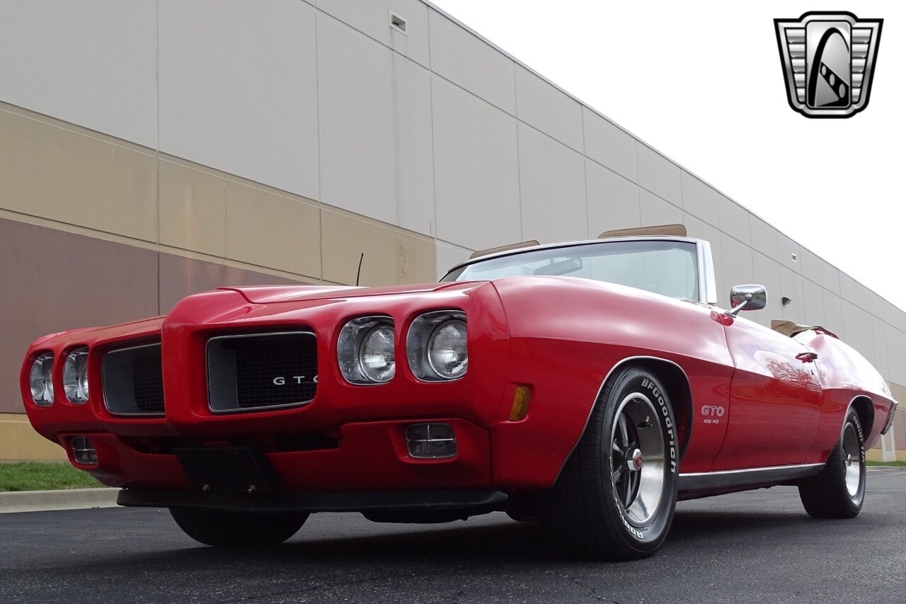 This iconic vehicle is a true testament to the era of power and style, featuring a striking red exterior that complements its tan vinyl interior. Under the hood, you'll find a robust 400 V8 engine paired with an automatic transmission, offering a smooth and powerful driving experience that Pontiac is renowned for. This GTO is not just about power, it's also about comfort and convenience. The car comes equipped with air conditioning, ensuring a comfortable ride no matter the weather. For your entertainment needs, the car features an AM/FM radio and a CD player, allowing you to enjoy your favorite tunes as you cruise down the road. One of the standout features of this GTO is its automatic convertible top. With just the push of a button, you can transform your ride and enjoy the open air, making it for those sunny day drives. Safety and control are also well taken care of in this classic beast. The car comes with power brakes and power steering, providing you with the confidence and control you need when behind the wheel. This 1970 Pontiac GTO is a blend of classic style, power, and modern convenience. It's a true representation of the golden age of American muscle cars. [ omitted ]. [ omitted ]. The St Louis showroom is located at 1237 Central Park Drive, O'Fallon Illinois 62269..