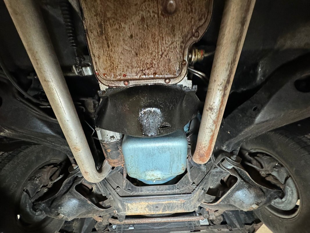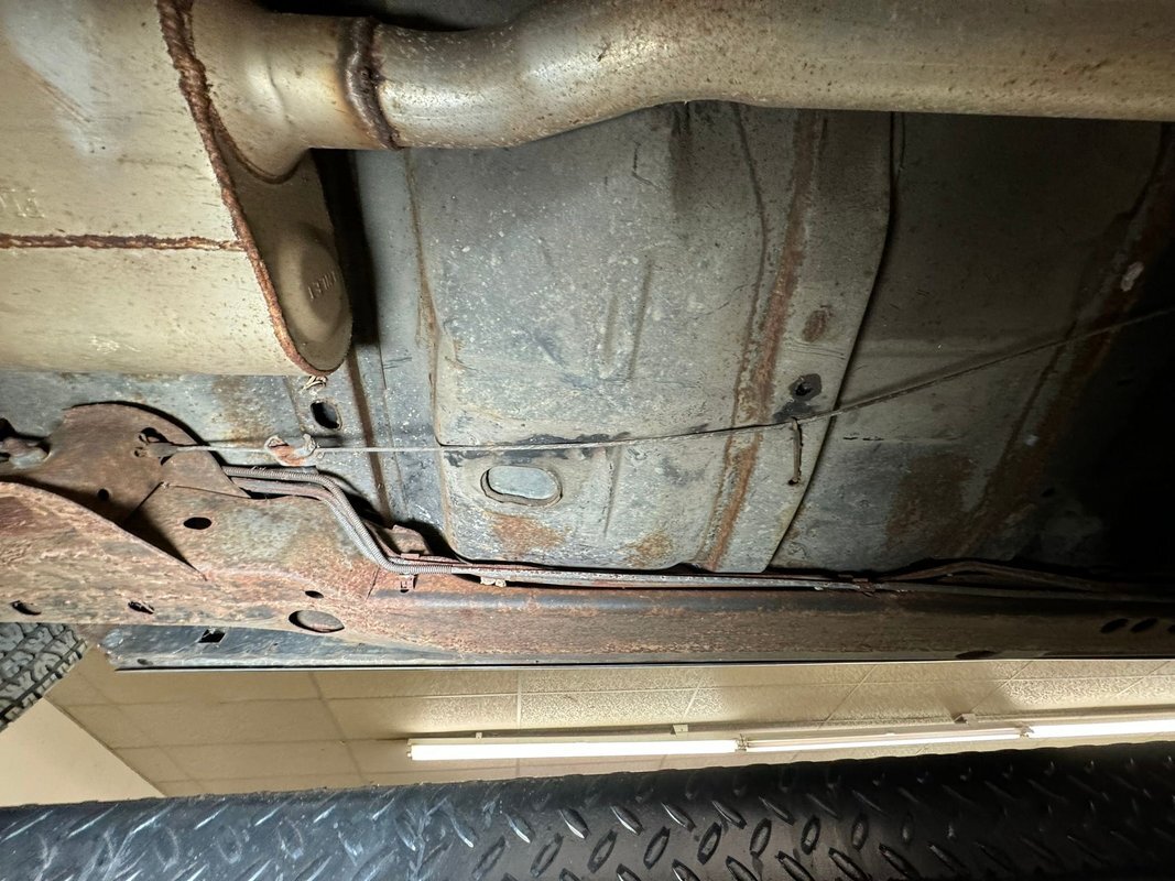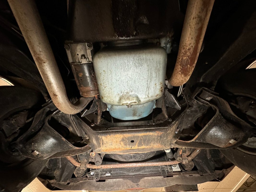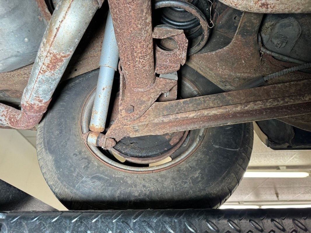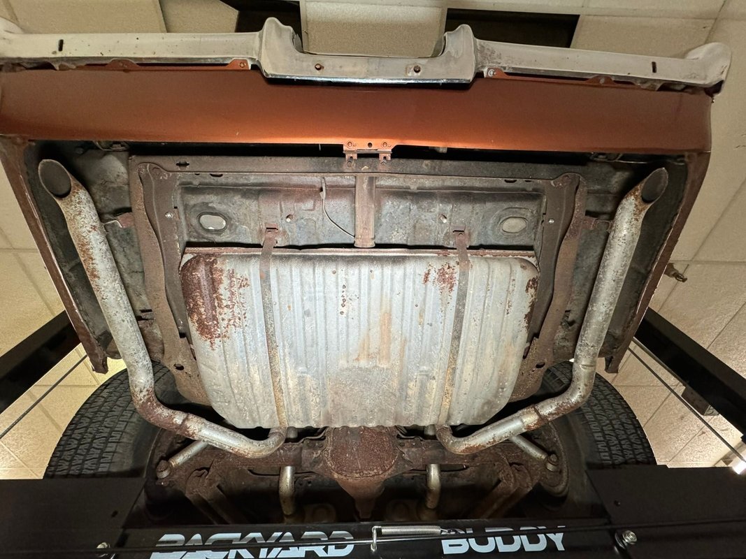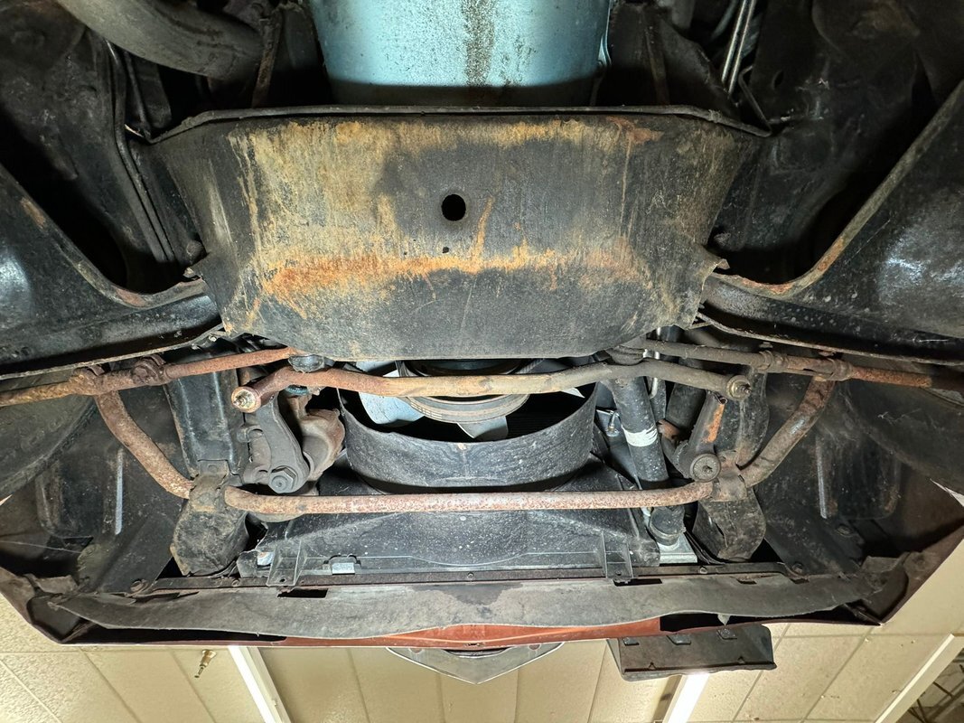 Suspension, frame, driveshaft, rear axle...all showing some advanced surface rust, (some pitting), but otherwise things are structurally sound. The gas tank looks good as do the exhaust and mufflers. Minor seepage is noted on the oil pan, not unexpected for a driver from 1970. Coils on the independent suspension up front and a four link with coils in rear with stock-style shock absorbers.