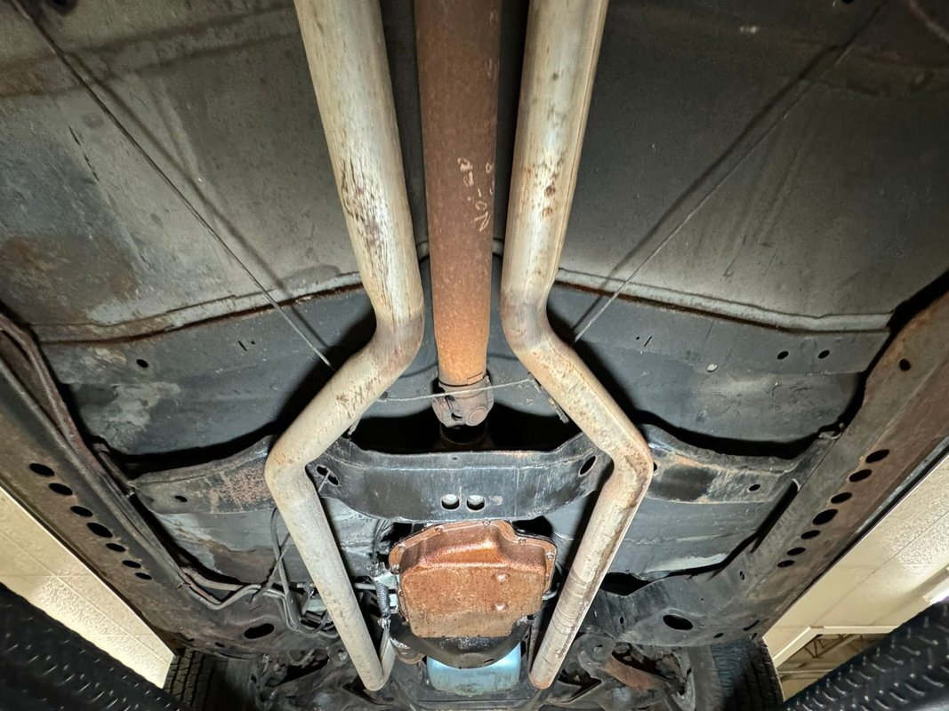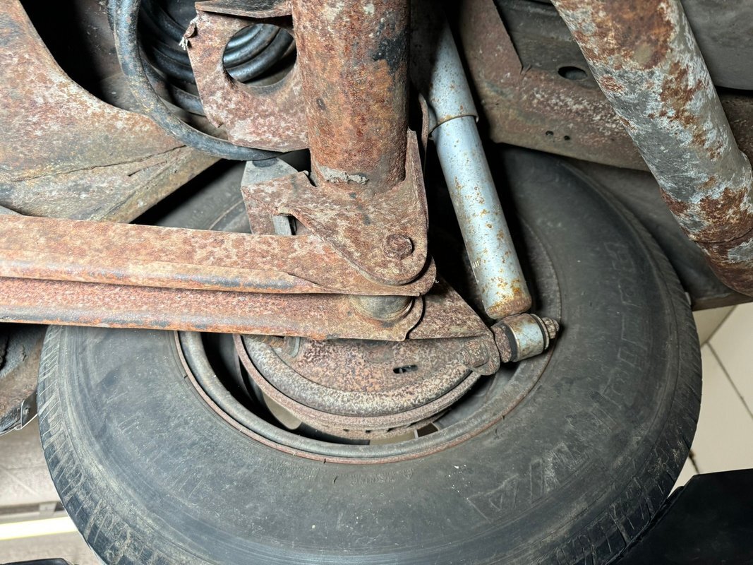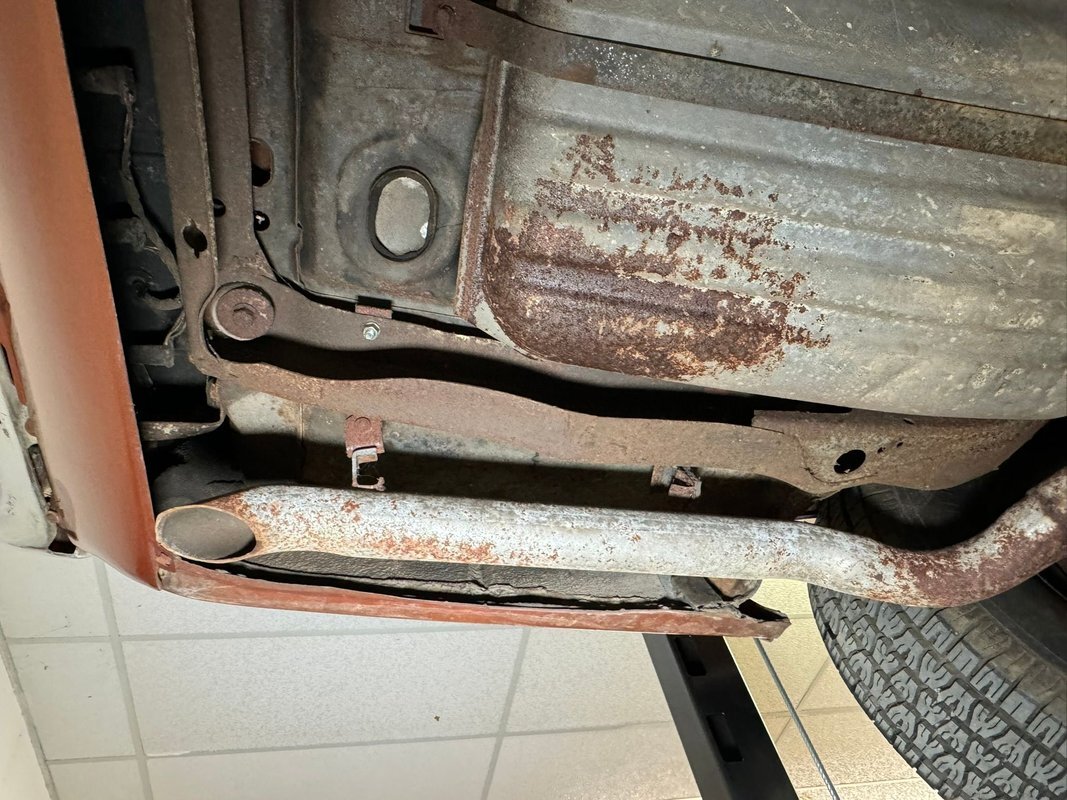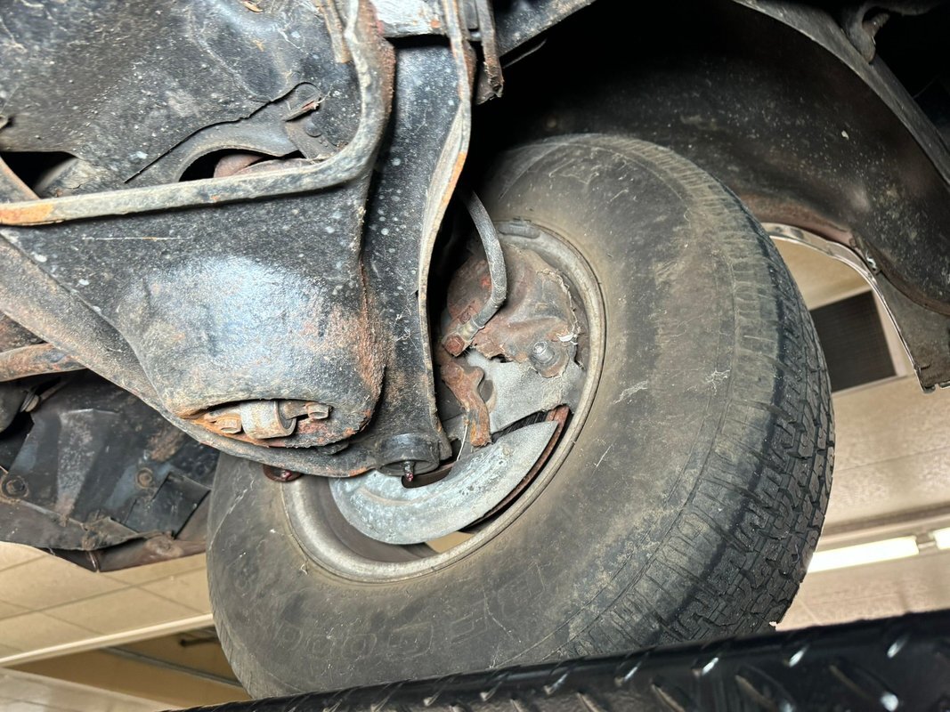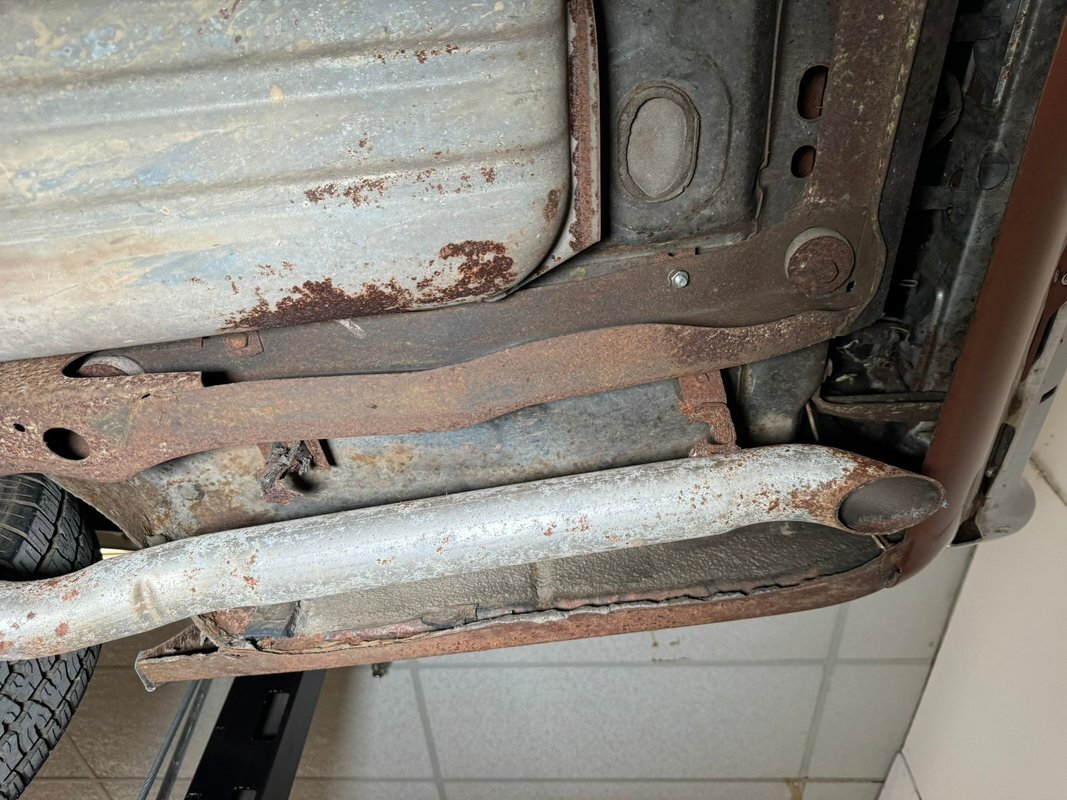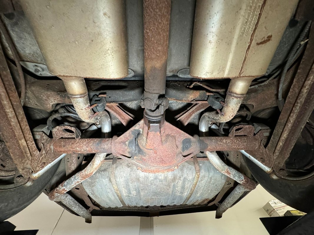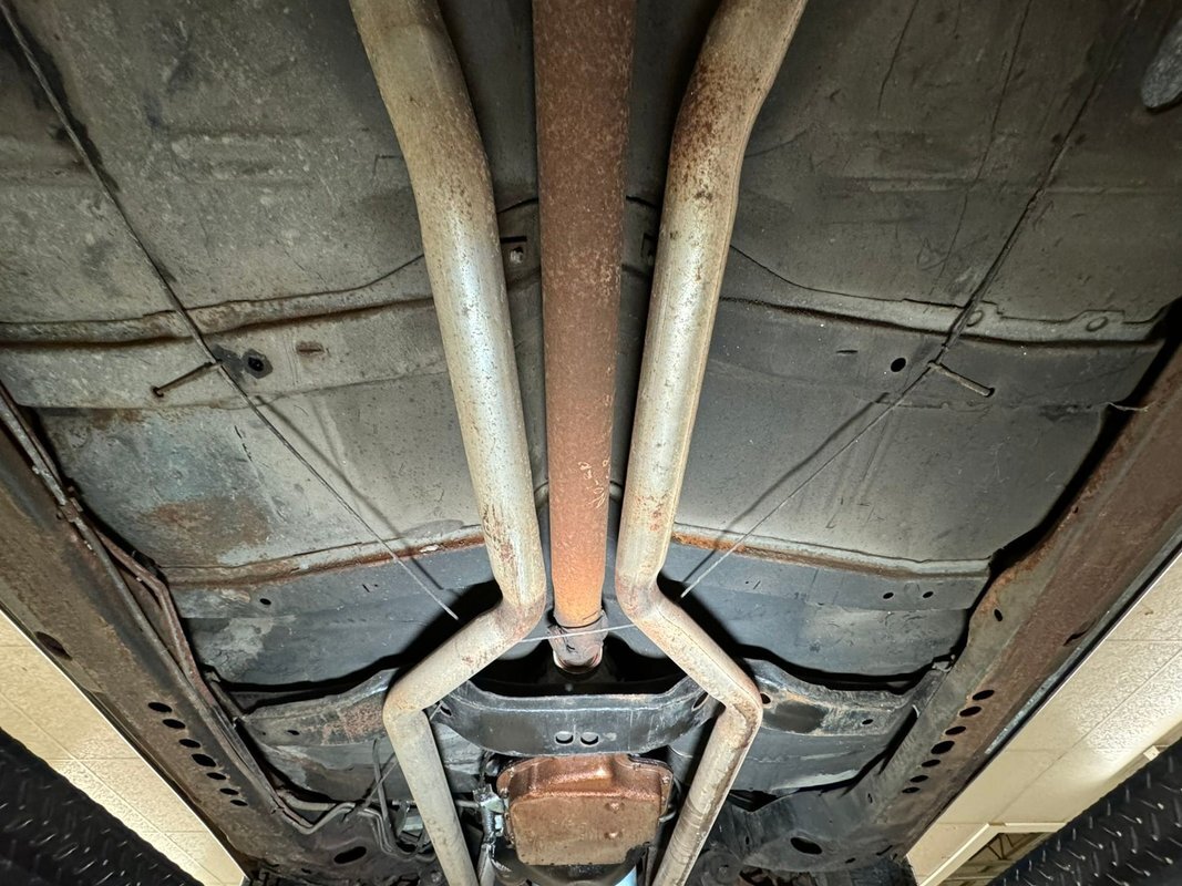 Suspension, frame, driveshaft, rear axle...all showing some advanced surface rust, (some pitting), but otherwise things are structurally sound. The gas tank looks good as do the exhaust and mufflers. Minor seepage is noted on the oil pan, not unexpected for a driver from 1970. Coils on the independent suspension up front and a four link with coils in rear with stock-style shock absorbers.
