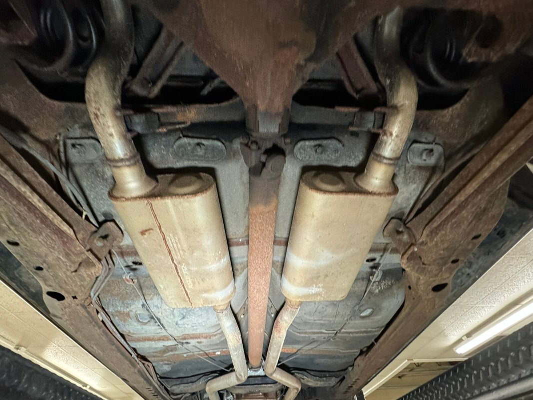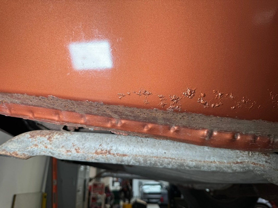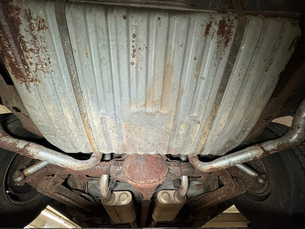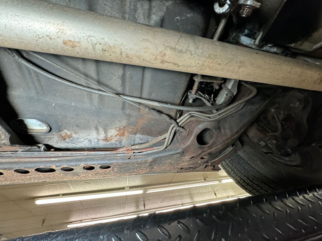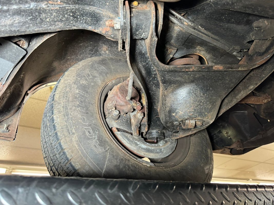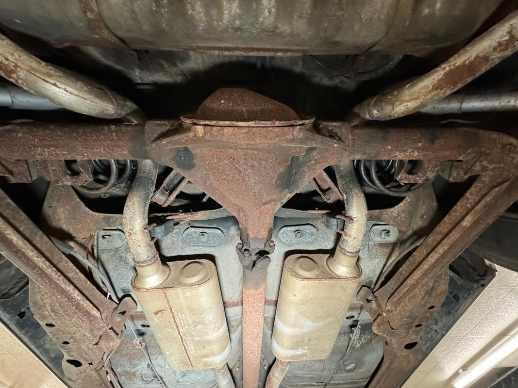 Suspension, frame, driveshaft, rear axle...all showing some advanced surface rust, (some pitting), but otherwise things are structurally sound. The gas tank looks good as do the exhaust and mufflers. Minor seepage is noted on the oil pan, not unexpected for a driver from 1970. Coils on the independent suspension up front and a four link with coils in rear with stock-style shock absorbers.
