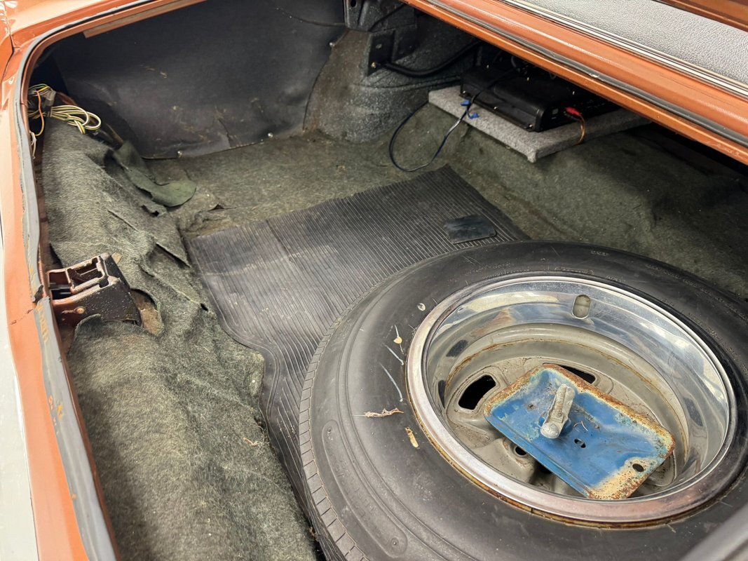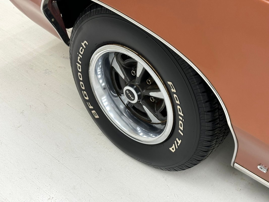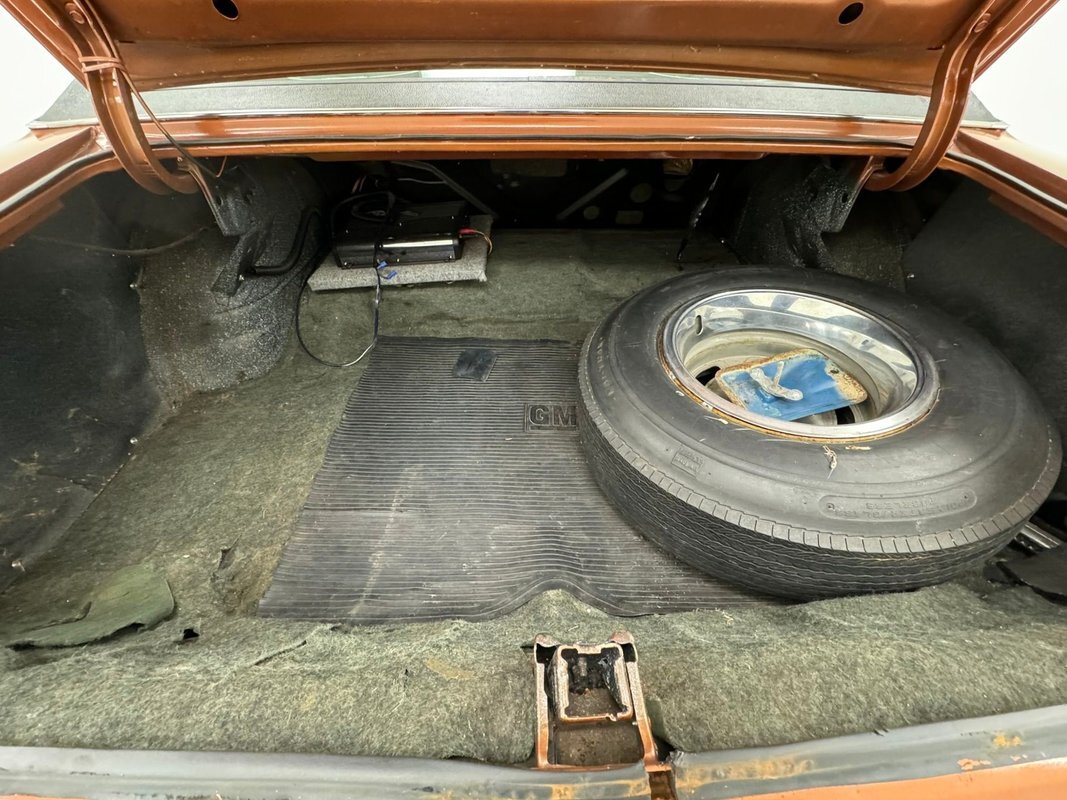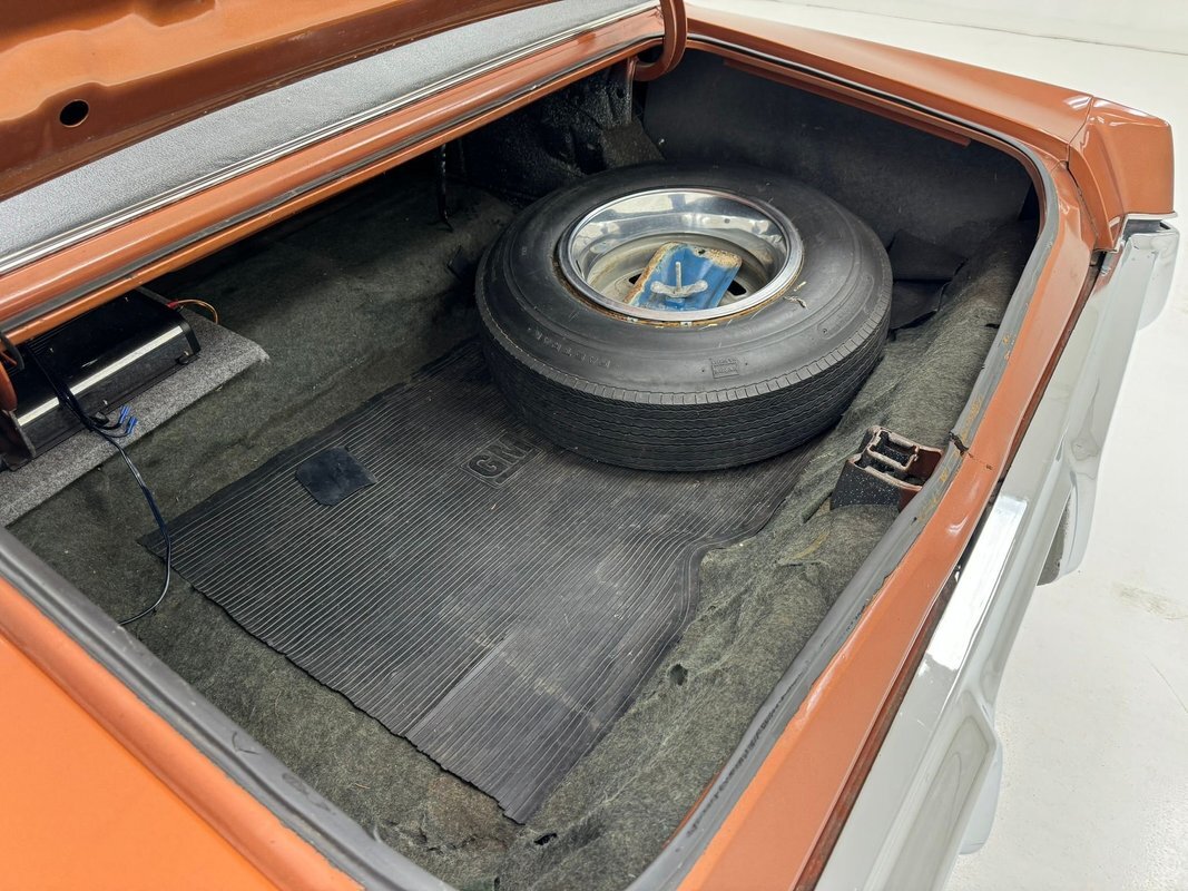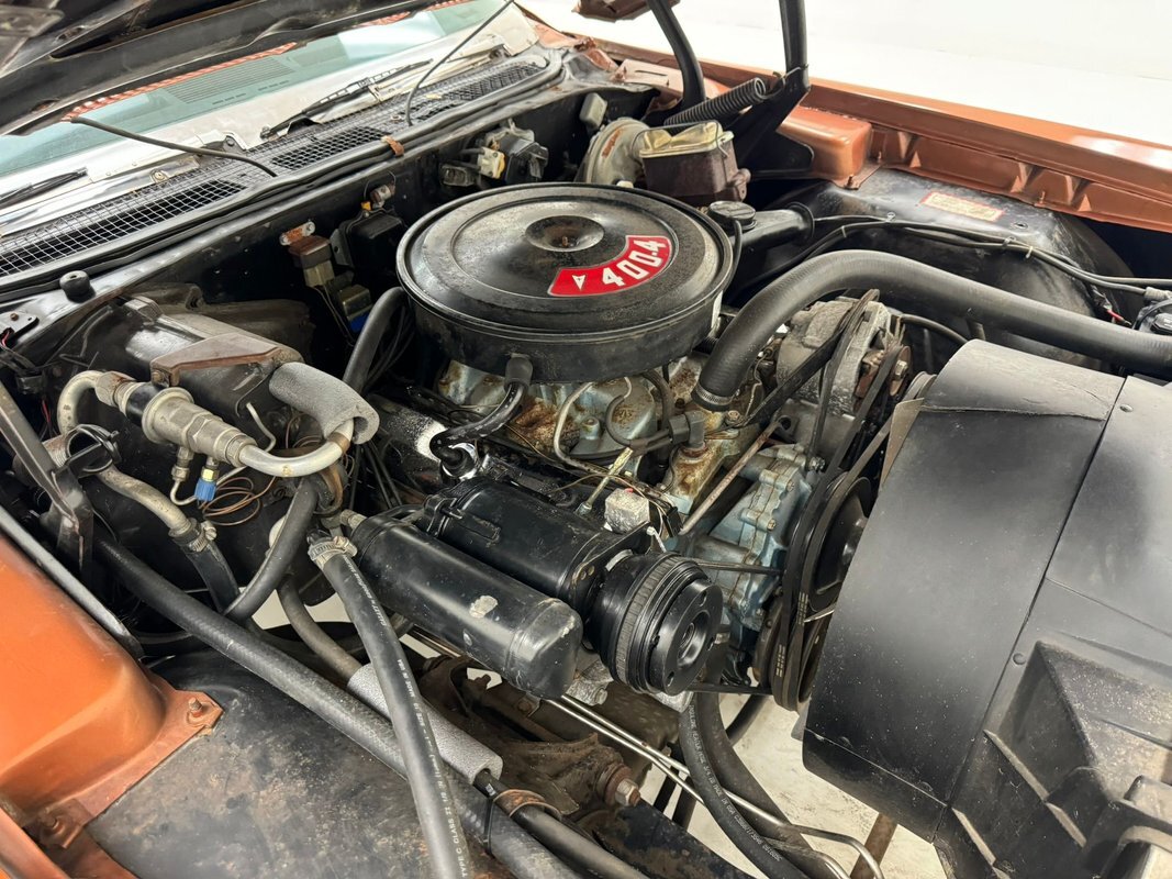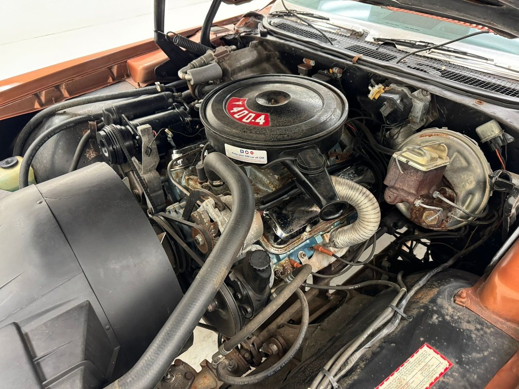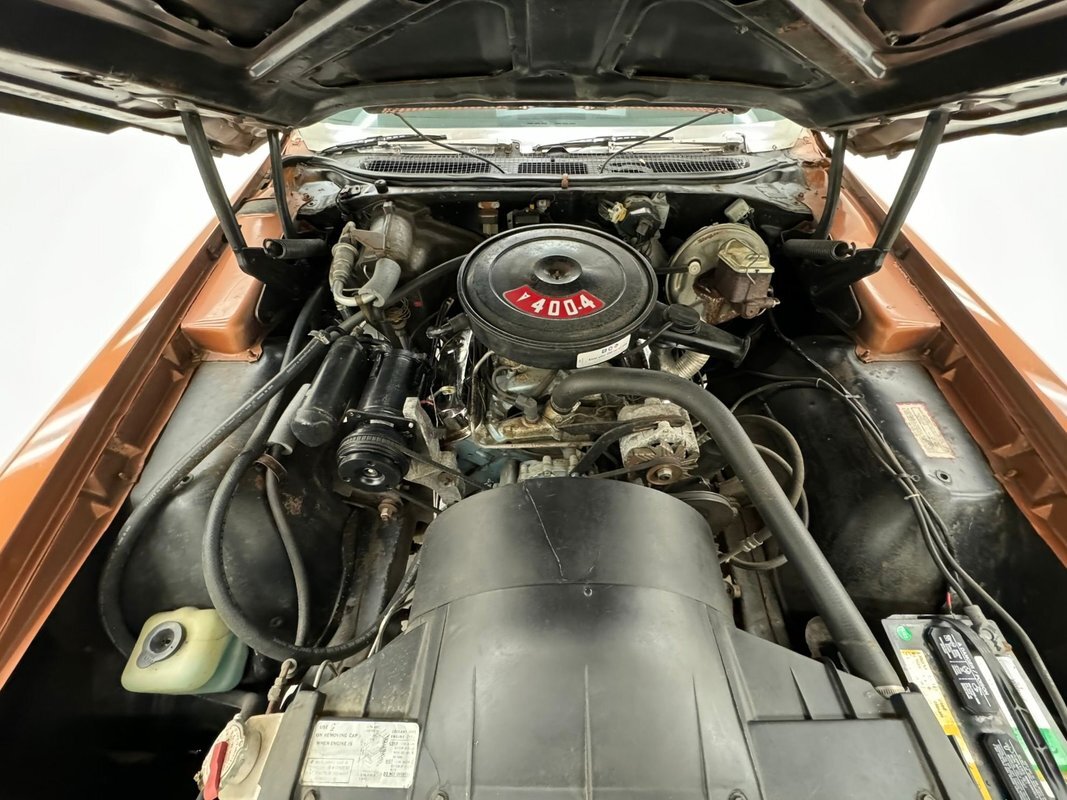 The rebuilt and numbers matching 400ci powerplant has never strayed far from home and is topped by a single 4-barrel carburetor. Power is sent to the rear wheels via the matching numbers transmission, (also rebuilt), that is a TH400 3-speed automatic and a 10 bolt rear axle puts the power to the pavement. An aluminum radiator replaces the original. Power brakes were standard with disc up front and drum out back. Exhaust is routed through a true dual exhaust quieted by Flowmaster mufflers.