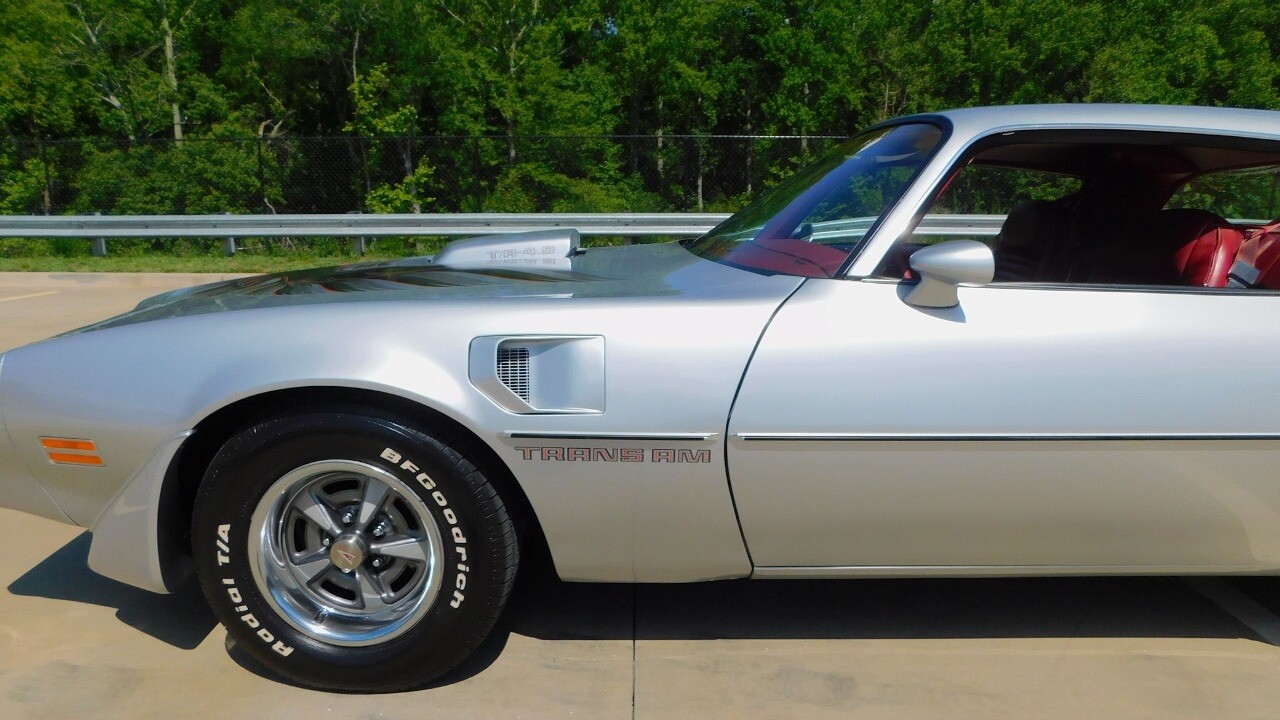 Gateway Classic Cars of Atlanta is proud to represent this 1979 Pontiac Firebird Trans Am, a icon of American muscle car history. This model, with its sleek Silver exterior and bold red vinyl interior, is a true representation of the late 70s automotive design. Under the hood lies a powerful 4.9L V8 engine paired with an automatic transmission, making this Trans Am a testament to the performance-oriented engineering of its era. This vehicle comes equipped with air conditioning, an AM/FM radio, seatbelts, and a vinyl interior, offering a blend of comfort and safety features. Experience the nostalgia and power of this 1979 Pontiac Firebird Trans Am. [ omitted ]. [ omitted ].