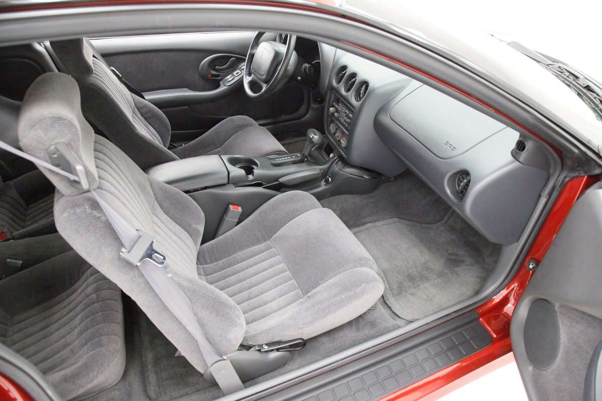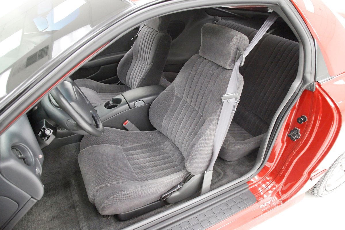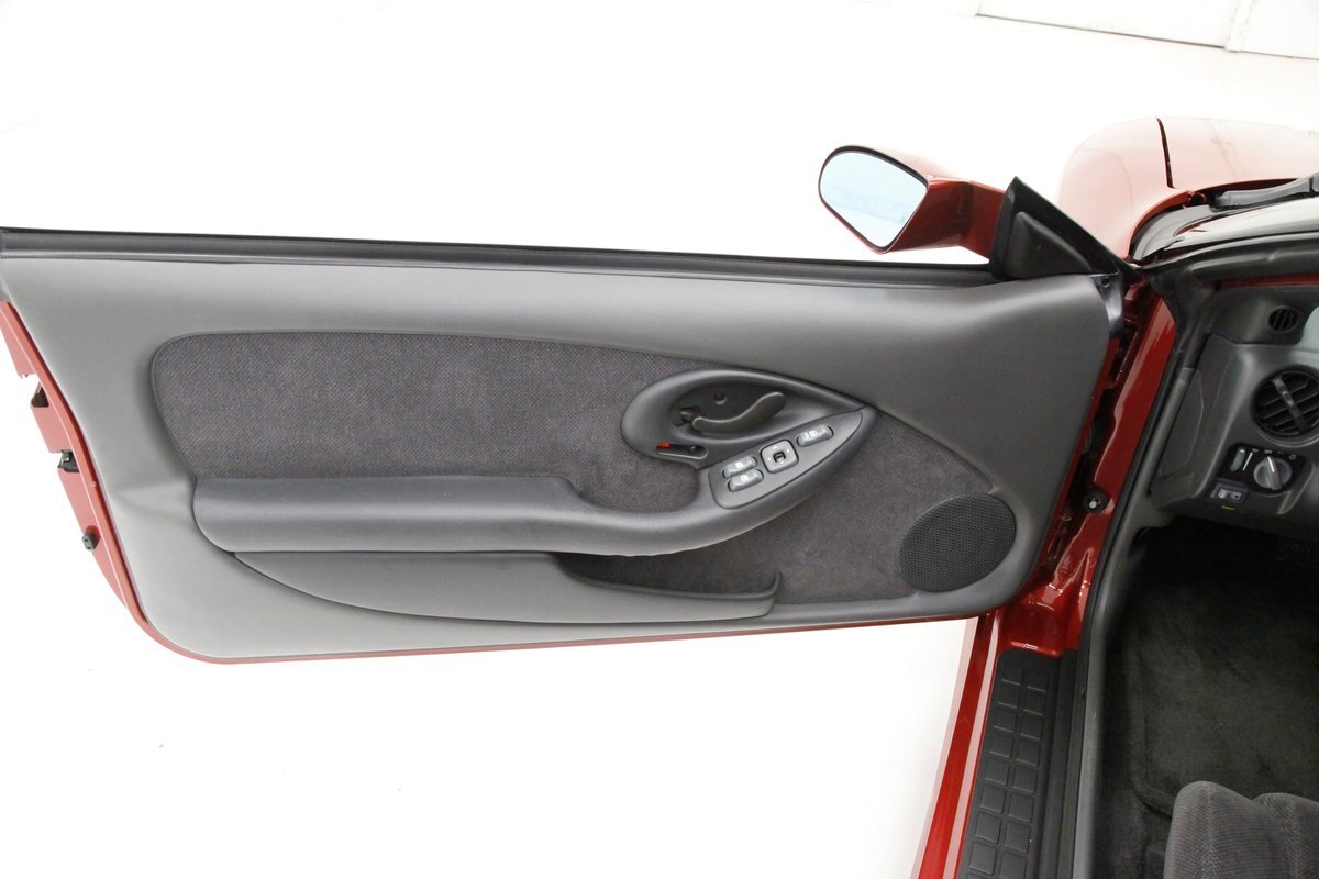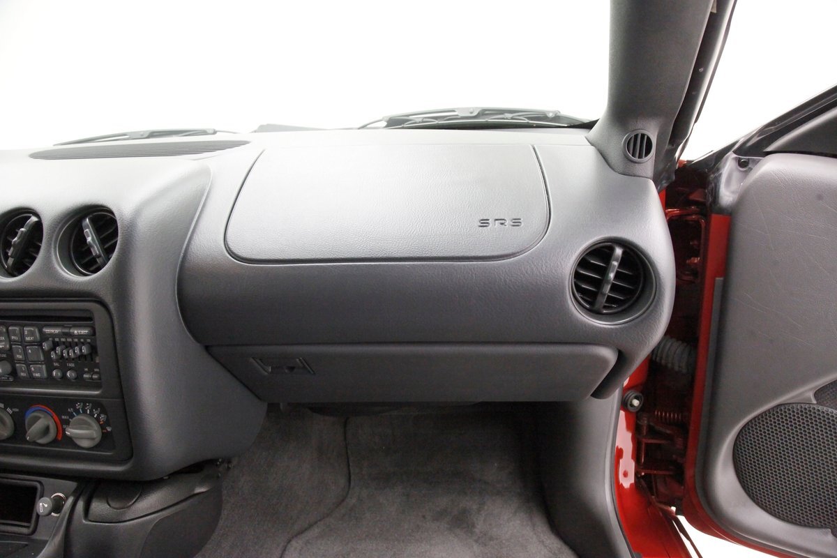 Cayenne Red Metallic base coat and clear coat adorn the straight panels of this car. Virtually no chrome and all composite bumpers and front and rear parts come together to form this aerodynamic Trans Am version. The lines of this car blend seamlessly to form the final shape, all smooth and aerodynamic, more orange than red. A few very minor faults on the trailing edge of the driver's door, but one must look hard to notice them. A fully fixed roof, somewhat of a rarity, leads back to the rear greenhouse glass that sweeps down the hatch to meet the pedestal mount spoiler that wraps its thin edges around the base of the glass. Highly polished chrome Centerline wheels in 17-inch format are wrapped by like new Falken GR8 radials on all 4 corners.