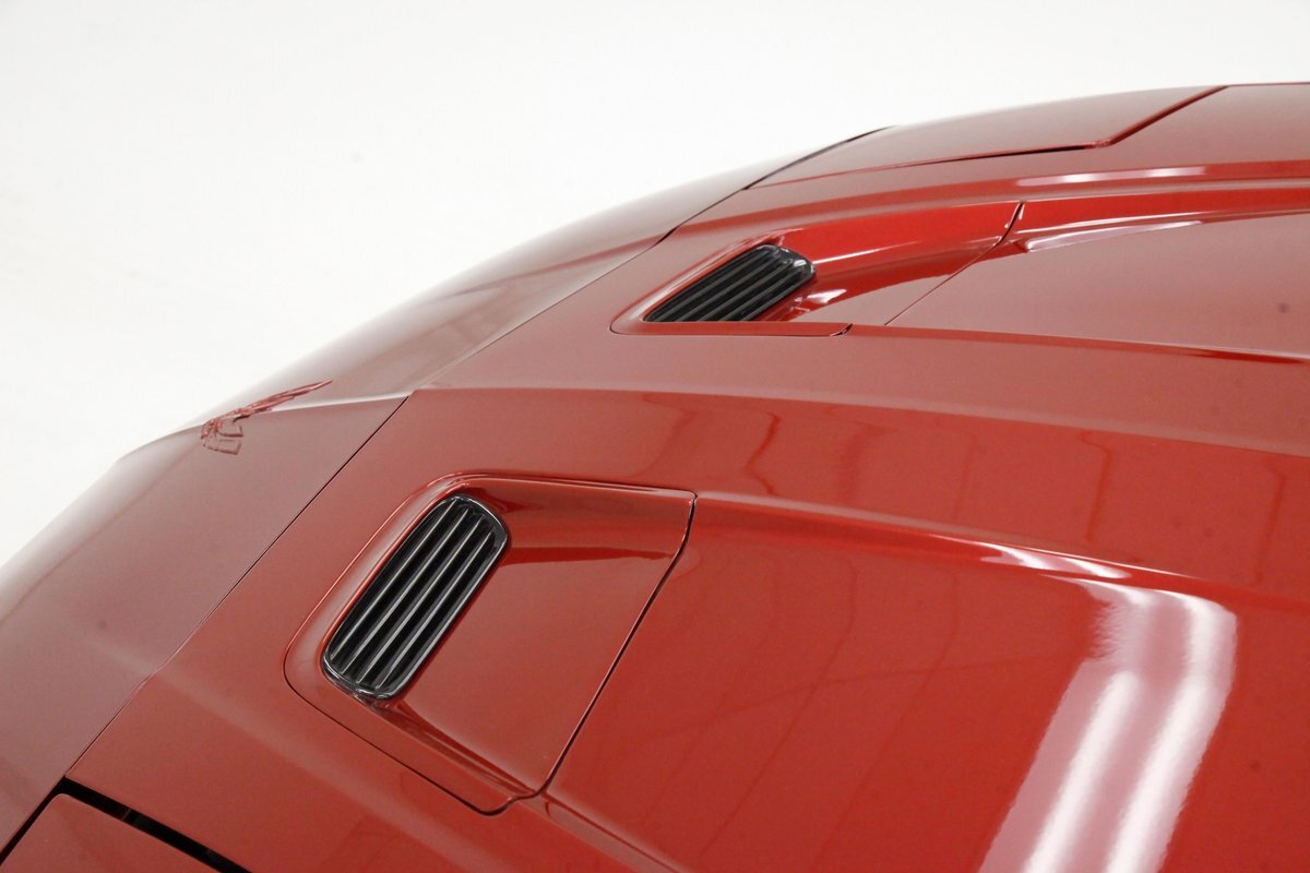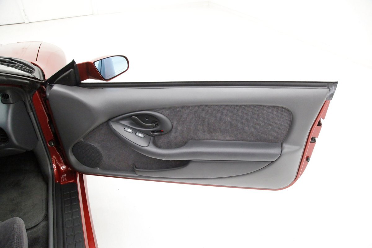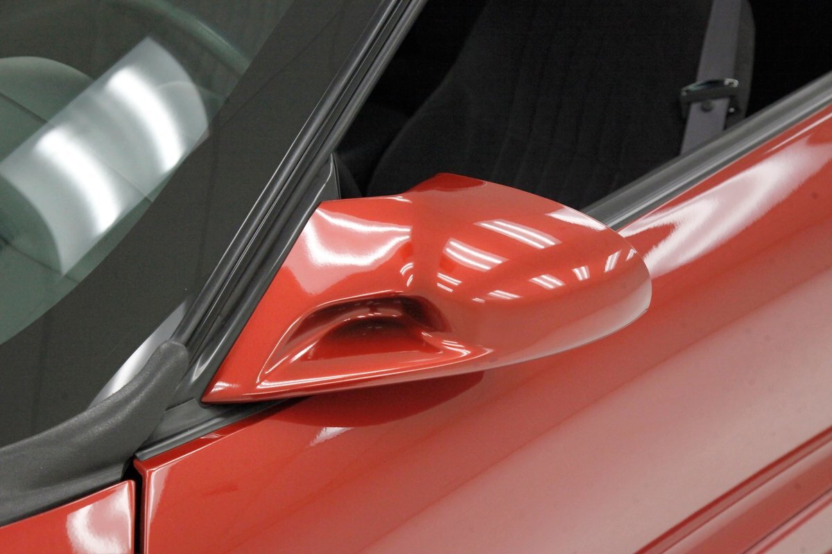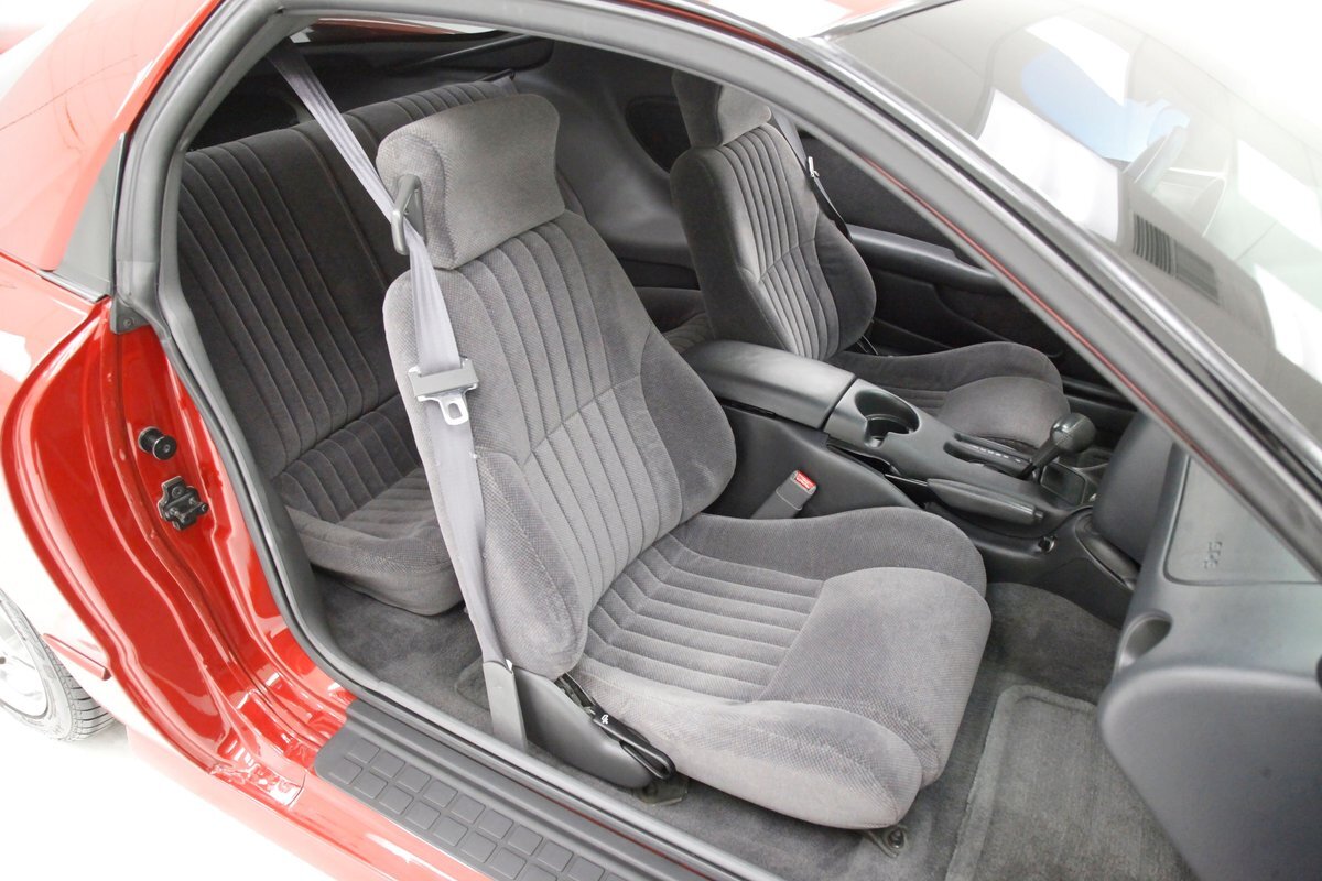 Cayenne Red Metallic base coat and clear coat adorn the straight panels of this car. Virtually no chrome and all composite bumpers and front and rear parts come together to form this aerodynamic Trans Am version. The lines of this car blend seamlessly to form the final shape, all smooth and aerodynamic, more orange than red. A few very minor faults on the trailing edge of the driver's door, but one must look hard to notice them. A fully fixed roof, somewhat of a rarity, leads back to the rear greenhouse glass that sweeps down the hatch to meet the pedestal mount spoiler that wraps its thin edges around the base of the glass. Highly polished chrome Centerline wheels in 17-inch format are wrapped by like new Falken GR8 radials on all 4 corners.