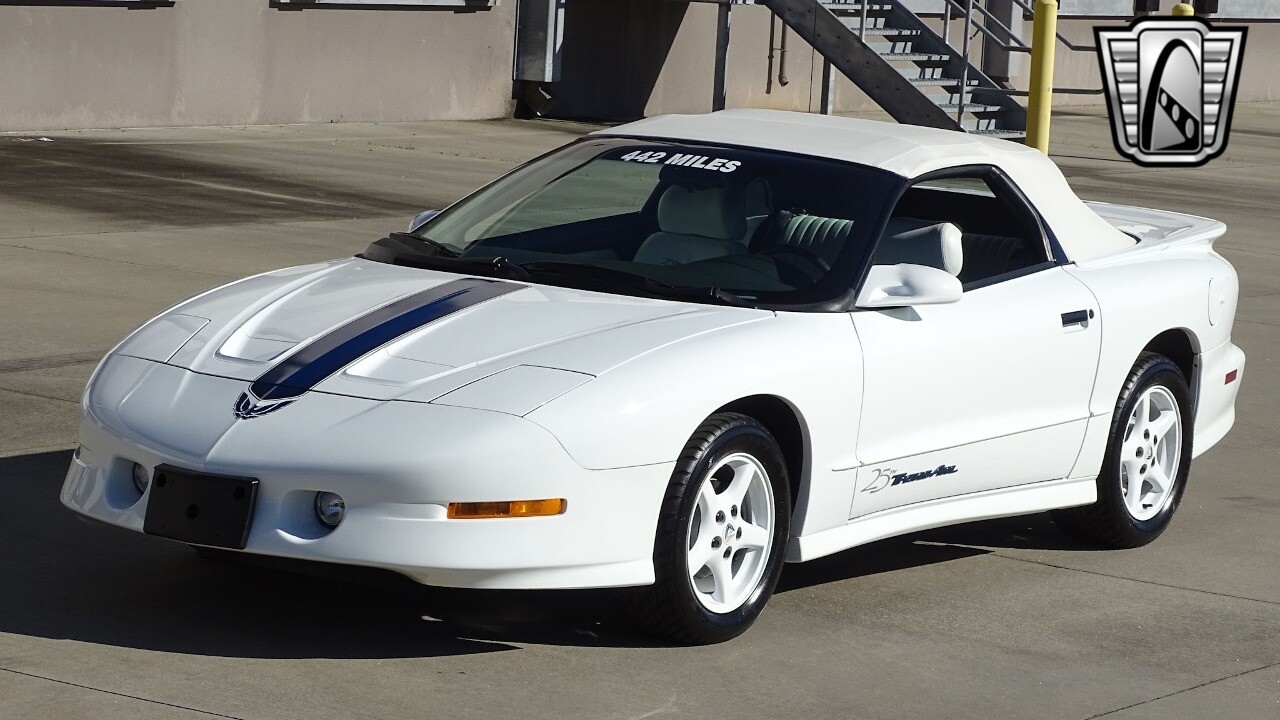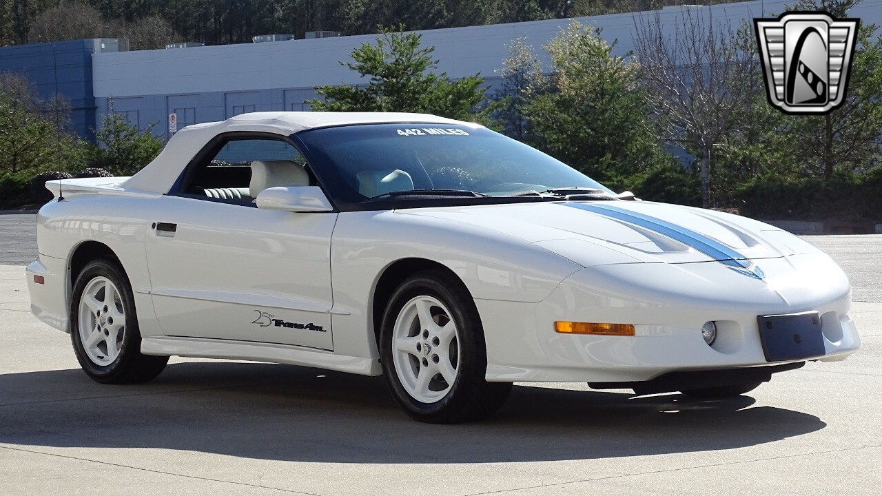 Gateway Classic Cars of Atlanta is proud to present this 1994 Pontiac Firebird 25th Anniversary. Debuting all the way back in 1967, Pontiac unveiled the Firebird, a competent pony car, brother to the Camaro and fellow competitor to the well-known and mighty Ford Mustang. The Firebird would see many changes over the years, but one thing is for certain, they all looked good. The Firebird would see 4 generations that would span 35 years. This white beauty has all the right ingredients for a fun weekend car or the ultimate daily driver with only 489 miles showing on the odometer. Under the hood is the LT1 5.7 Liter V8 engine backed by a 4-Speed 4L60E automatic transmission. According to the consignor, the convertible top has never been put down on this Firebird. Options on this 1994 Pontiac Firebird 25th Anniversary include: Air Conditioning, AM/FM Radio, Automatic Convertible Top, White Leather Interior, Power Brakes, Power Locks, Power Windows, Power Steering, and Seatbelts. [ omitted ]. [ omitted ].