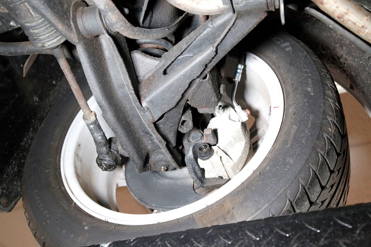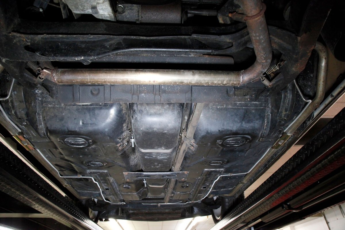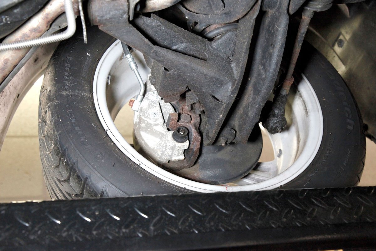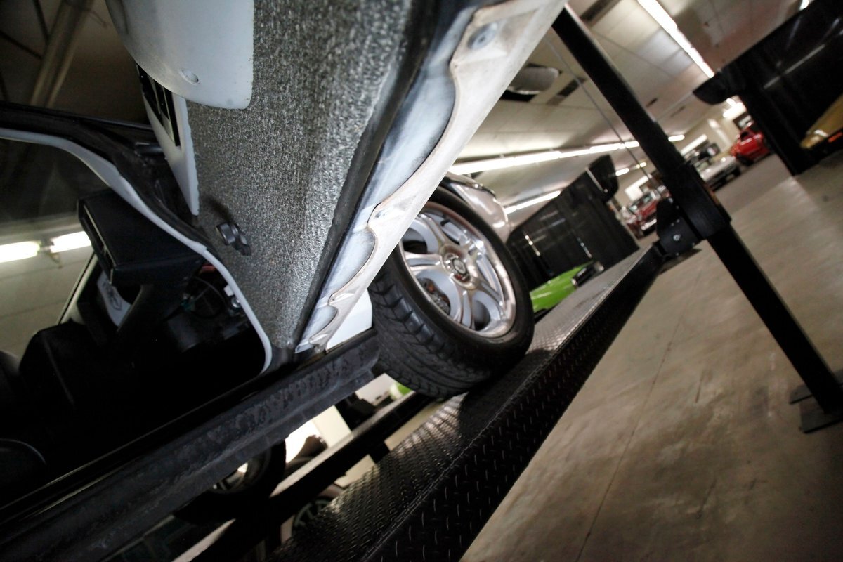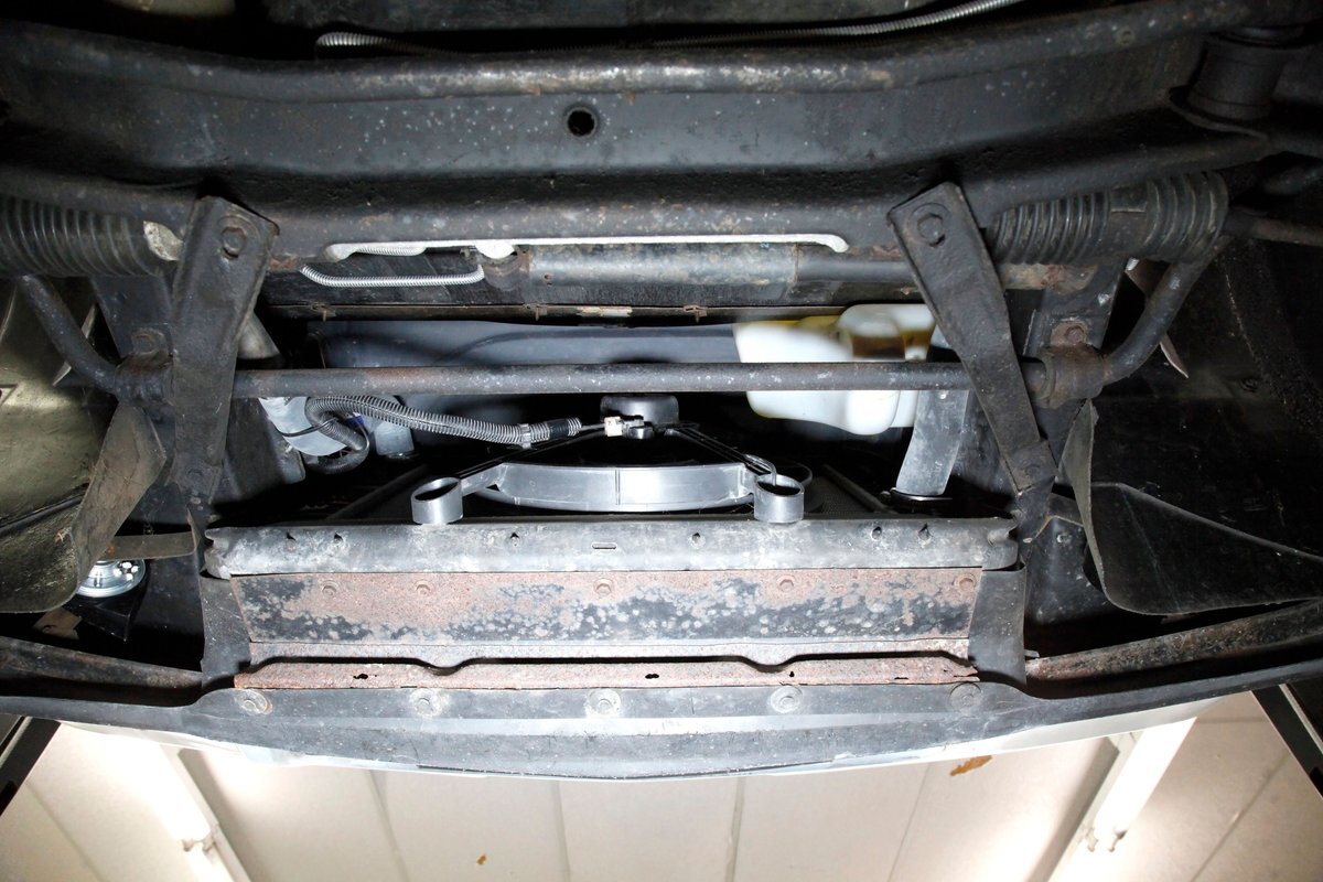 4 wheel independent suspension and 4 wheel power disc braking attach themselves to a clean rust free unibody which has black rust free rockers and floor pans. Pretty much a ground effects bottom with simple attachments and smooth metal abounding. Also noted, no major runs or drips from the engine's bottom end...AMAZING!