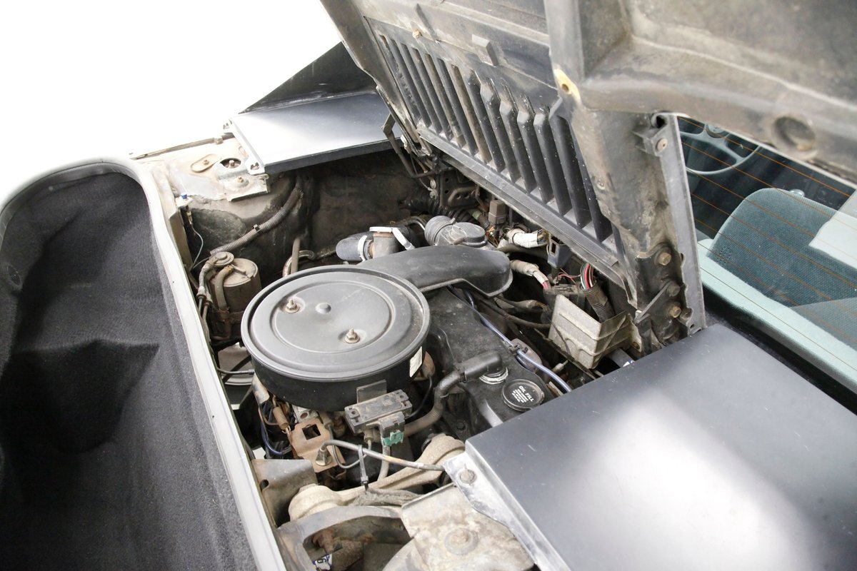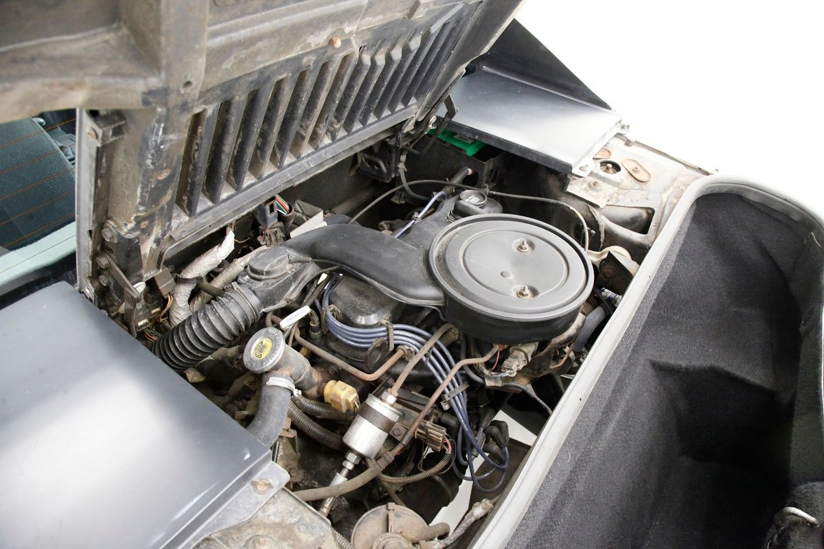 The 2.5-liter four cylinder "Iron Duke" engine is inserted in the mid section directly behind the seats. It is very clean and all original and is fed via EFI. A Muncie M19 4-speed manual transmission is within this area as well, and throws power to the rear wheels via a 4.10 final drive.