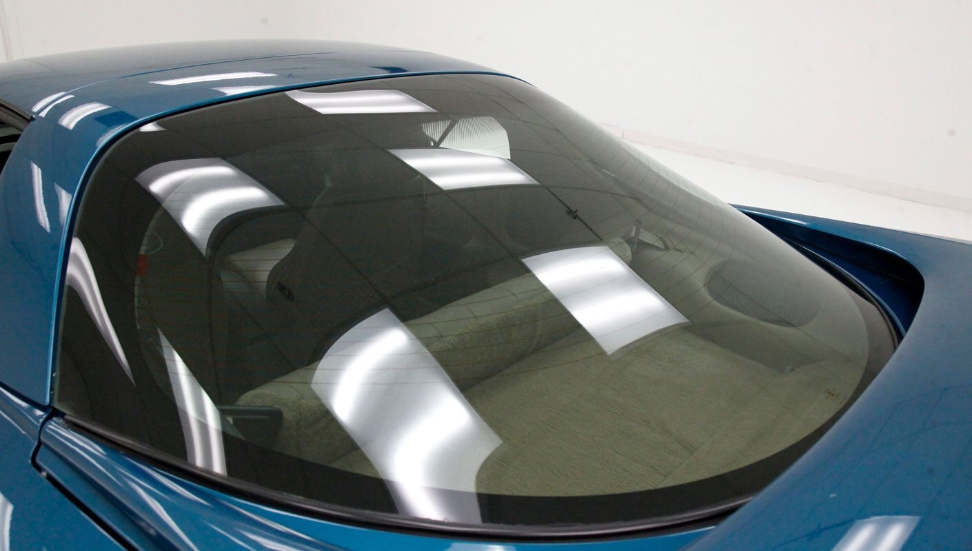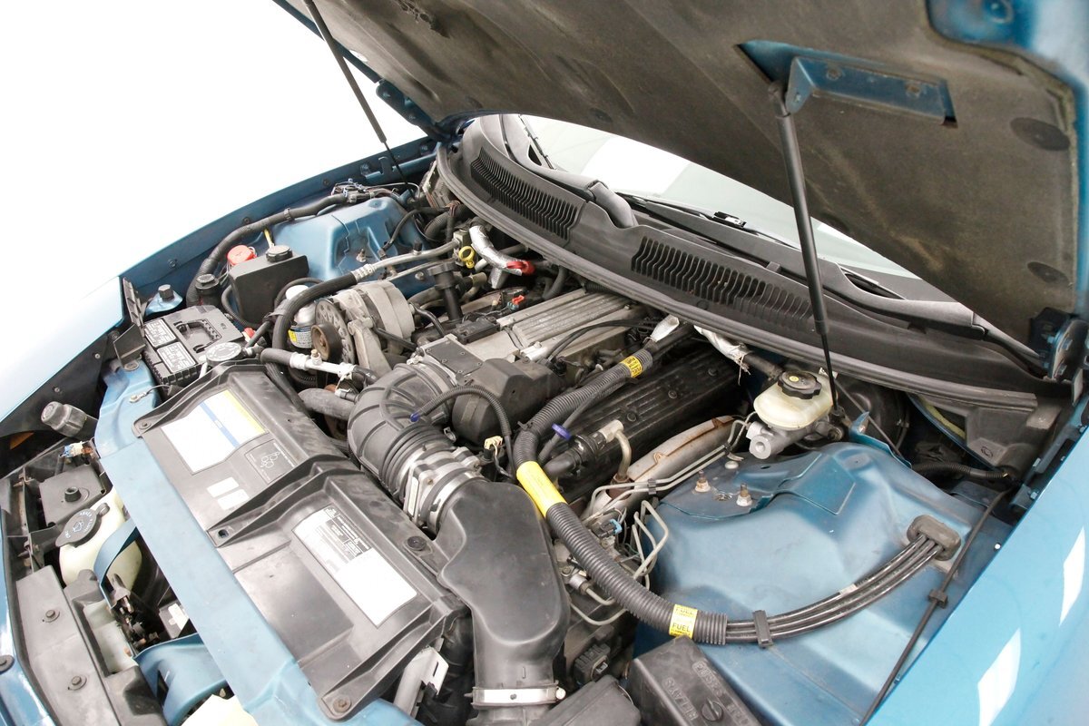 Not like the days of yore with the screaming chickens, muscle engines, and 1980's lumbering styling. NOPE! This takes in a European aero look with hidden headlights, a rounded front with body matching neoprene bumper that slices through the air with MPG efficiency. Trimmings are also body matching including a belt line bump out, and a rear spoiler that wraps around the rear greenhouse glass. Rounded inset tail lights are below the spoiler, and another neoprene body matching in Teal Blue Metallic has cut outs on the bottom to highlight the dual dual exhaust pipes peeking out from underneath. Tinted glass with black trimmings surrounds the passenger compartment giving plenty of viewing space from the raked back windshield and expansive rear glass. 16 inch chrome 5 spoke wheels are highlighting the corners and are wrapped in 33rd week of 2008 production rubber.