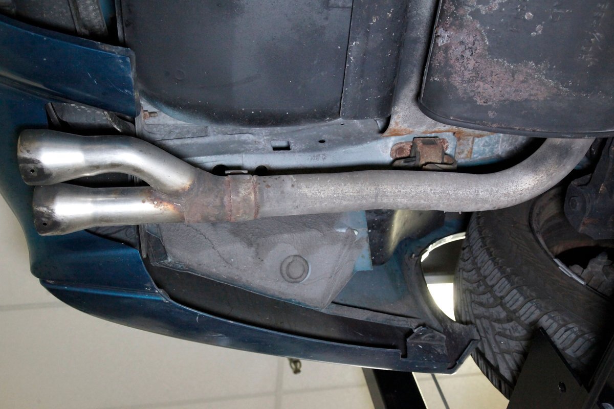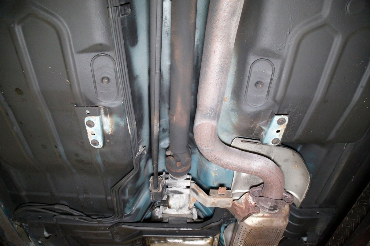 Looking very factory, very clean, and very rust free with total structural unibody soundness. Independent coil springs in front and a torque arm with coil springs works the ride for the back. Power disc braking is on all 4 corners and a single exhaust with a dual outlet is seen in good condition.