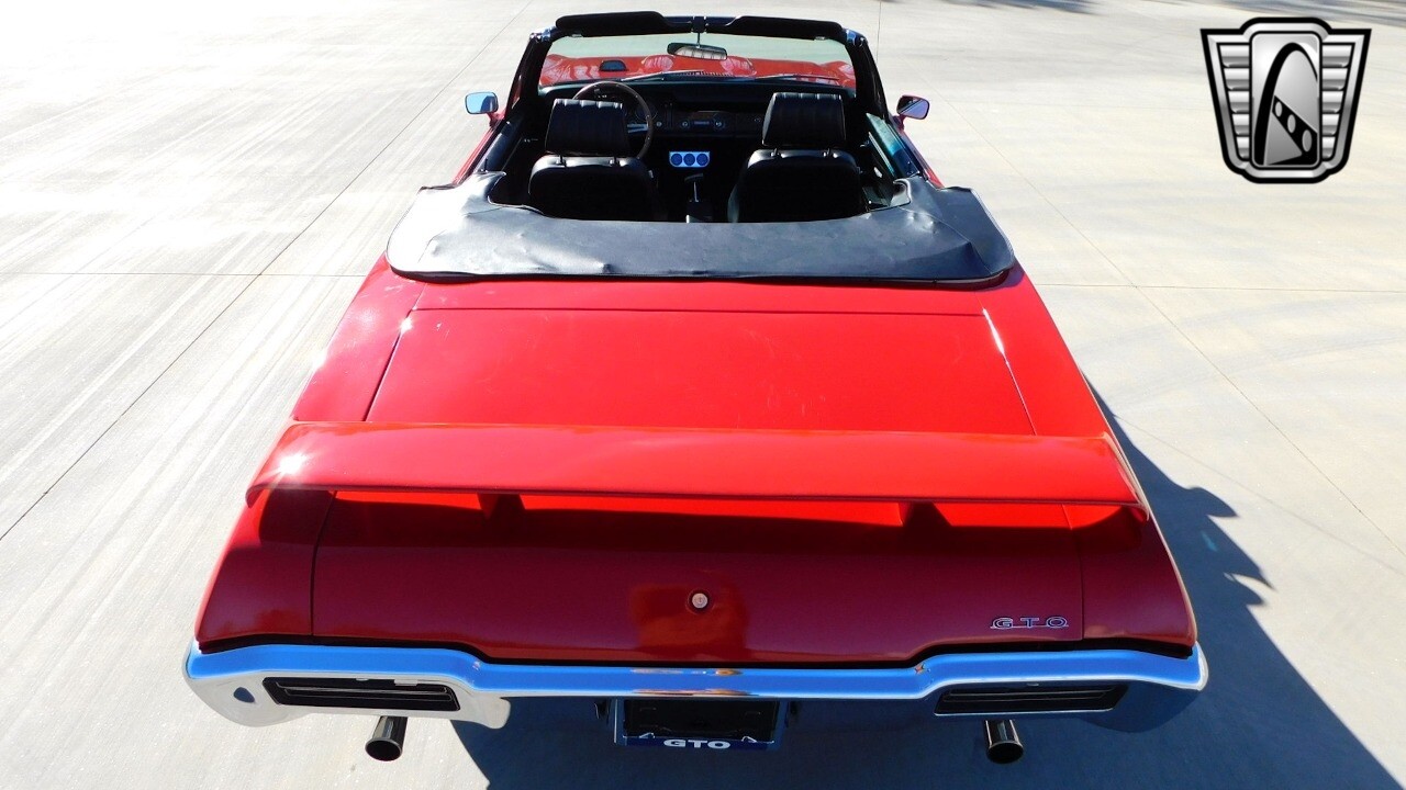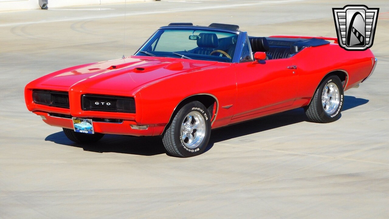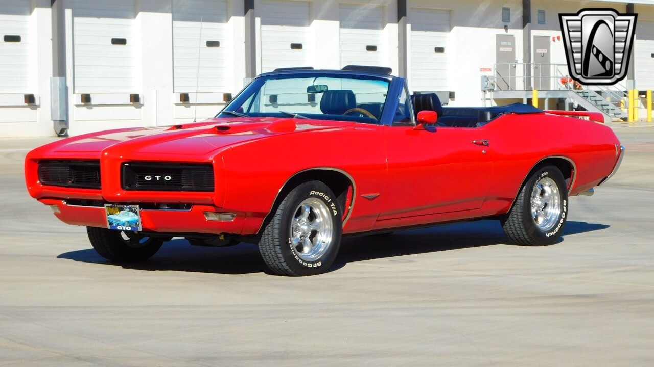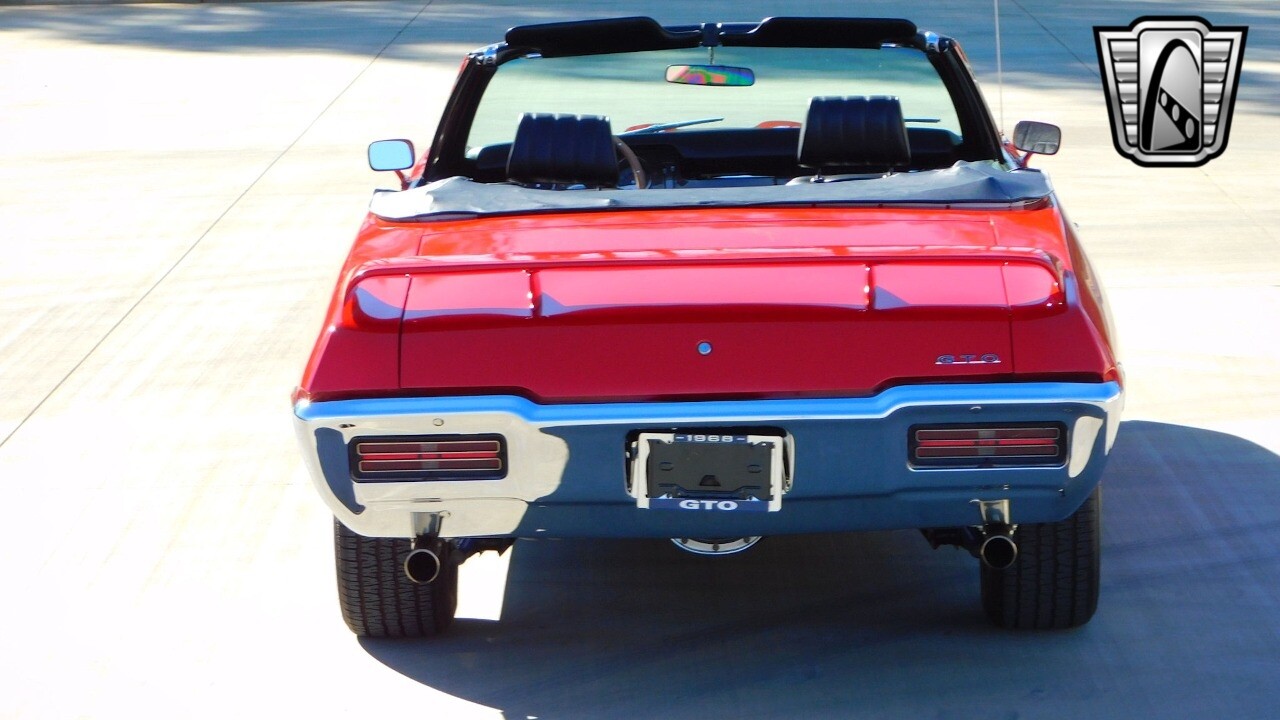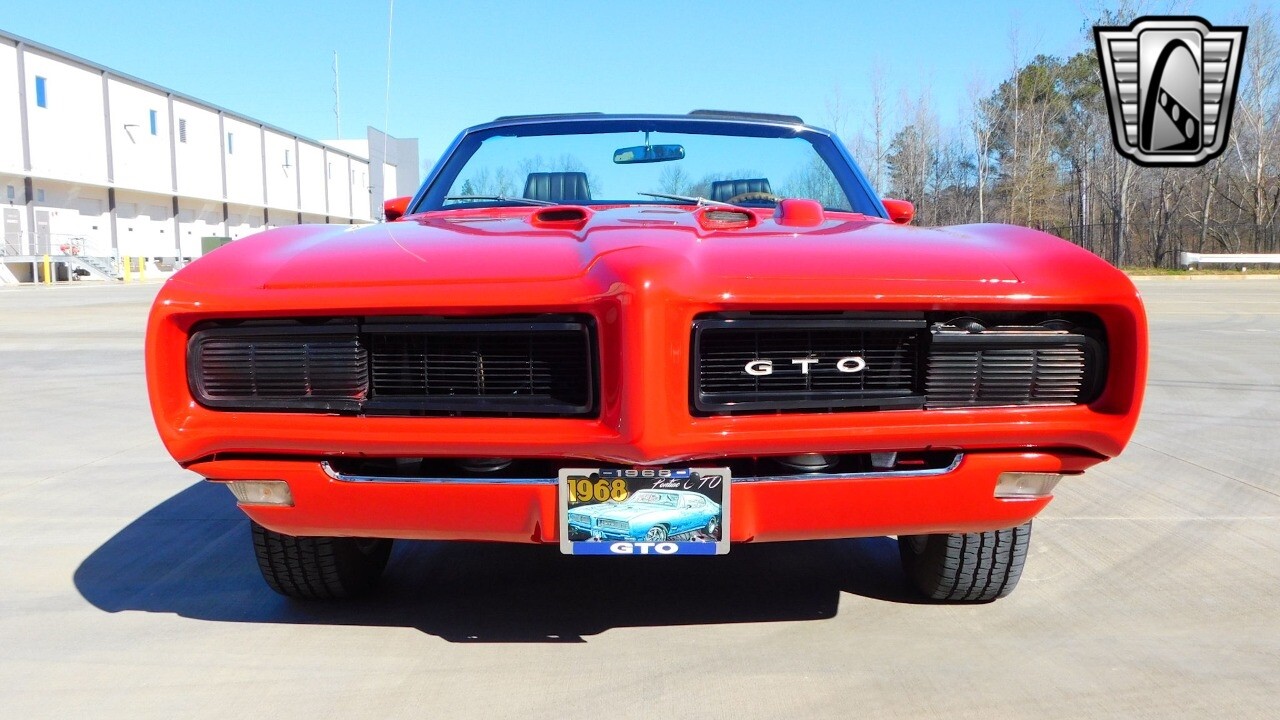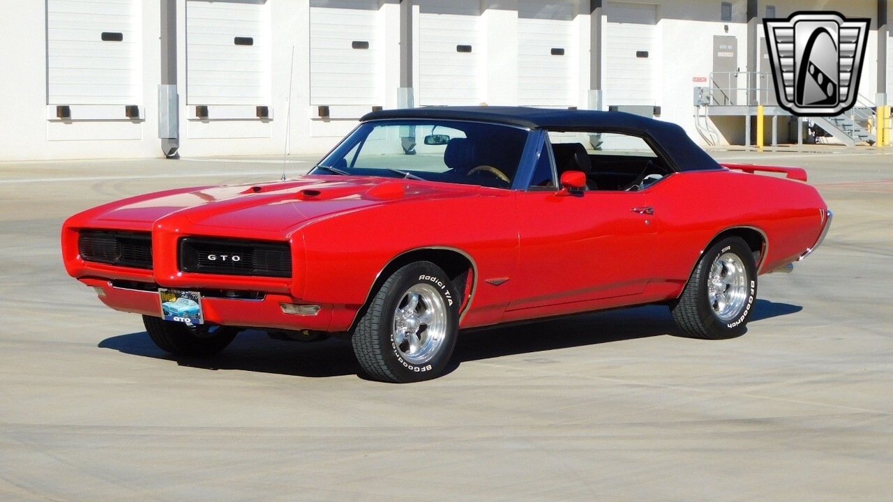 Take a step back in time with this drop-top looker. This 1968 Pontiac GTO is painted in Solar Red with a black vinyl interior. General Motors redesigned its A-body line for 1968, with more curvaceous, semi-fastback styling. This proved to be immensely popular, and by 1968, the GTO had become one of the industry's biggest sellers. This GTO is fitted with a V8 engine mated to a 3-speed automatic transmission. A black convertible top compliments that Solar Red Paint nicely. Procar Rally Series bucket seats in the front with the added convenience of a center console to make this GTO comfortable! Looking out over the muscular hood reveals a hood-tachometer, showing that this GTO means business. Options fitted to this '68 GTO include power steering, power brakes, hood tach, dual mirrors, and Bluetooth stereo. The car rides on a set of American Racing wheels over B.F. Goodrich Radial T/A tires. This GTO is looking for a new home, and it should be sitting in your garage..