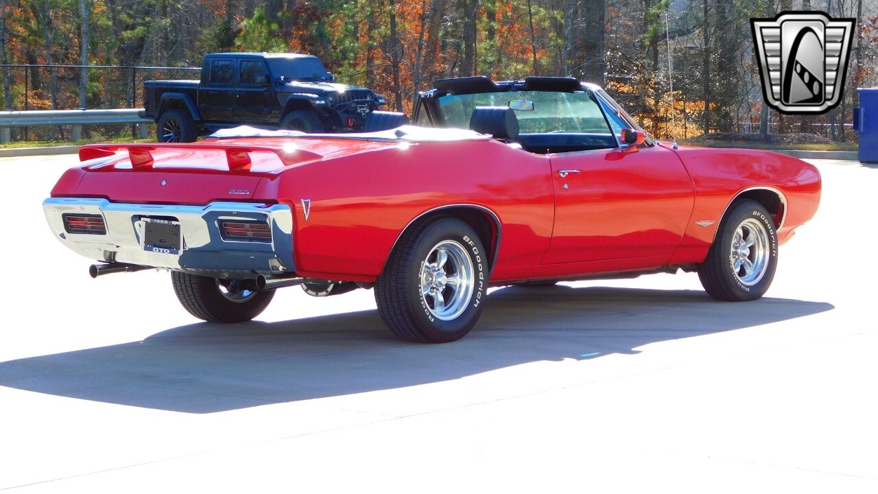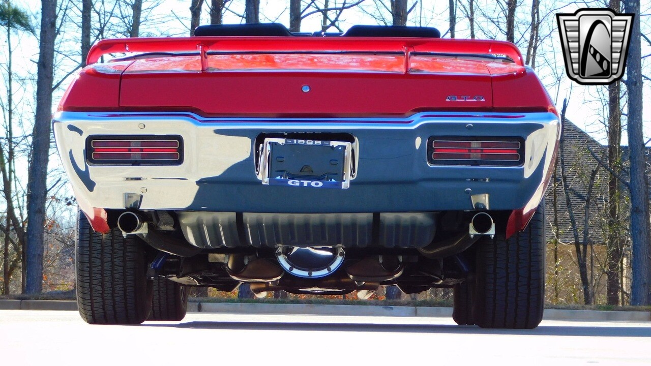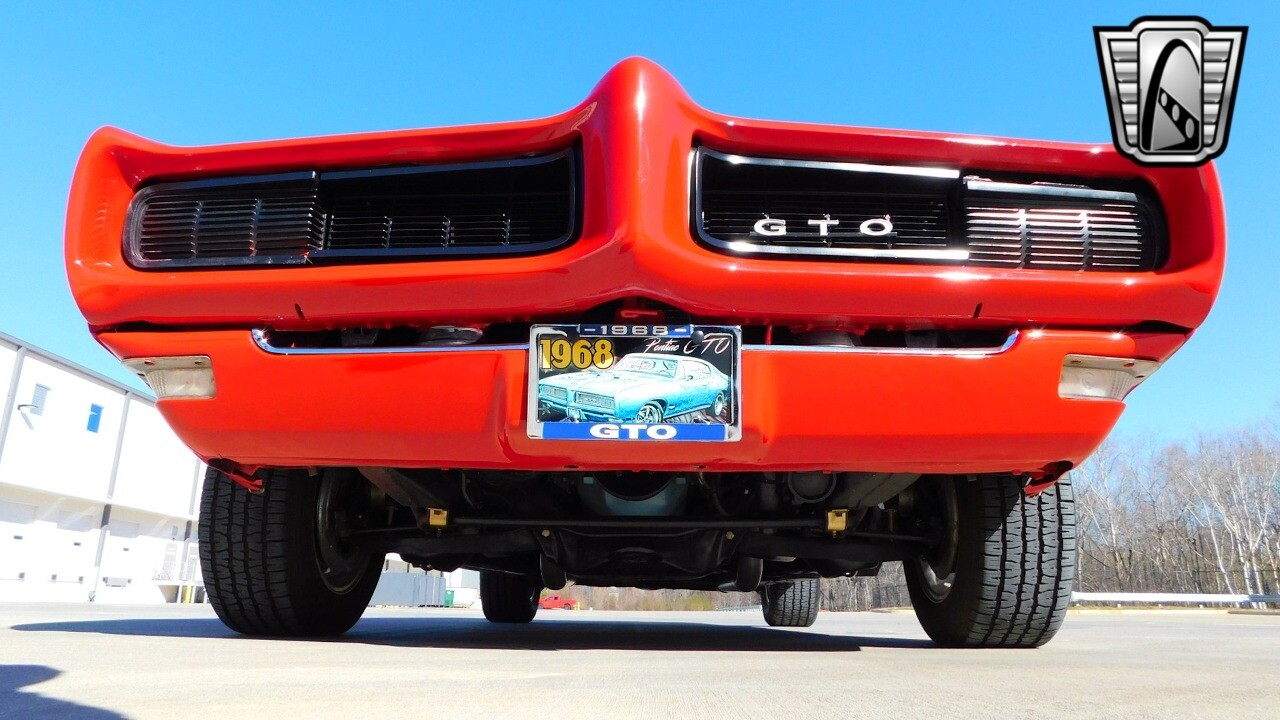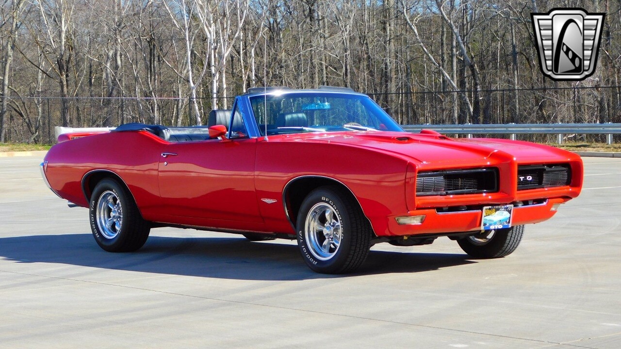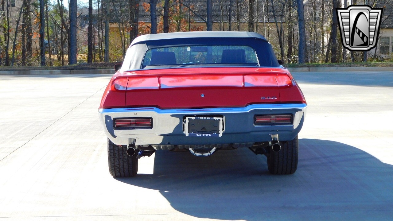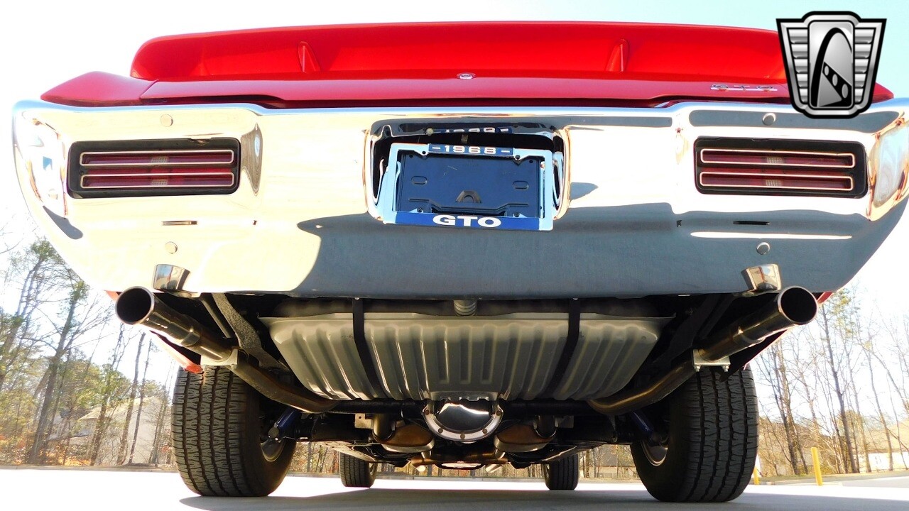 Take a step back in time with this drop-top looker. This 1968 Pontiac GTO is painted in Solar Red with a black vinyl interior. General Motors redesigned its A-body line for 1968, with more curvaceous, semi-fastback styling. This proved to be immensely popular, and by 1968, the GTO had become one of the industry's biggest sellers. This GTO is fitted with a V8 engine mated to a 3-speed automatic transmission. A black convertible top compliments that Solar Red Paint nicely. Procar Rally Series bucket seats in the front with the added convenience of a center console to make this GTO comfortable! Looking out over the muscular hood reveals a hood-tachometer, showing that this GTO means business. Options fitted to this '68 GTO include power steering, power brakes, hood tach, dual mirrors, and Bluetooth stereo. The car rides on a set of American Racing wheels over B.F. Goodrich Radial T/A tires. This GTO is looking for a new home, and it should be sitting in your garage..
