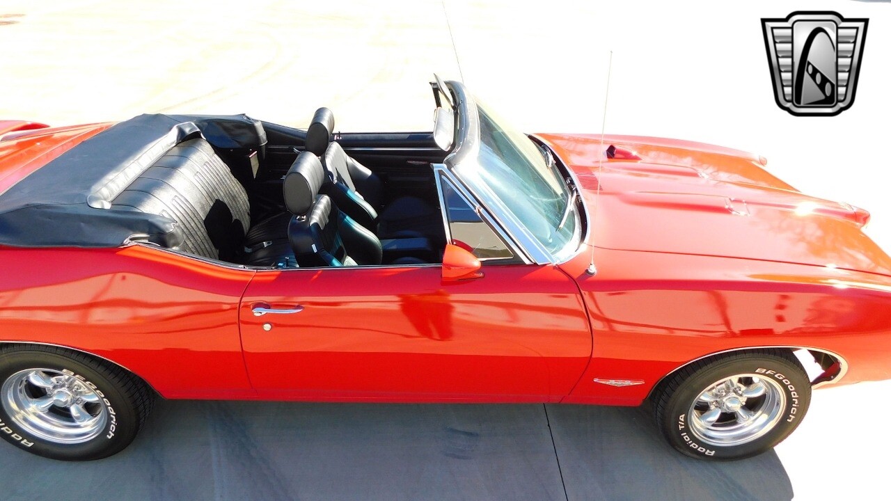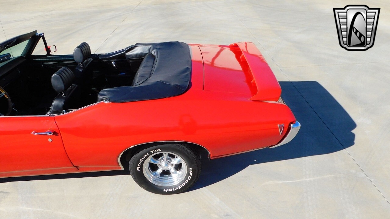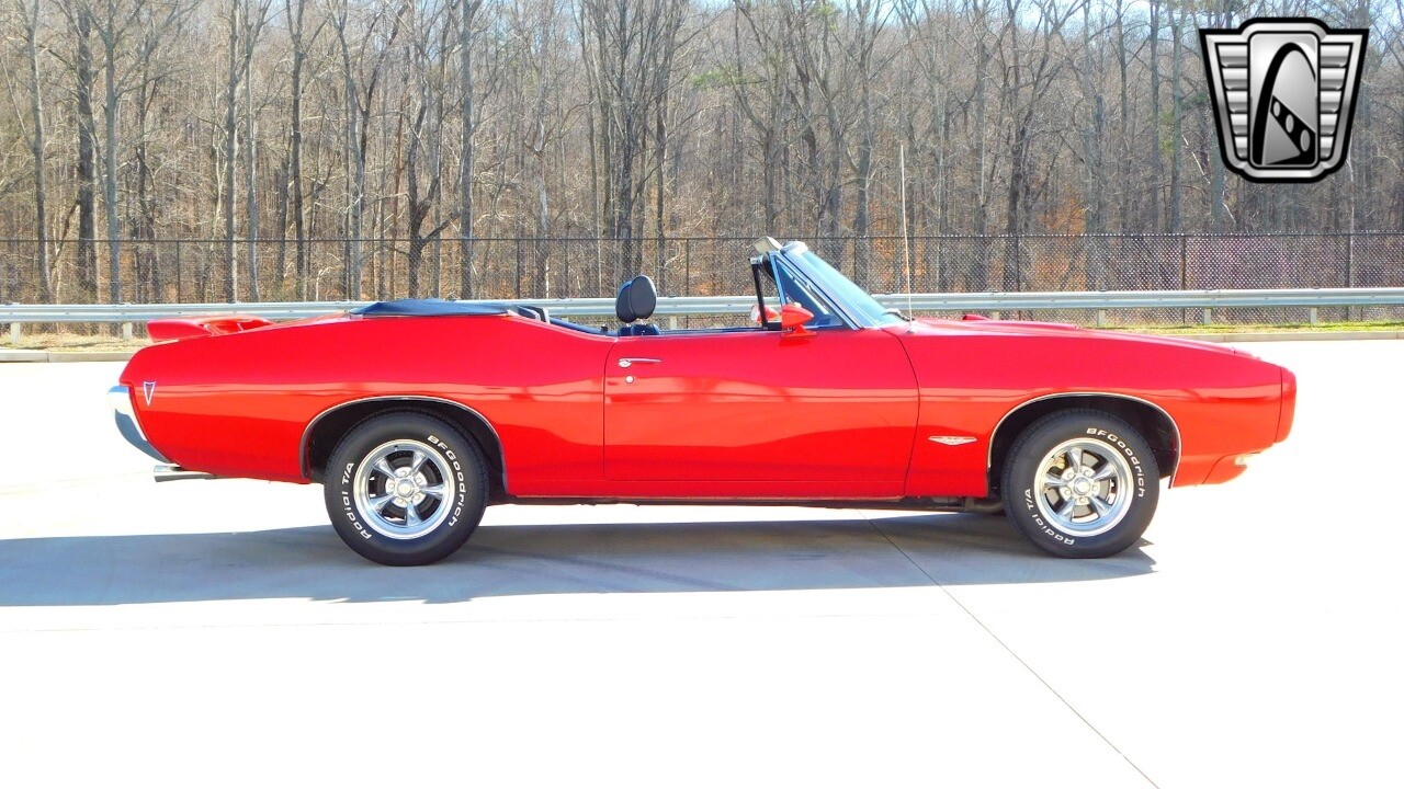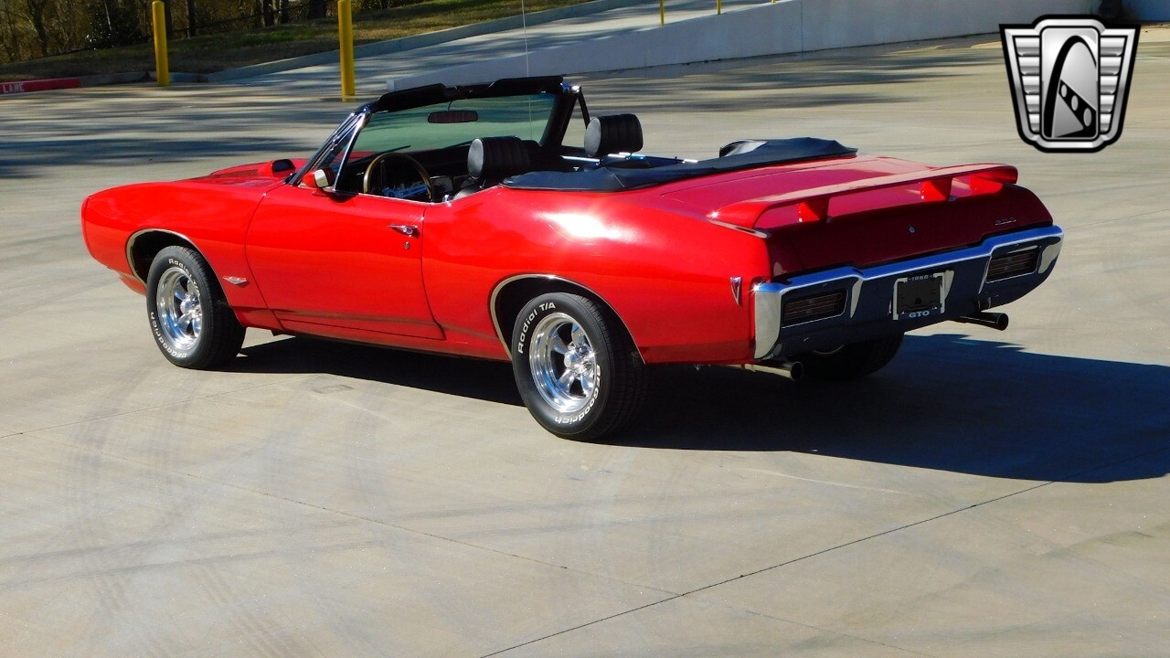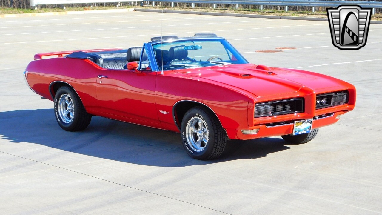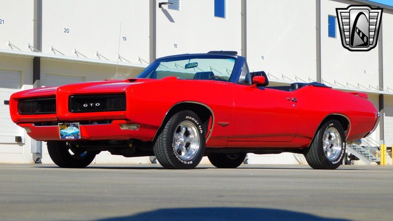 Take a step back in time with this drop-top looker. This 1968 Pontiac GTO is painted in Solar Red with a black vinyl interior. General Motors redesigned its A-body line for 1968, with more curvaceous, semi-fastback styling. This proved to be immensely popular, and by 1968, the GTO had become one of the industry's biggest sellers. This GTO is fitted with a V8 engine mated to a 3-speed automatic transmission. A black convertible top compliments that Solar Red Paint nicely. Procar Rally Series bucket seats in the front with the added convenience of a center console to make this GTO comfortable! Looking out over the muscular hood reveals a hood-tachometer, showing that this GTO means business. Options fitted to this '68 GTO include power steering, power brakes, hood tach, dual mirrors, and Bluetooth stereo. The car rides on a set of American Racing wheels over B.F. Goodrich Radial T/A tires. This GTO is looking for a new home, and it should be sitting in your garage..