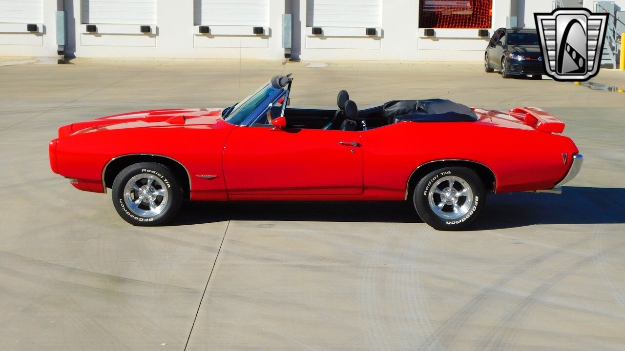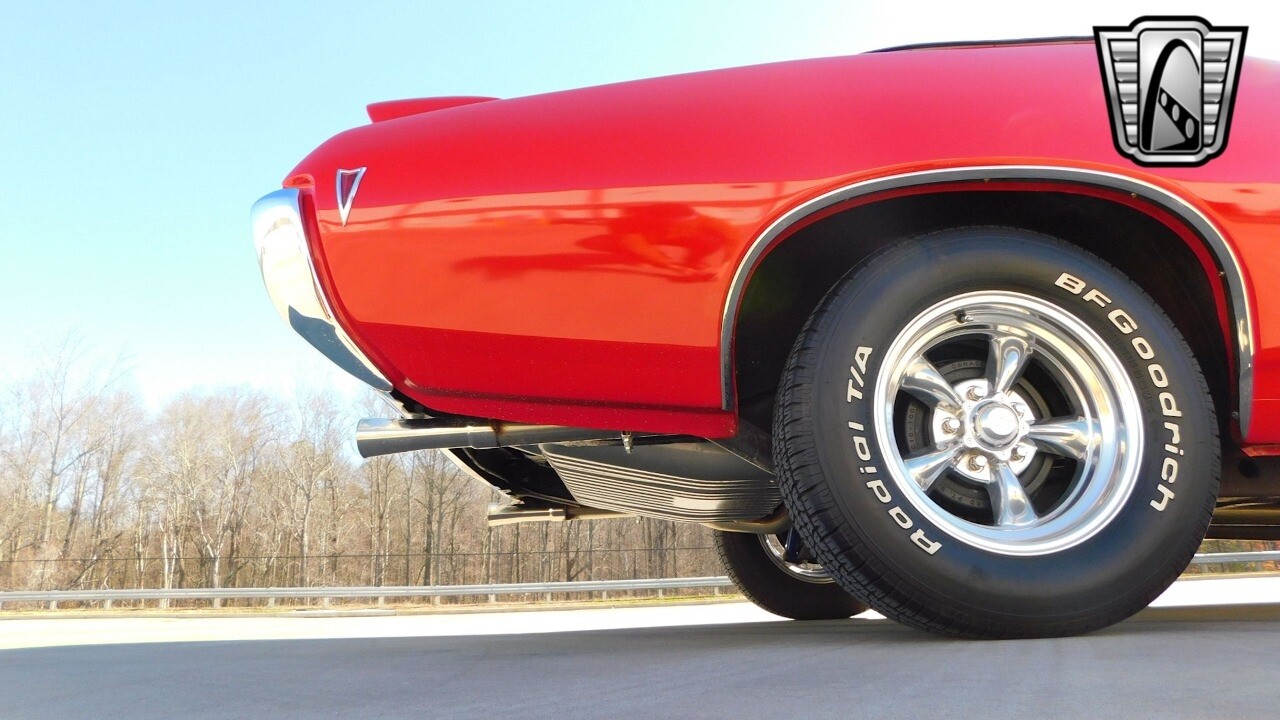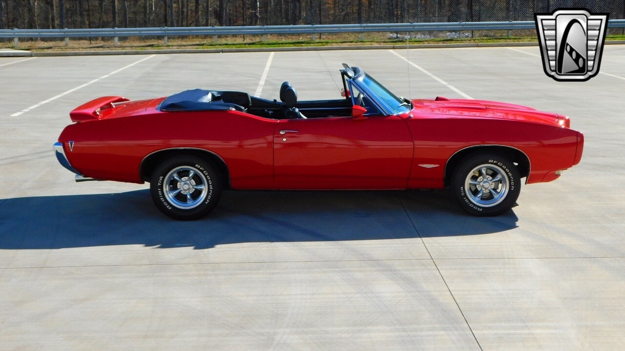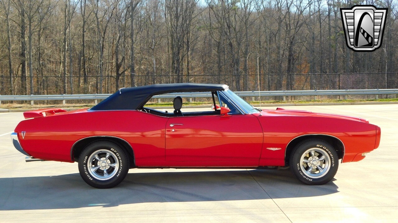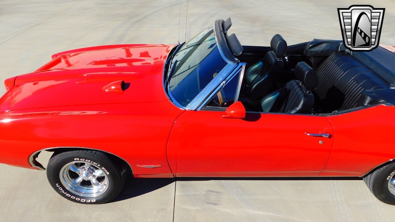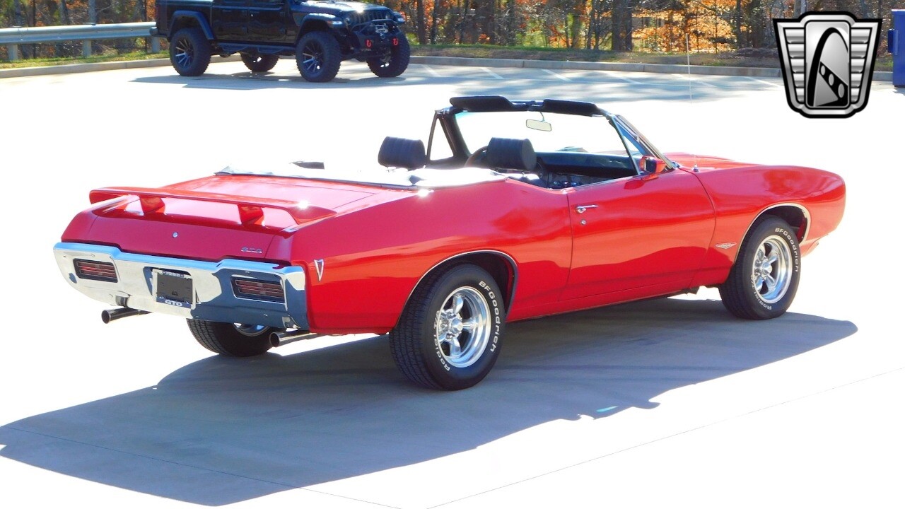 Take a step back in time with this drop-top looker. This 1968 Pontiac GTO is painted in Solar Red with a black vinyl interior. General Motors redesigned its A-body line for 1968, with more curvaceous, semi-fastback styling. This proved to be immensely popular, and by 1968, the GTO had become one of the industry's biggest sellers. This GTO is fitted with a V8 engine mated to a 3-speed automatic transmission. A black convertible top compliments that Solar Red Paint nicely. Procar Rally Series bucket seats in the front with the added convenience of a center console to make this GTO comfortable! Looking out over the muscular hood reveals a hood-tachometer, showing that this GTO means business. Options fitted to this '68 GTO include power steering, power brakes, hood tach, dual mirrors, and Bluetooth stereo. The car rides on a set of American Racing wheels over B.F. Goodrich Radial T/A tires. This GTO is looking for a new home, and it should be sitting in your garage..