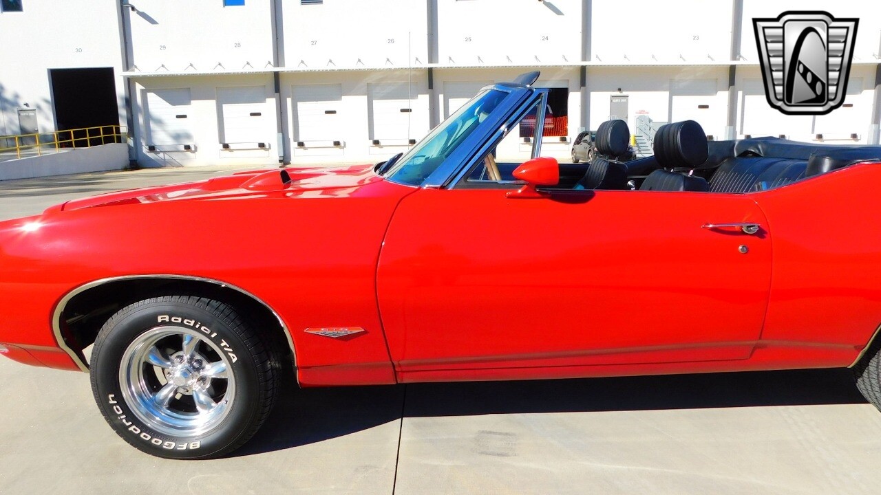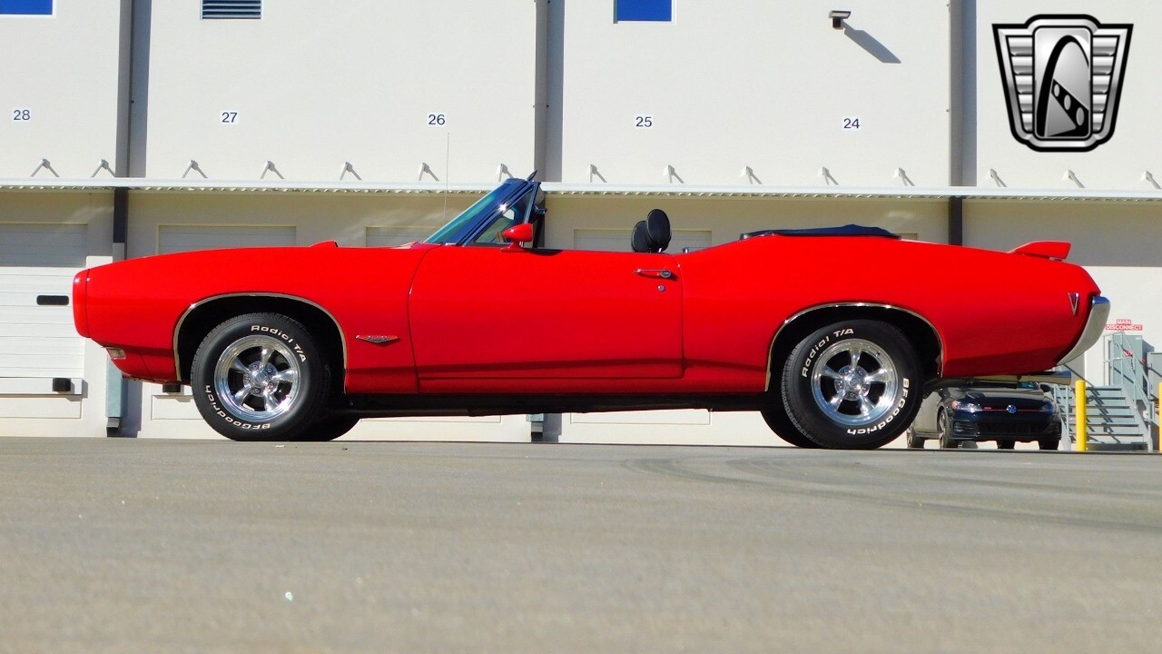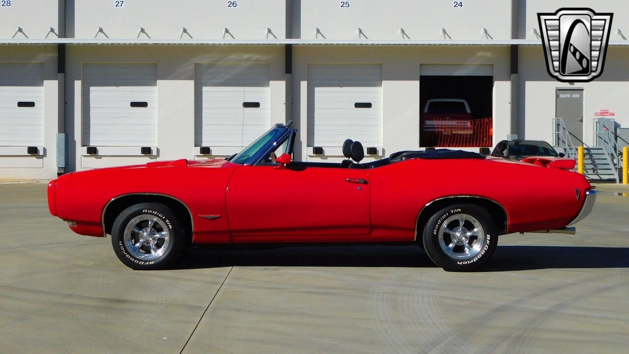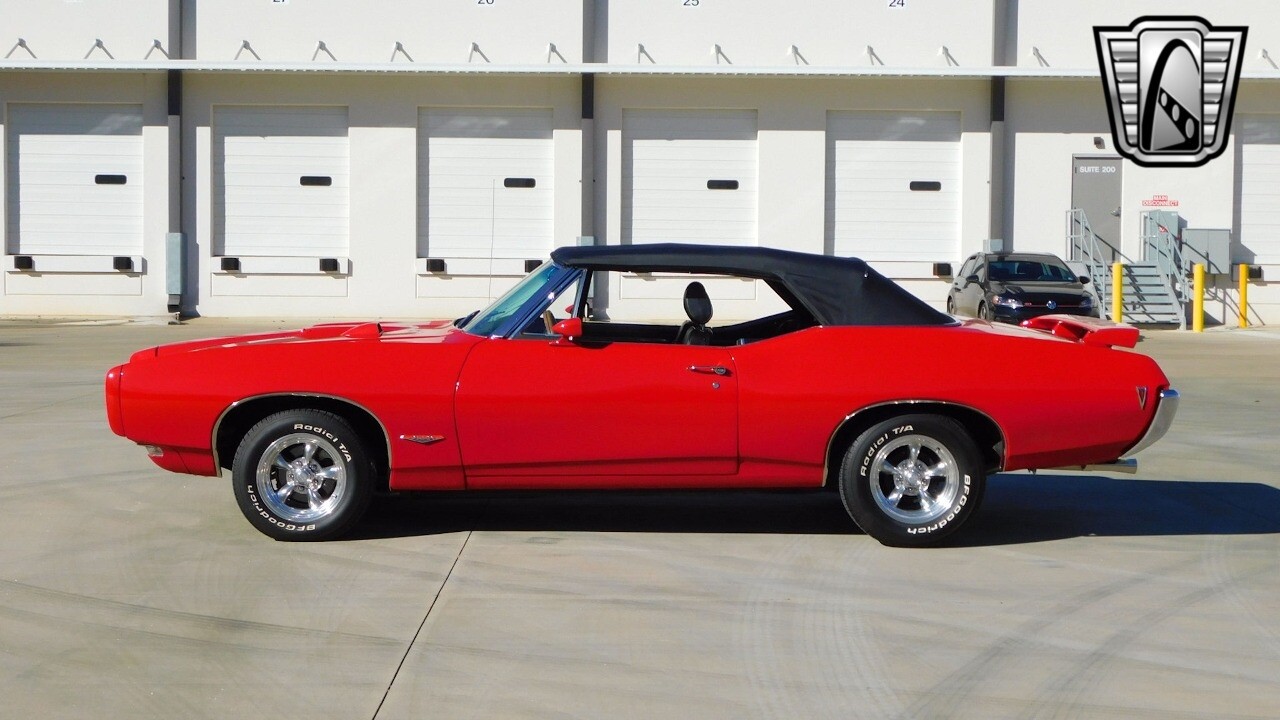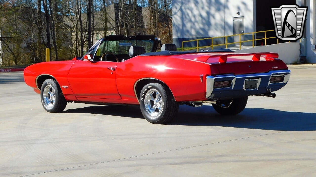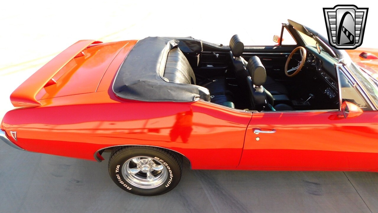 Take a step back in time with this drop-top looker. This 1968 Pontiac GTO is painted in Solar Red with a black vinyl interior. General Motors redesigned its A-body line for 1968, with more curvaceous, semi-fastback styling. This proved to be immensely popular, and by 1968, the GTO had become one of the industry's biggest sellers. This GTO is fitted with a V8 engine mated to a 3-speed automatic transmission. A black convertible top compliments that Solar Red Paint nicely. Procar Rally Series bucket seats in the front with the added convenience of a center console to make this GTO comfortable! Looking out over the muscular hood reveals a hood-tachometer, showing that this GTO means business. Options fitted to this '68 GTO include power steering, power brakes, hood tach, dual mirrors, and Bluetooth stereo. The car rides on a set of American Racing wheels over B.F. Goodrich Radial T/A tires. This GTO is looking for a new home, and it should be sitting in your garage..