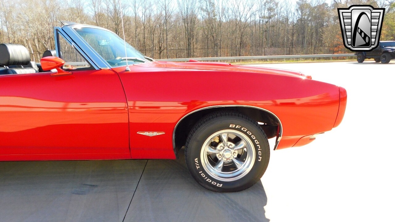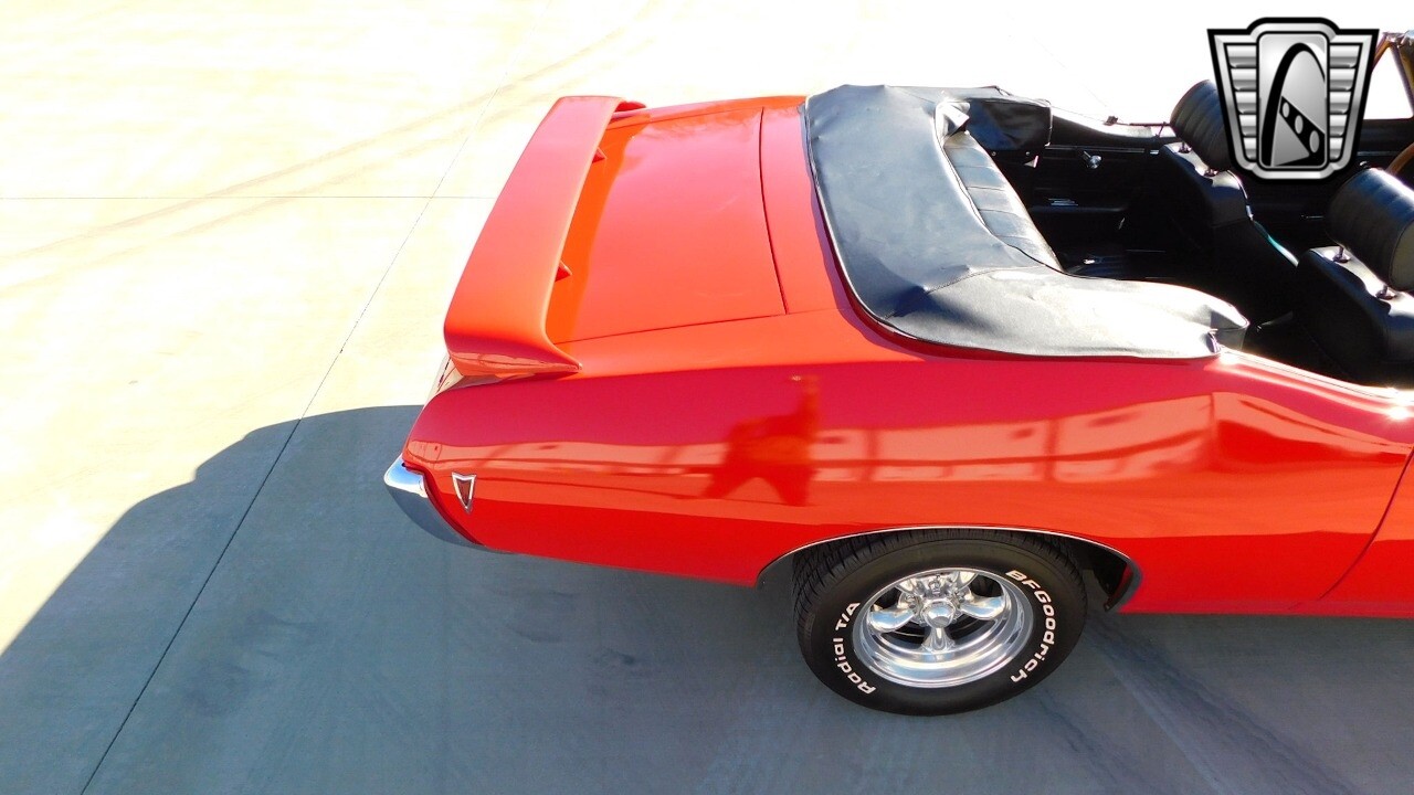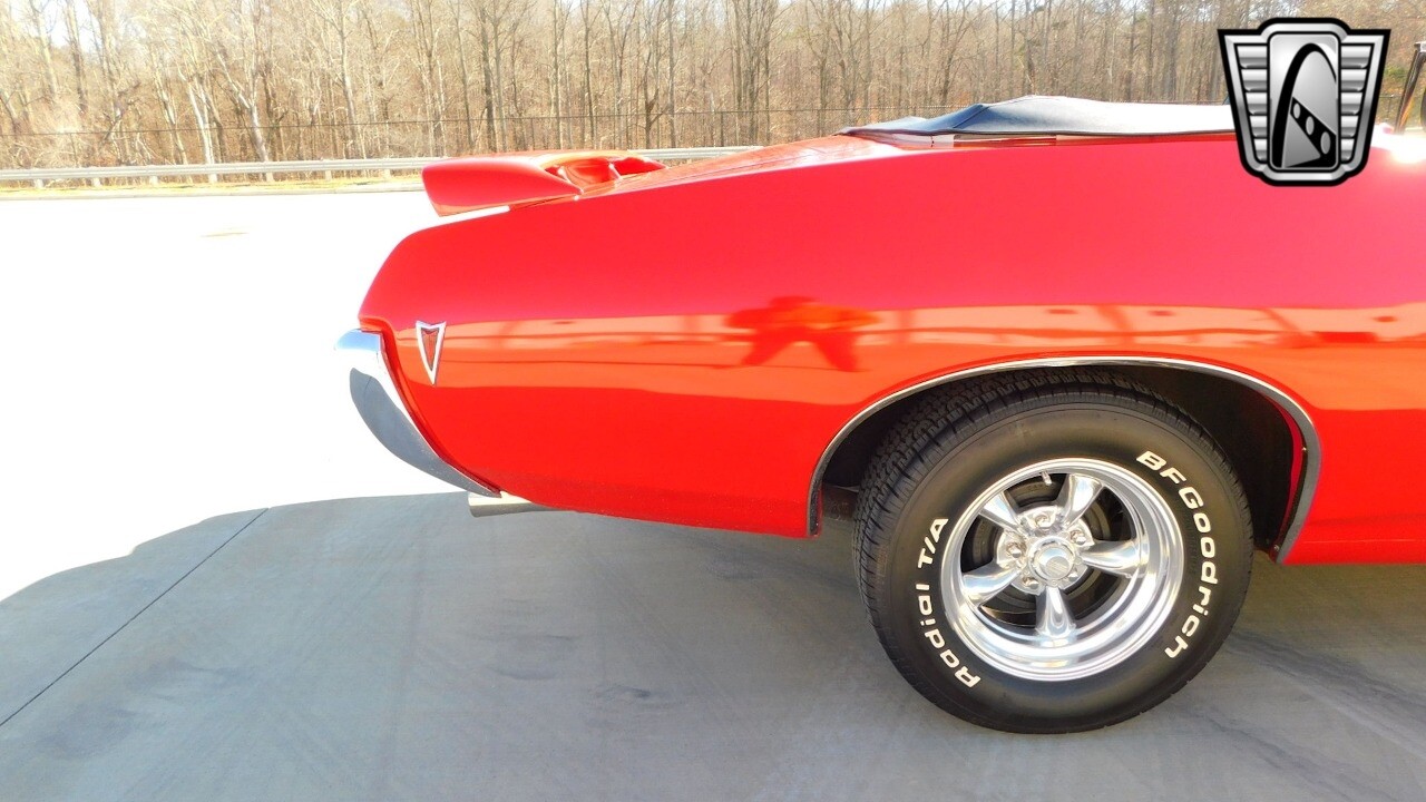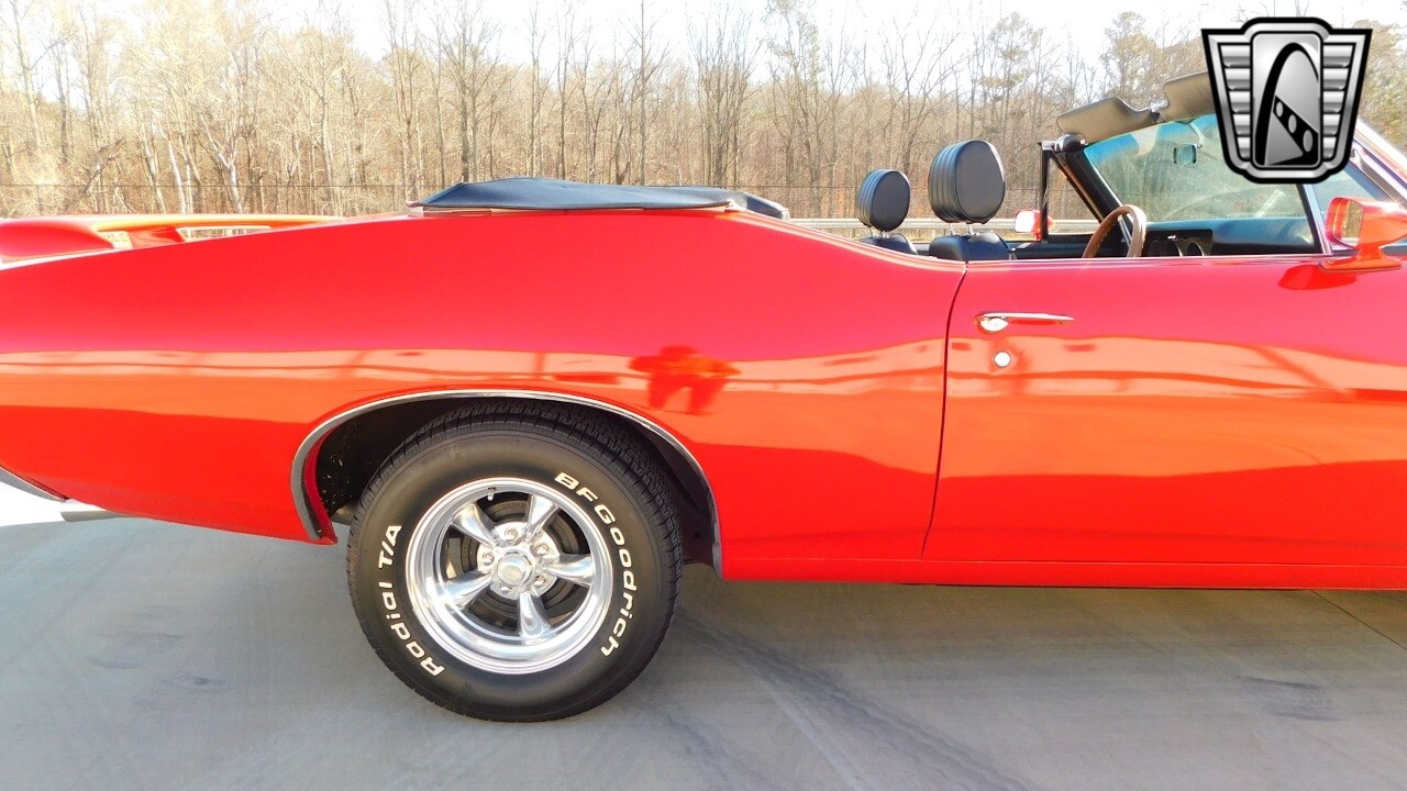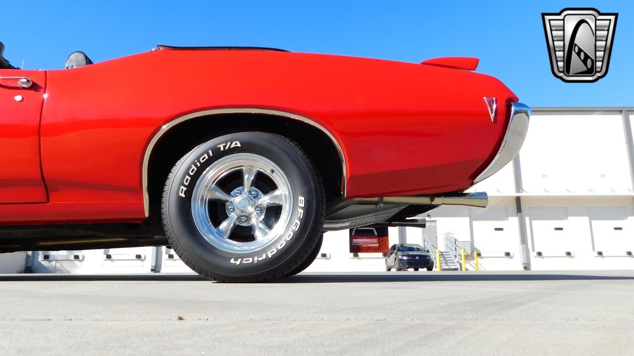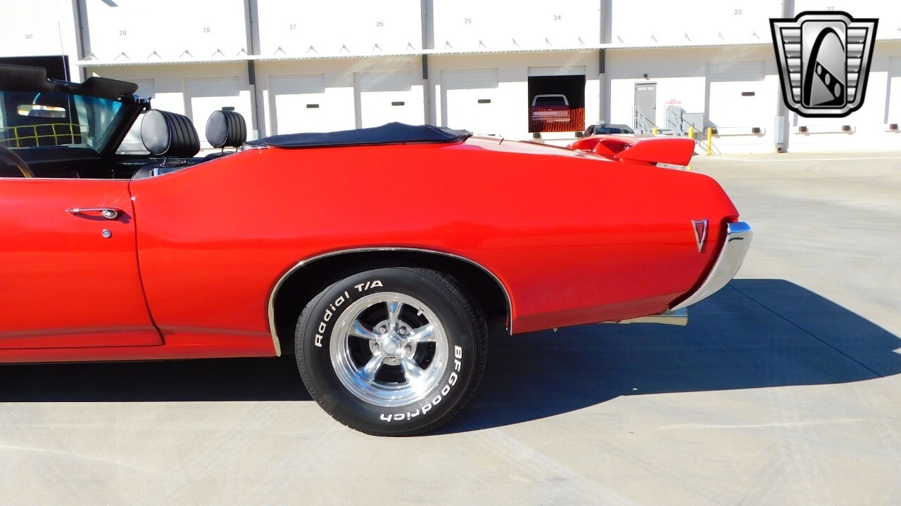 Take a step back in time with this drop-top looker. This 1968 Pontiac GTO is painted in Solar Red with a black vinyl interior. General Motors redesigned its A-body line for 1968, with more curvaceous, semi-fastback styling. This proved to be immensely popular, and by 1968, the GTO had become one of the industry's biggest sellers. This GTO is fitted with a V8 engine mated to a 3-speed automatic transmission. A black convertible top compliments that Solar Red Paint nicely. Procar Rally Series bucket seats in the front with the added convenience of a center console to make this GTO comfortable! Looking out over the muscular hood reveals a hood-tachometer, showing that this GTO means business. Options fitted to this '68 GTO include power steering, power brakes, hood tach, dual mirrors, and Bluetooth stereo. The car rides on a set of American Racing wheels over B.F. Goodrich Radial T/A tires. This GTO is looking for a new home, and it should be sitting in your garage..