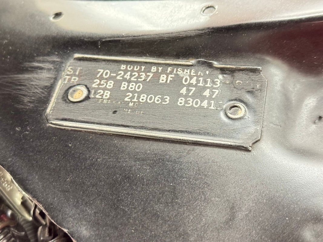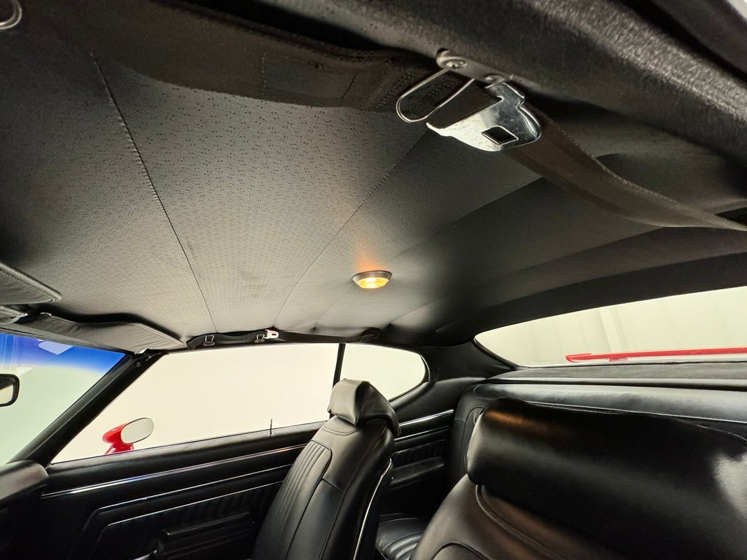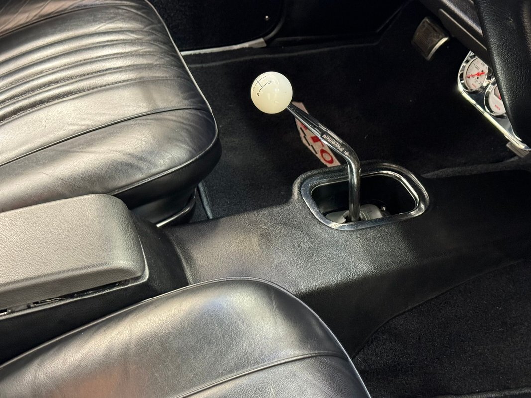 A non original 1970 400ci V8 silver painted block is topped with an Edelbrock intake and a Holley 4-barrel carburetor and all rests between the fenders. On back, installed just this year is an Autogear 4-speed manual transmission with a McLeod Super Street Pro clutch kit and a Quicktime blow- proof bell housing. All this power goes to the 12 bolt rear axle with a 3.73 posi ratio. Hedman headers and a motorized infinite opening setting controller switch in the console and QTP cutouts will make heads turn! This engine presents nicely in a fully restored engine bay and has some extra bling from the factory in the form of chrome valve covers and a chrome air cleaner lid assembly. Also seen is an MSD ignition.