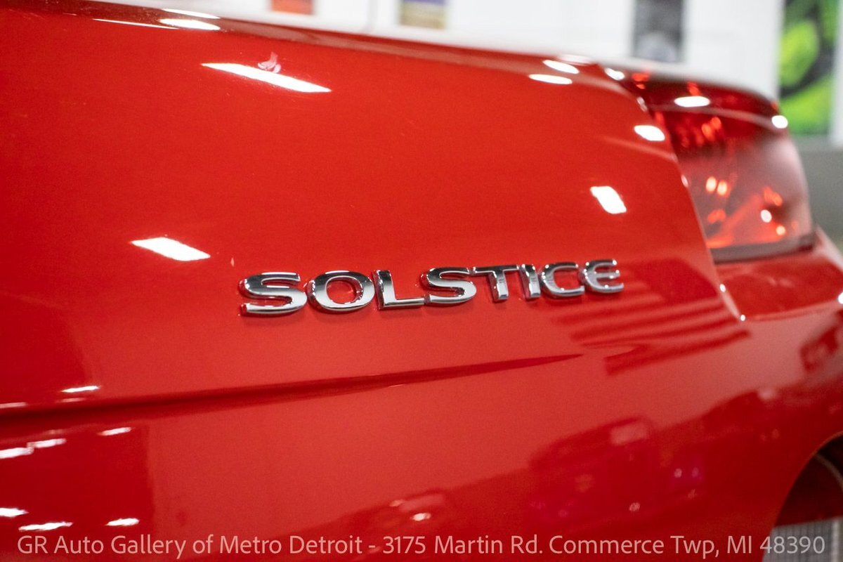 GR Auto Gallery is pleased to present this extremely low-mileage 2006 Pontiac Solstice for your consideration. This Solstice comes suiting a beautiful Victory Red exterior over a very clean black cloth interior. Powering this Solstice is a 2.4 Liter 4 cylinder engine producing 177Hp paired with a 5-speed manual transmission. This Solstice has some awesome features such as; A manual convertible top, power windows, locks and mirrors, functional heat and air conditioning, functional stereo, front-hinged strutted hood, front bucket seats, tilt steering wheel, silver Pontiac wheels, cruise control, and much more. This Solstice is day one you won't find another in this condition, it has been meticulously maintained throughout its ownership, the drivability of this 5-speed geared manual will make this driving experience a blast. Drive this one out of our showroom or have us assist with shipping it to you anywhere in the United States! Don't hesitate to call us with any questions or for more information.
