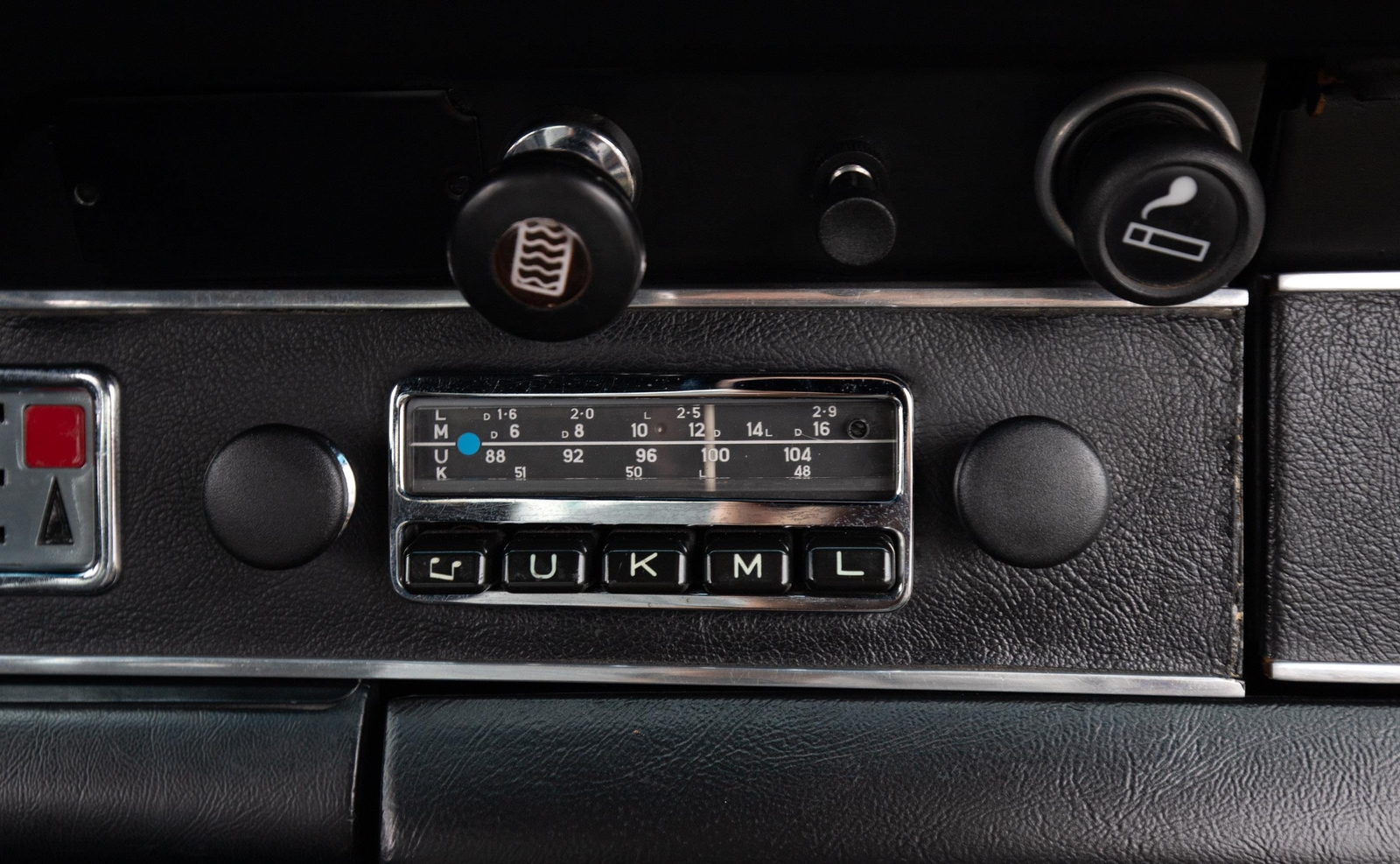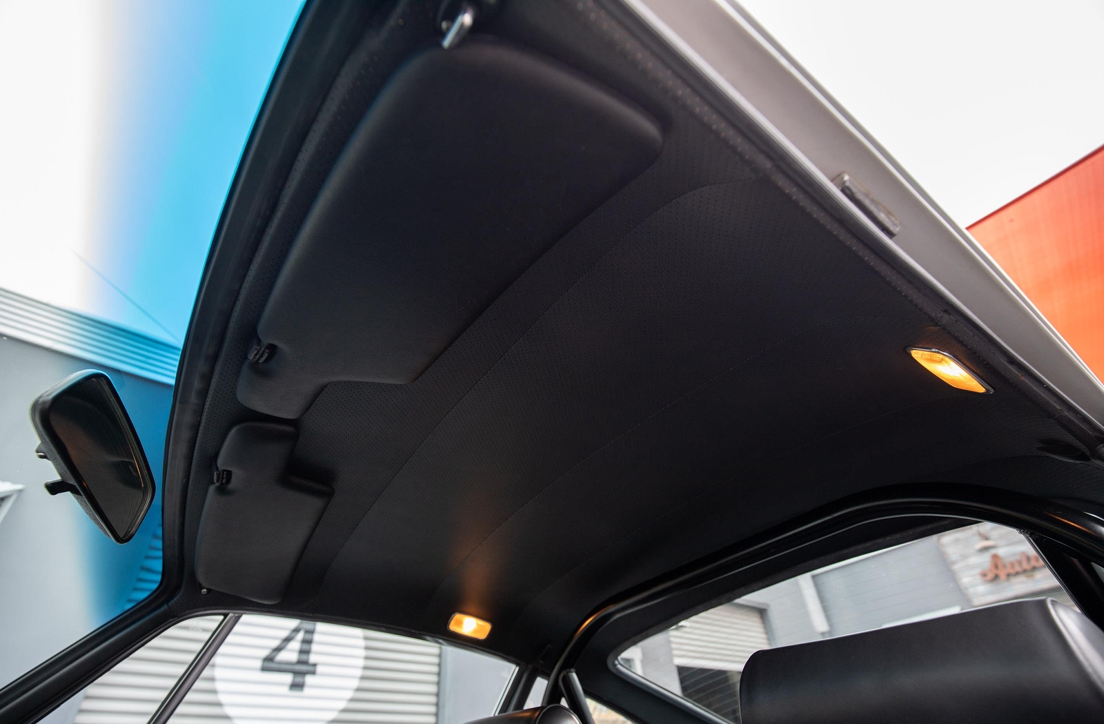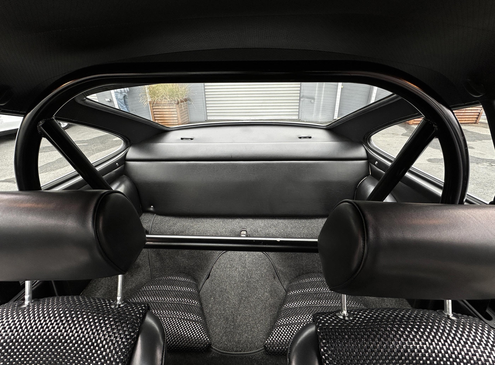 The interior is very tidy and smells of leather. The Vintage Seats were custom-done in high-grade leather with leather and suede basketweave inserts. There are no tears, rips, or other blemishes as well as no exit bolster wear. The rear seat bottom pads match (no rear seat backs). The ST-style roll bar bolts in and can easily be removed. The headliner has no tears, rips, or sagging issues. The sun visors are later after-market examples that fit nicely and are in good shape. The lightweight carpet has no major stains or heavy wear marks. The RS Lightweight door panels function nicely with upgraded chrome door pulls that are sturdy. The dash has no cracks or warping and fits nicely, including the speaker grill. All of the gauges work, including the clock and the interior lights. The Blaupunkt radio with a dash speaker works as well. The steering wheel is a vintage leather-wrapped Raid Racemark steering wheel that feels great and has a nice, aged look and feel.