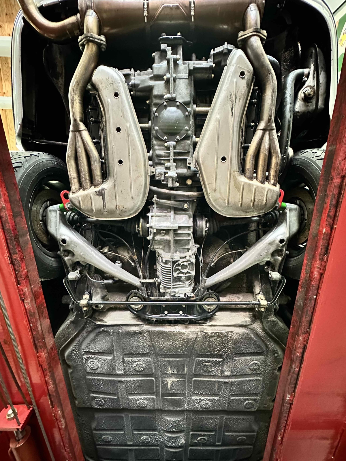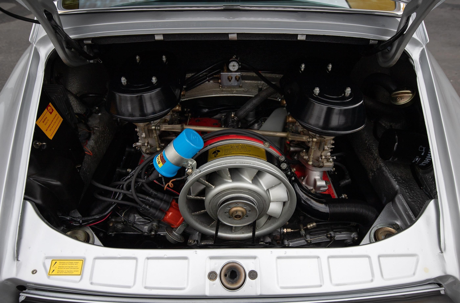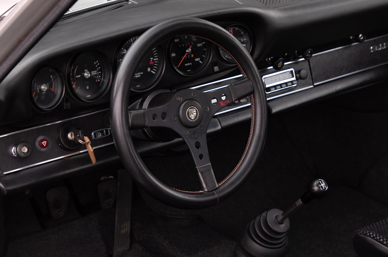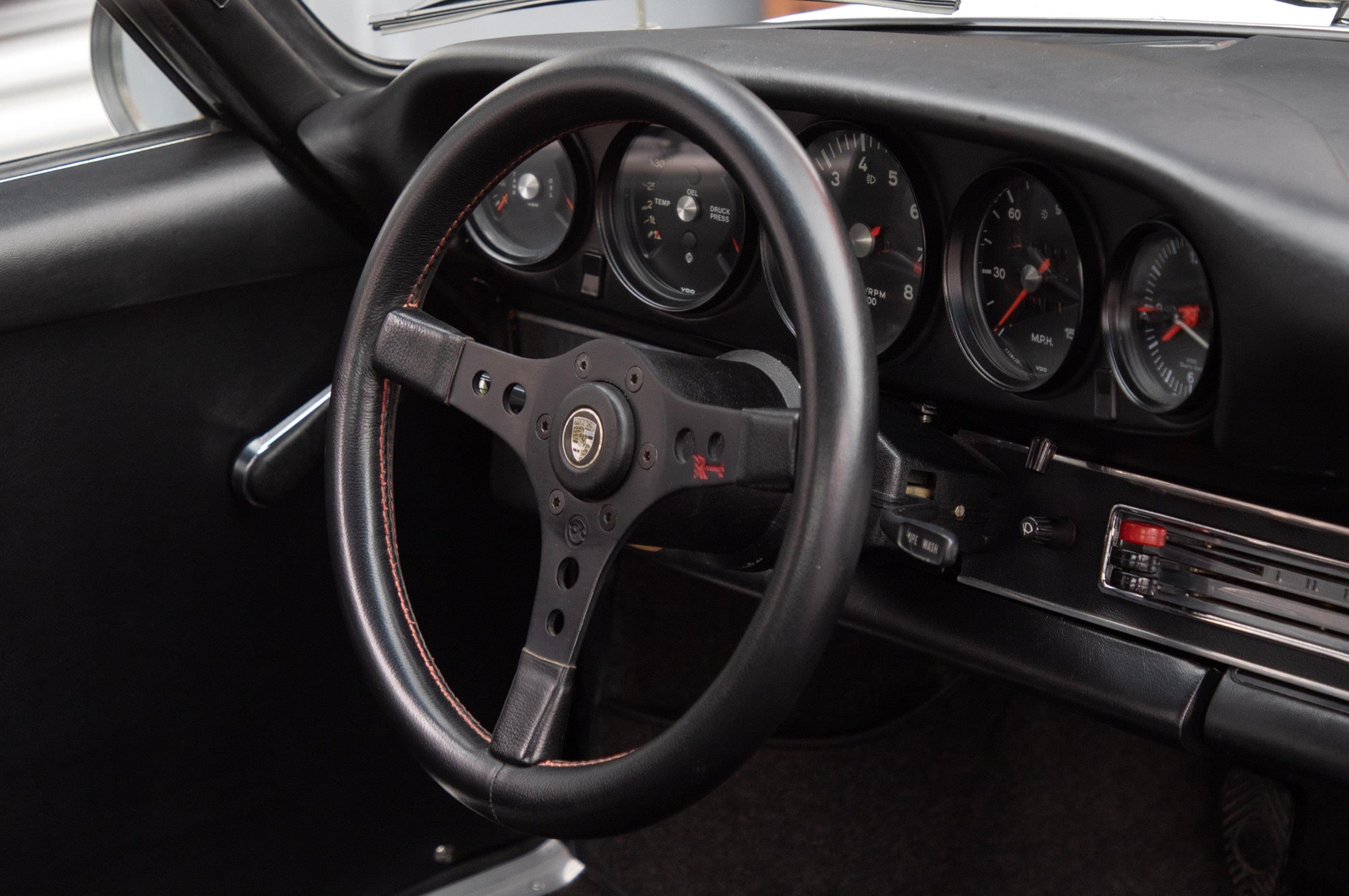 This 911 is a blast to drive and feels very much like a factory RS. It is light with a quick throttle response and a great mechanical sound. It starts easily and holds an even idle with help from the working hand throttle. Once at operating temperature, it pulls hard throughout the rev range with no hesitation. The transmission shifts smoothly through the gears with no grinding and the clutch engages properly with no slipping. The brakes take a bit more leg to activate, but they have tremendous stopping power over the stock brakes. There is a slight vibration on harder threshold braking, which might be a light warping of the front rotors or build up of pad material from lack of use. The handling is very light and direct. The car feels balanced and when driving in a spirited manner, it is confidence inspiring.