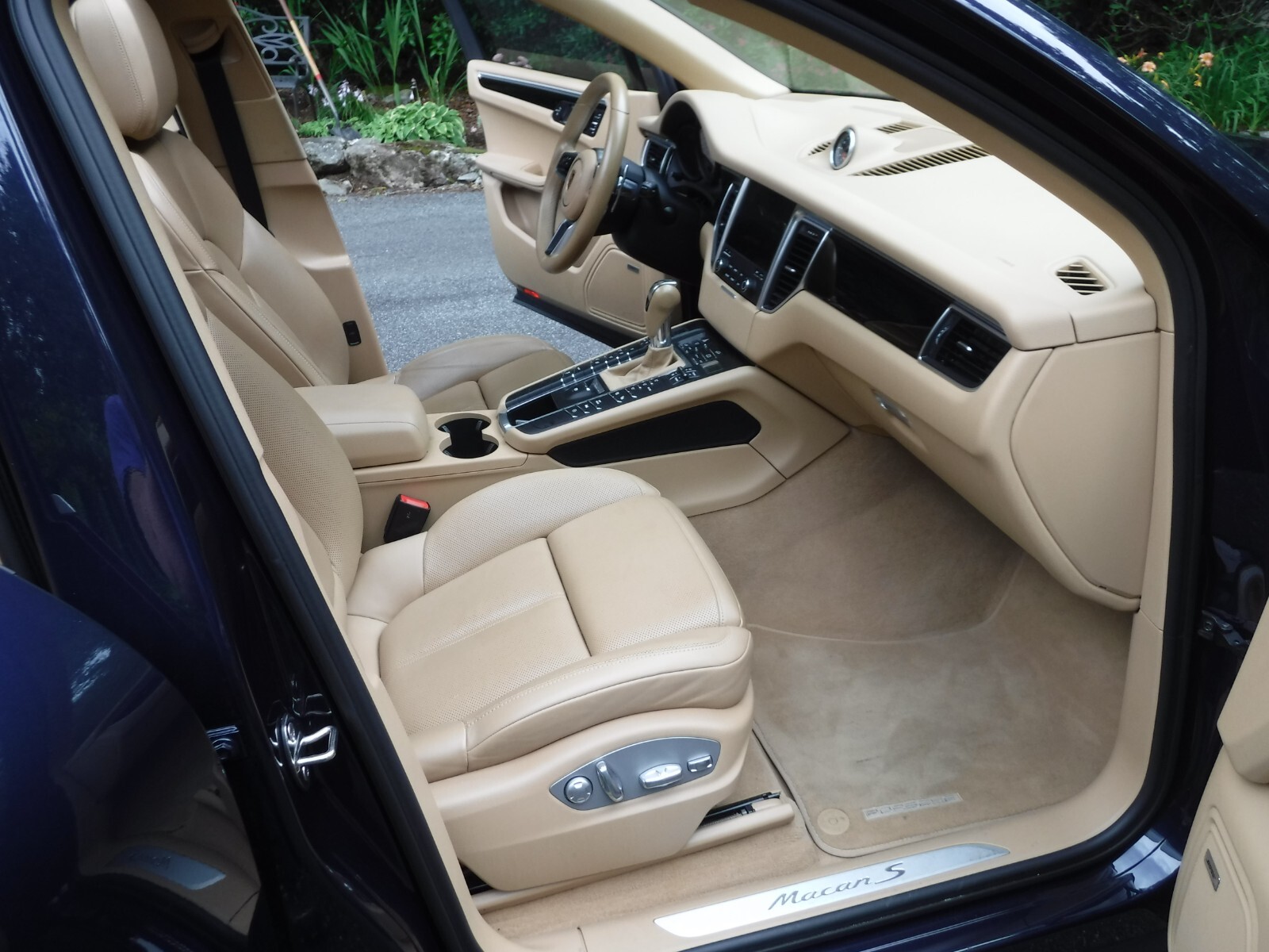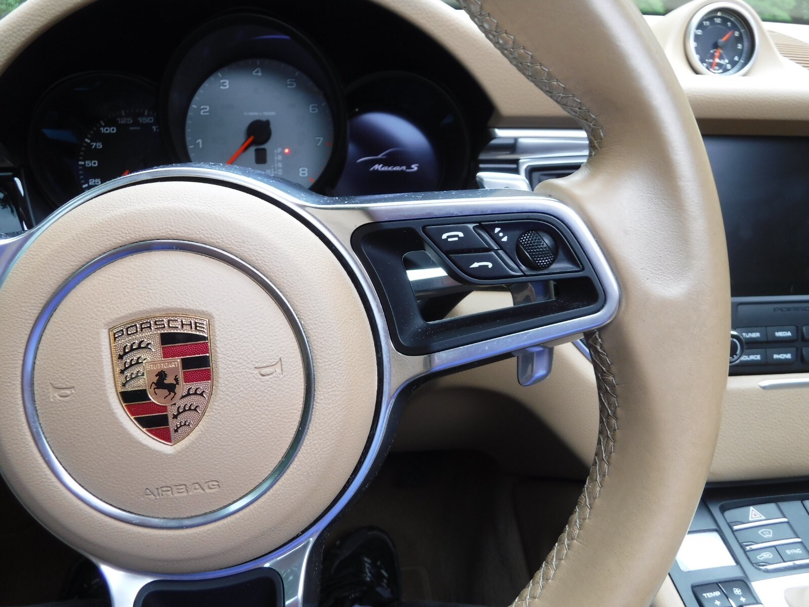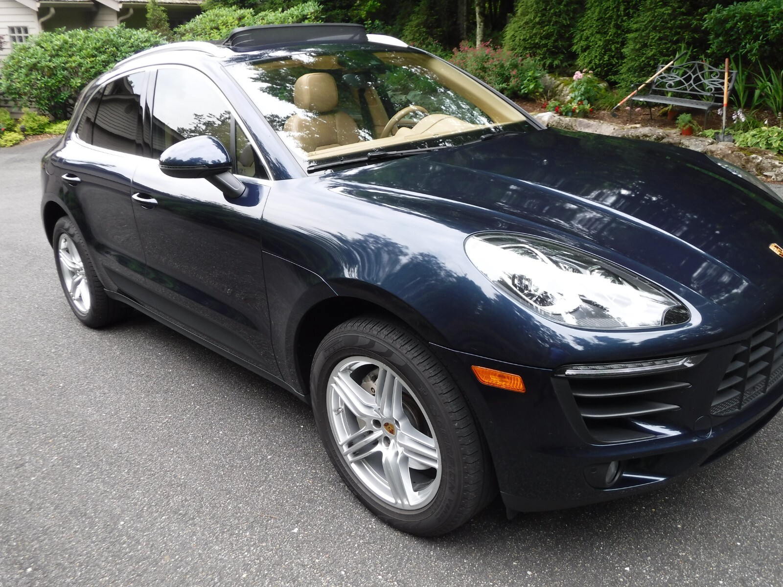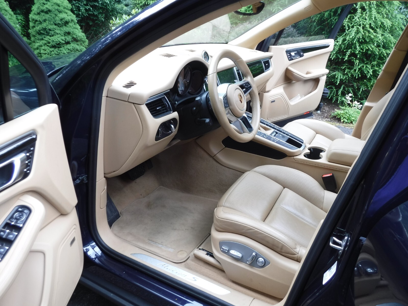 The 2017 Porsche Macan S has Heated Steering Wheel, Roof Rails in Aluminum finish, Wheel Center Caps with Colored Porsche Crest, Navigation Module for Porsche Communication Management (PCM), Lane Change Assist (LCA), Porsche Dynamic Light System (PDLS), Bose Surround Sound System, 19" Porsche Design Wheels, Porsche Doppelkupplung (PDK), Porsche Connect Plus, Night Blue Metallic color, Auto-Dimming Mirrors, Power seats (14-way) with Memory Package, Voice Control. This is a well maintained vehicle in excellent condition, powerful engine and great handling. The Michelin tires have less than 8,000 miles on them. This is a great vehicle with a great color combination.
