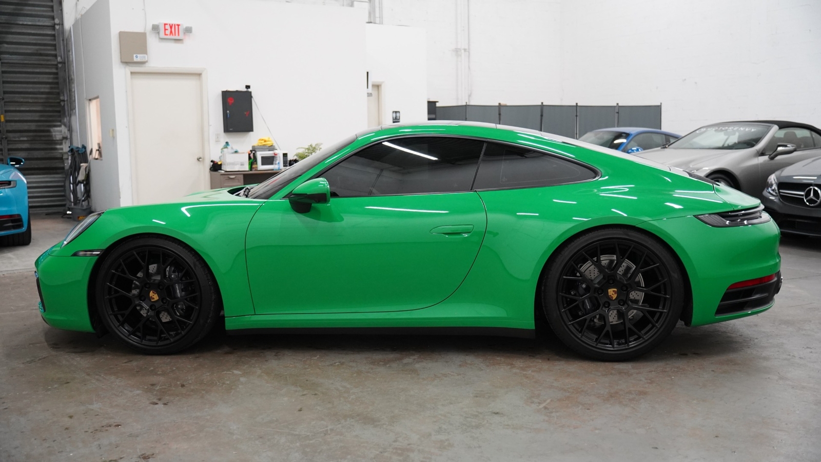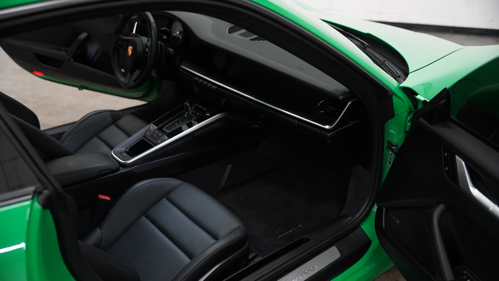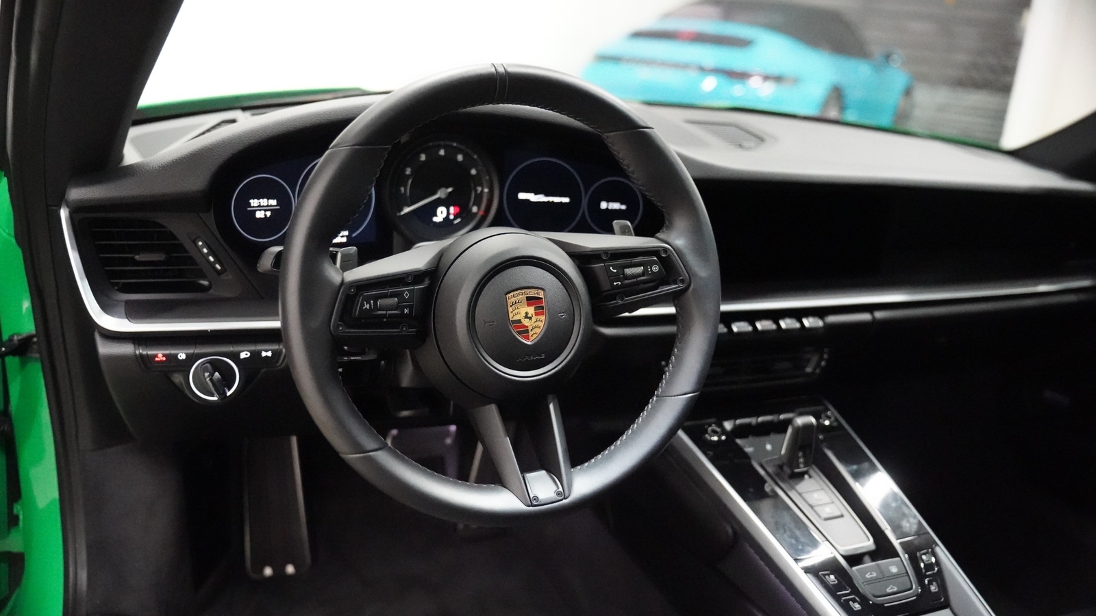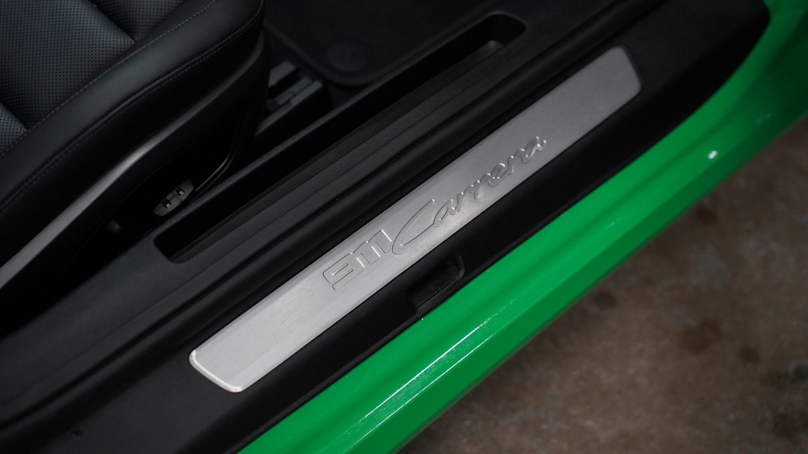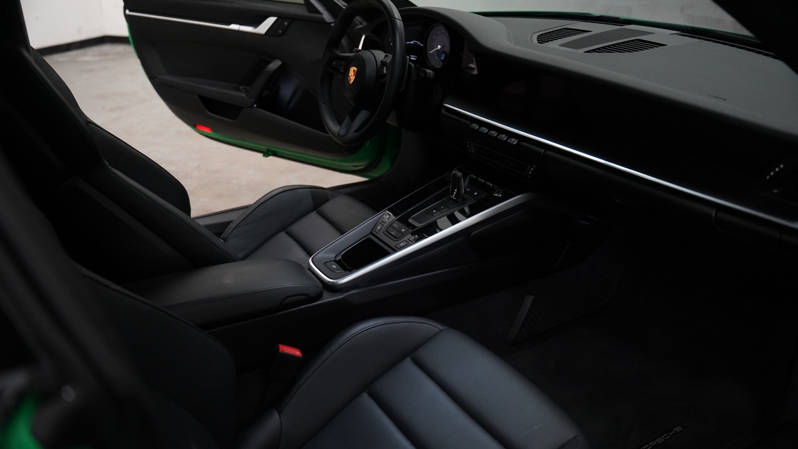Python Green 2022 Porsche 911 Carrera RWD 8-Speed Porsche Doppelkupplung (PDK) 3.0L H6 Turbocharged DOHC 24V LEV3-ULEV70 379hp 23.7 Gal. Extended Range Fuel Tank, 4-Way Sport Seats Plus, 8 Speakers, Adaptive suspension, Ambient Lighting, Automatic temperature control, BOSE Surround Sound System, Brake assist, Deletion of Model Designation on Rear, Electric Slide/Tilt Sunroof in Glass, Exclusive Design Taillights, Exterior Parking Camera Rear, Front dual zone A/C, Fully automatic headlights, GT Sport Steering Wheel, Heated front seats, Interior Trim Inlays in Leather, Lane Change Assist (LCA), Navigation system: Porsche Communication Management (PCM), PDK Gear Selector in Aluminum, Porsche Communication Management, Porsche Crest on Front Headrests, Porsche Dynamic Light System Plus (PDLS+), Porsche Logo on Rear in High Gloss Black, Power Folding Exterior Mirrors, Premium Package, Rain sensing wipers, Remote keyless entry, Sport Exhaust System, Steering wheel mounted audio controls, Storage Package, Surround View, Ventilated Front Seats, Wheels Painted in Satin Black, Wheels: 20" Front/21" Rear RS Spyder Design.
