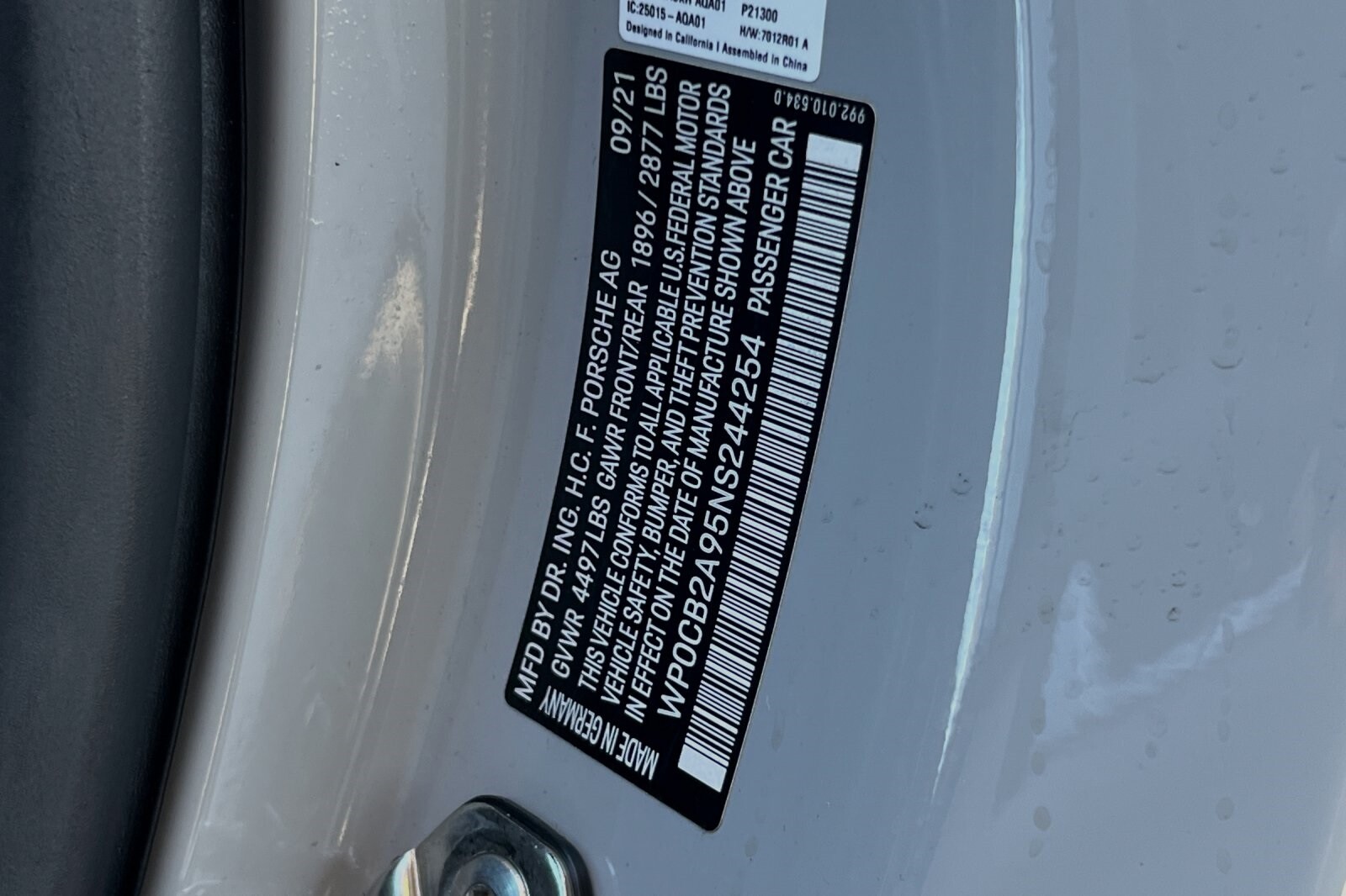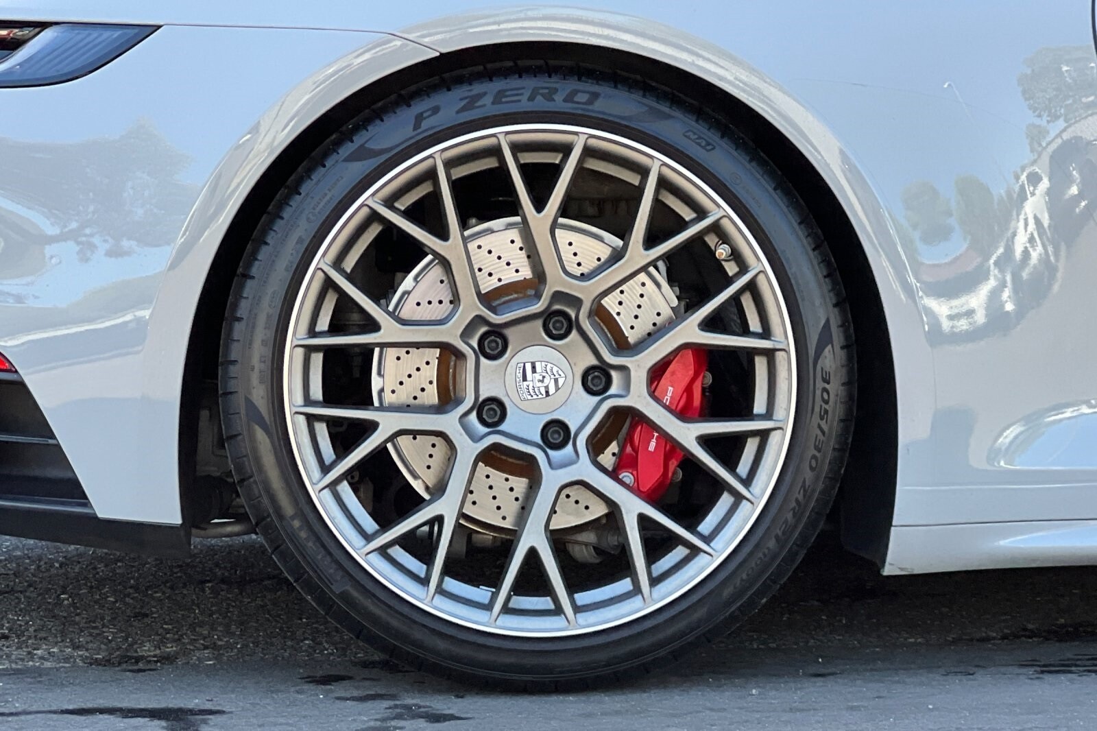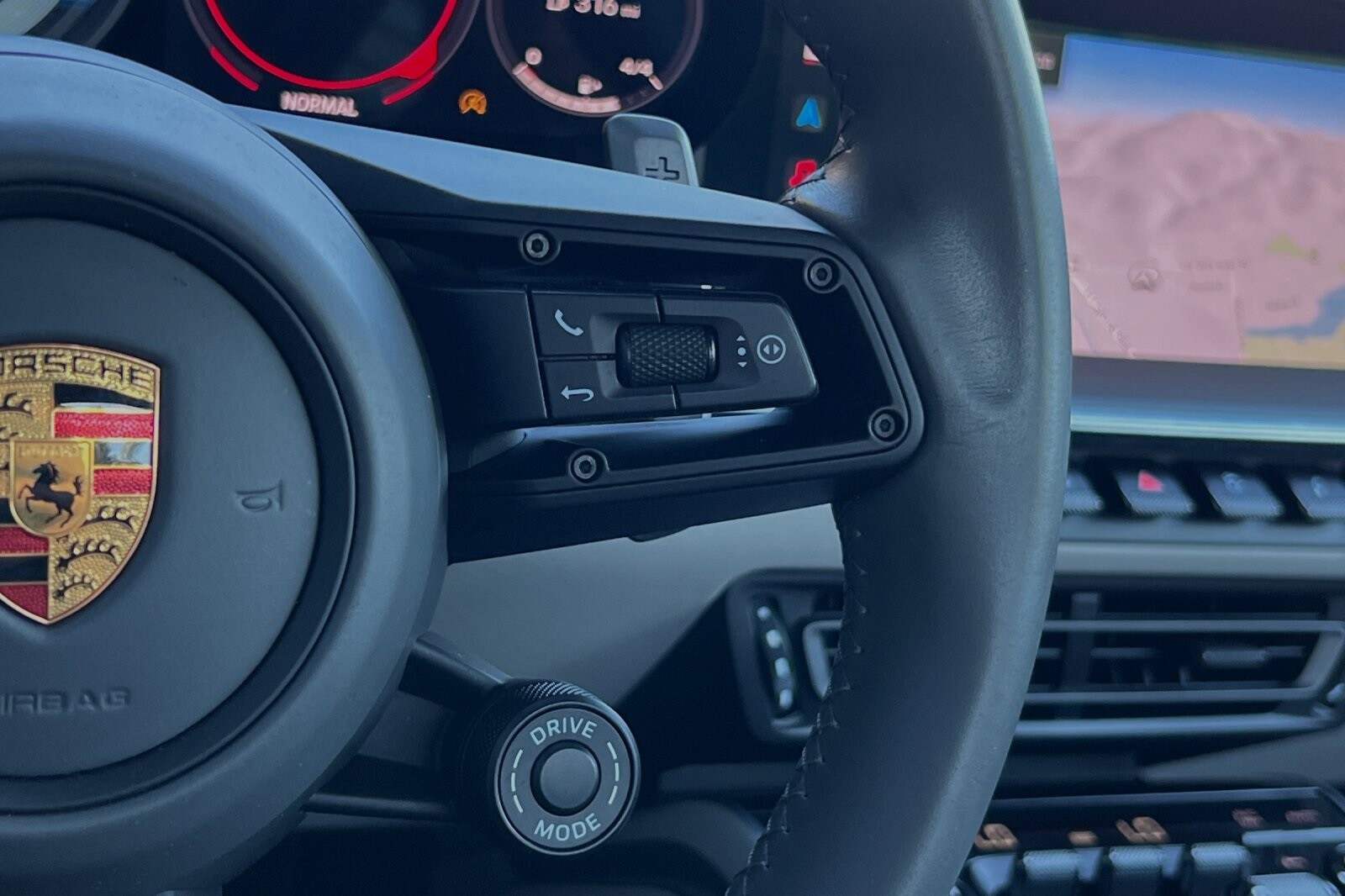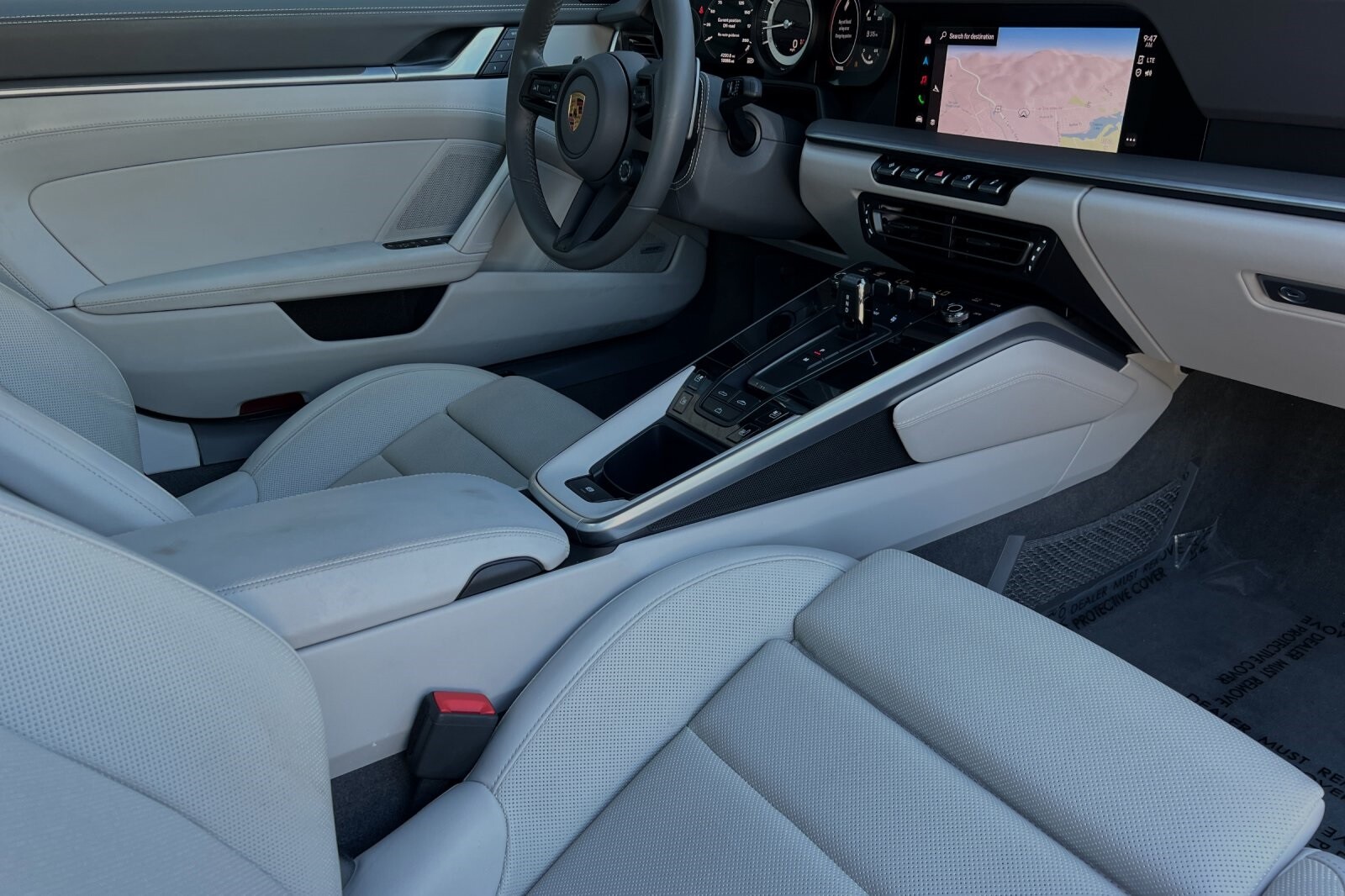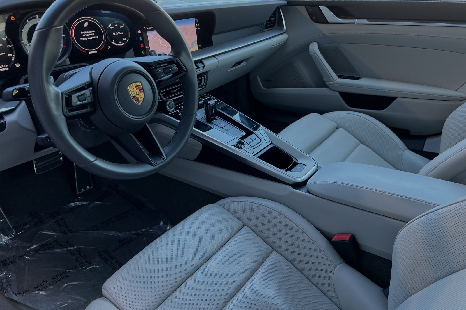 This Porsche San Luis Obispo 2022 Chalk Porsche 911 Carrera S is well equipped and includes these features and benefits: 14-Way Power Sport Seats w/Memory Package, Premium Package (Ambient Lighting, BOSE Surround Sound System, Lane Change Assist (LCA), Porsche Dynamic Light System Plus (PDLS+), Power Folding Exterior Mirrors, Surround View, and Ventilated Front Seats), Sport Chrono Package, Sport Package (PASM Sport Suspension (Lowered 10mm) and Sport Exhaust System w/Tailpipes in Silver), SportDesign Package, Storage Package, Porsche Approved Certified Pre-Owned Certified, 23.7 Gal. Extended Range Fuel Tank, Adaptive Cruise Control, Exclusive Design Fuel Cap, Exclusive Design Taillights, Power Steering Plus, Seat Belts in Bordeaux Red, Sport Exhaust System, Wheels: 20 Front/21 Rear RS Spyder Design, 4-Wheel Disc Brakes, 8 Speakers, ABS brakes, Adaptive suspension, Air Conditioning, Alloy wheels, Auto-dimming door mirrors, Auto-dimming Rear-View mirror, Automatic temperature control, Brake assist, Bumpers: body-color, Convertible roof lining, Convertible roof wind blocker, Delay-off headlights, Driver door bin, Driver vanity mirror, Dual front impact airbags, Dual front side impact airbags, Electronic Stability Control, Exterior Parking Camera Rear, Four wheel independent suspension, Front anti-roll bar, Front Bucket Seats, Front Center Armrest, Front dual zone A/C, Front reading lights, Fully automatic headlights, Garage door transmitter: HomeLink, Glass rear window, Heated door mirrors, Heated front seats, Illuminated entry, Integrated roll-over protection, Low tire pressure warning, Navigation system: Porsche Communication Management (PCM), Occupant sensing airbag, Outside temperature display, Overhead airbag, Overhead console, Passenger door bin, Passenger vanity mirror, Porsche Communication Management, Power convertible roof, Power door mirrors, Power driver seat, Power passenger seat, Power steering, Power windows, Radio data system, Rain sensing wipers, Rear anti-roll bar, Rear fog lights, Rear window defroster, Remote keyless entry, Security system, Speed control, Split folding rear seat, Spoiler, Sport steering wheel, Steering wheel mounted audio controls, Tachometer, Telescoping steering wheel, Tilt steering wheel, Traction control, Trip computer, and Variably intermittent wipers.