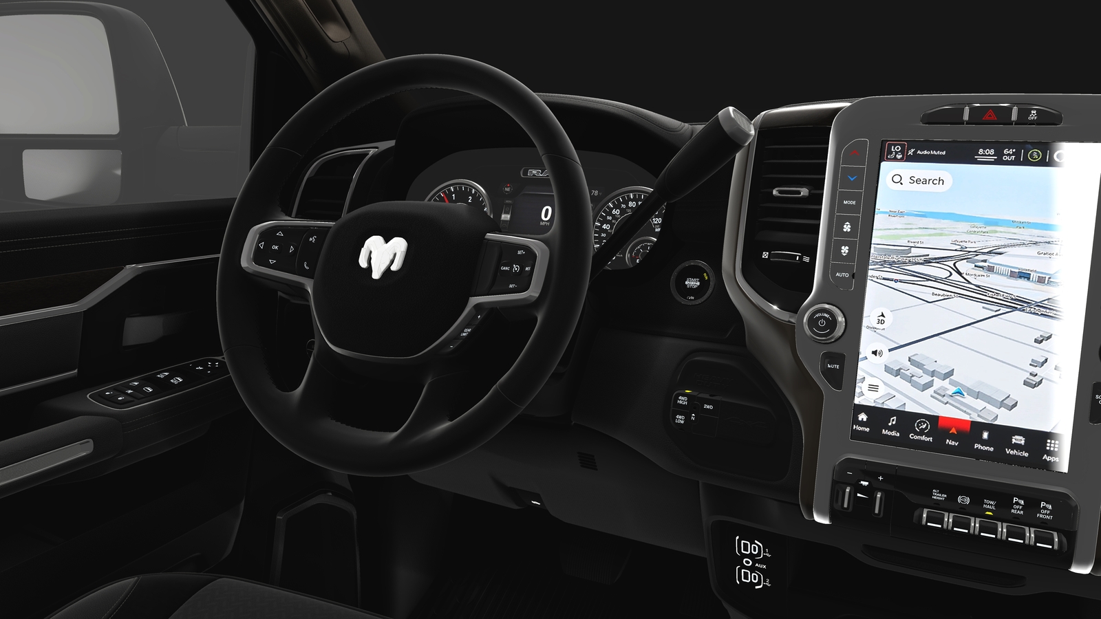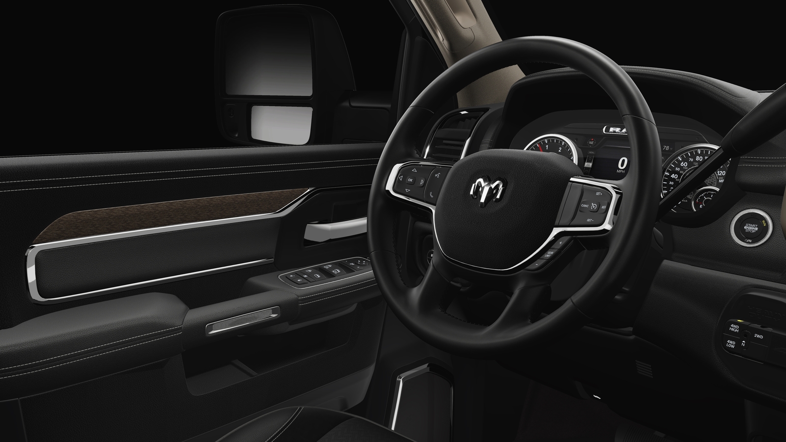 Laramie Level 1 Equipment Group: Google Android Auto; Rear Window Defroster; Blind Spot and Cross Path Detection; Rain Sensitive Windshield Wipers; LED Tail Lamps; Power Adjustable Pedals with Memory; Rear Power Sliding Window; Integrated Voice Command with Bluetooth®; Connectivity - US/Canada; 12'' Touchscreen Display; Auto Power-Folding Mirrors; GPS Navigation; GPS Antenna Input; Exterior Mirrors with Heating Element; Auto Dimming Exterior Mirrors; SiriusXM with 360L; Connected Travel and Traffic Services; Front LED Fog Lamps; LED Reflector Headlamps; Mirror Running Lights; Foam Bottle Insert (door Trim Panel); Alexa Built-In; Apple CarPlay; Power-Adjustable Convex Aux Mirrors; 18'' X 8'' Polished Aluminum Wheels; Off-Road Information Pages; Forward and Reverse Utility Lights; Selectable Tire Fill Alert; Trailer Tow Pages; Disassociated Touchscreen Display; HD Radio; Uconnect 5 Navigation with 12.0'' Display Radio; Power Heat Fold Memory Telescopic Mirrors; Exterior Mirrors with Supplemental Signals; Exterior Mirrors Courtesy Lamps; Remote Tailgate Release; Auto High Beam Headlamp Control; Chrome Exterior Mirrors; Center Hub; Exterior Mirrors with Memory; Power Adjust Mirrors; 2nd Row in Floor Storage Bins; Power Telescoping Mirrors; Auto Dimming Exterior Passenger Mirror; Auto Adjust in Reverse Exterior Mirrors; ParkSense Front/rear Park Assist System. Quick Order Package 21H Laramie. Chrome Bumper Package: Bright Rear Bumper; Bright Front Bumper. Auto Level Rear Air Suspension. Power Sunroof. MOPAR Spray in Bedliner. Blind Spot and Cross Path Detection. Leather Trimmed Bucket Seats. LT275/70R18E OWL On/off Road Tires. MOPAR Front and Rear Rubber Floor Mats. Clearance Lamps. **Equipment listed is based on original vehicle build and subject to change. Please confirm the accuracy of the included equipment by calling the dealer prior to purchase.**