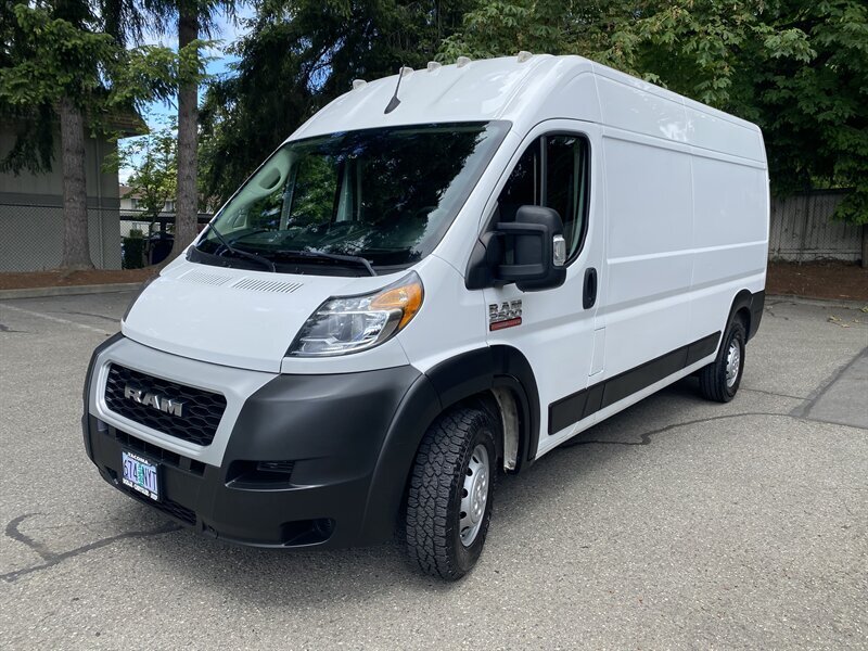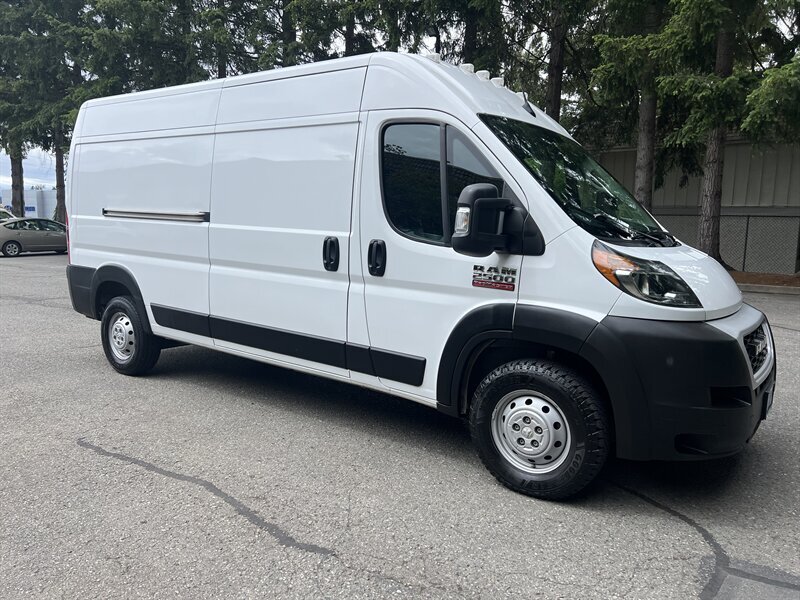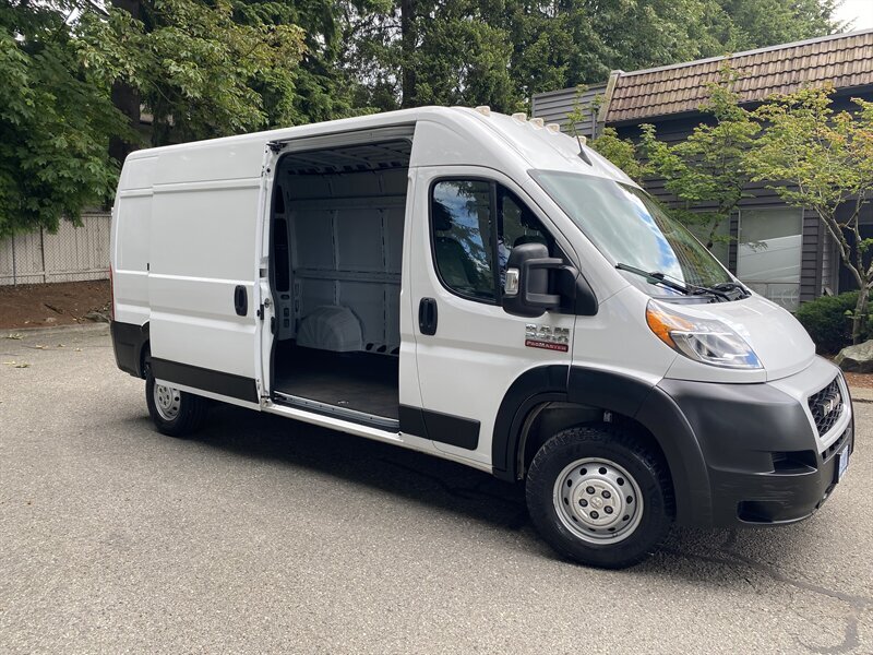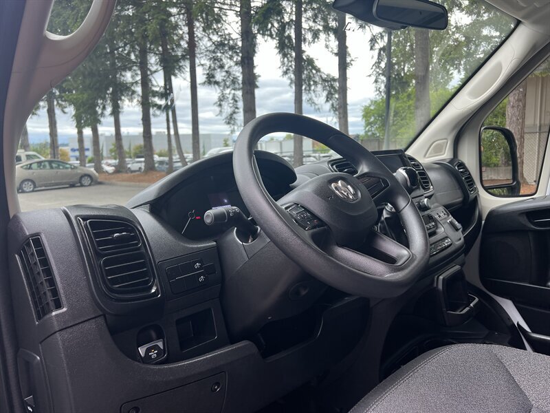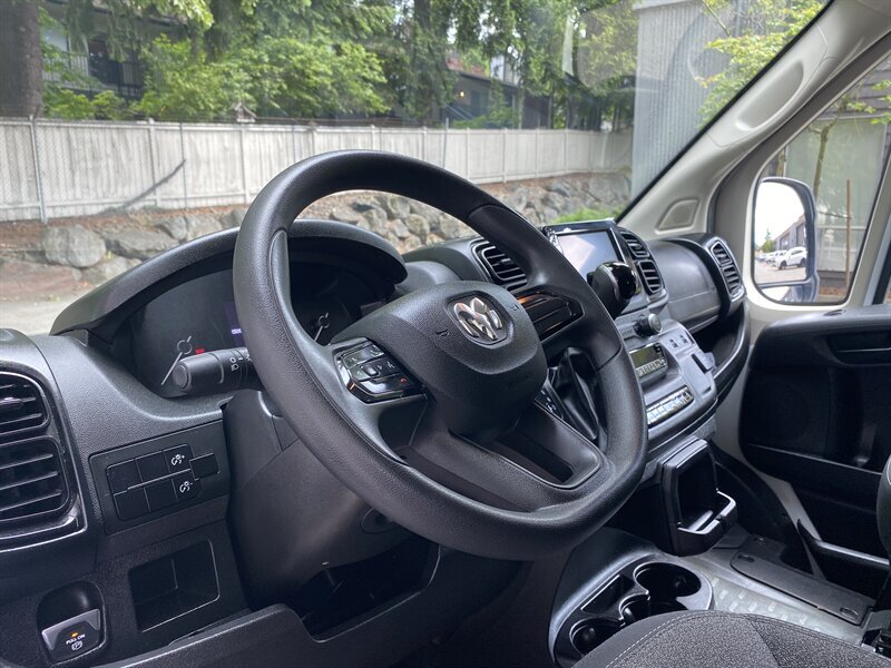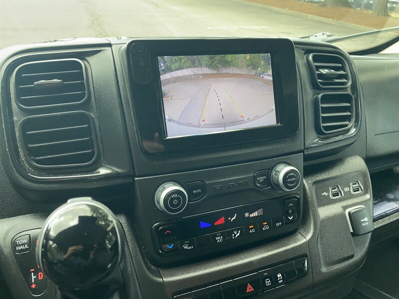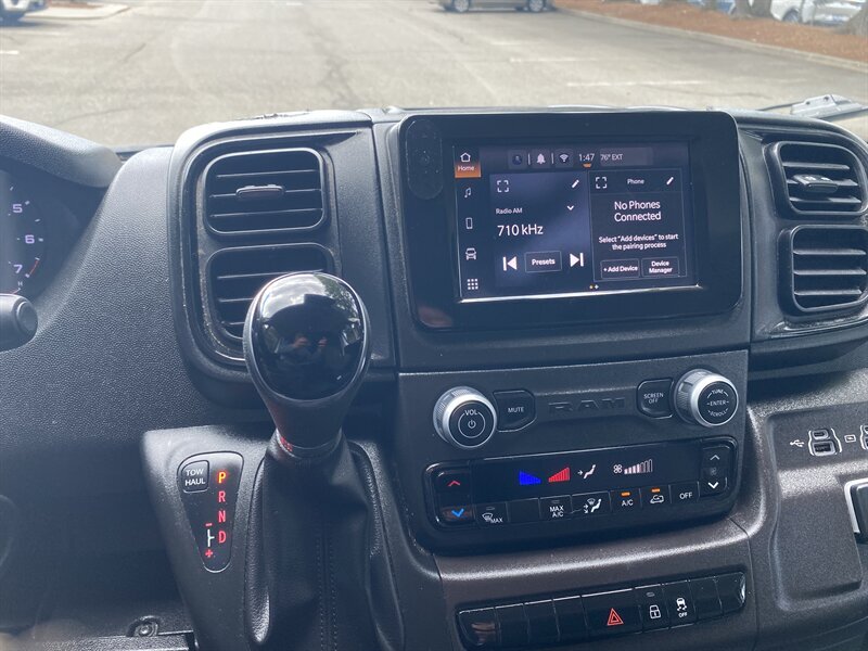 INSTALLED FEATURES: Air filtration, Front air conditioning, Front air conditioning zones: single, Airbag deactivation: occupant sensing passenger, Front airbags: dual, Side airbags: front, Side curtain airbags: front, Antenna type: diversity / mast, Auxiliary audio input: Bluetooth / USB / jack, Radio: AM/FM / touch screen display / voice operated, Satellite radio: SiriusXM, Total speakers: 4, ABS: 4-wheel, Braking assist, Electronic brakeforce distribution, Electronic parking brake: auto off, Emergency braking preparation, Front brake diameter: 11.8, Front brake type: ventilated disc, Front brake width: 1.26, Power brakes, Rear brake diameter: 11.0, Rear brake type: ventilated disc, Rear brake width: 0.87, Armrests: drivers seat, Floor material: rubber/vinyl, Shift knob trim: urethane, Steering wheel trim: urethane, Assist handle: front, Cargo area light, Cupholders: front, Multi-function remote: keyless entry / trunk release, One-touch windows: 2, Power outlet(s): 12V front / USB front, Power steering, Push-button start, Reading lights: front, Rearview mirror: manual day/night, Steering wheel: telescopic, Steering wheel mounted controls: audio / phone, Storage: cargo tie-down anchors and hooks / door pockets / in dash, Sun visors, Axle ratio: 4.08, Alternator: 180 amps, Auxiliary oil cooler, Battery rating: 800 CCA, Battery saver, Emissions: 50 state, Body side moldings: black, Bumper detail: rear step, Door handle color: black, Front bumper color: black, Grille color: black / chrome surround, Mirror color: black, Rear bumper color: black, Rear trunk/liftgate: barn, Side door type: passenger-side manual sliding, Window trim: black, Connected in-car apps: Google POIs / Google search / app marketplace integration, Infotainment: Uconnect, Infotainment screen size: 7 in., Smartphone integration: Android Auto / Apple CarPlay, Clock, Digital odometer, External temperature display, Fuel economy display: MPG / range, Gauge: tachometer, Instrument cluster screen size: 3.5 in., Trip odometer, Warnings and reminders: low battery / low fuel level / low oil level / maintenance due, Clearance lights, Headlights: auto delay off / halogen, Side mirror adjustments: manual / manual folding, Side mirrors: integrated turn signals, OEM roof height: high, Automatic emergency braking: front / front pedestrian, Camera system: rearview, Crumple zones: front, Driver attention alert system, Pre-collision warning system: audible warning / pedestrian detection / visual warning, Rearview monitor: in dash, Traffic sign recognition, Emergency locking retractors: front, Front seatbelts: 3-point, Seatbelt force limiters: front, Seatbelt pretensioners: front, Seatbelt warning sensor: front, Driver seat manual adjustments: reclining / 4, Front headrests: adjustable / 2, Front seat type: bucket, Passenger seat manual adjustments: reclining / 4, Upholstery: cloth, Anti-theft system: vehicle immobilizer, Power door locks: auto-locking, Crosswind stabilization, Hill holder control, Roll stability control, Stability control, Traction control, Trailer stability control, Steering ratio: 18.9, Turns lock-to-lock: 3.9, Front shock type: gas, Front spring type: coil, Front stabilizer bar, Front struts: MacPherson, Front suspension classification: independent, Front suspension type: lower control arms, Rear shock type: gas, Rear spring type: leaf, Rear suspension classification: solid axle, Rear suspension type: multi-leaf, Driver assistance app: roadside assistance, Hands-free phone call integration: voice operated, Wi-Fi: hotspot, Wireless data link: Bluetooth, Spare tire mount location: underbody, Spare tire size: full-size, Spare wheel type: steel, Tire Pressure Monitoring System, Tire type: all season, Wheel covers: partial, Wheels: steel, Auxiliary transmission fluid cooler, Front wipers: variable intermittent, Power windows, Solar-tinted glass