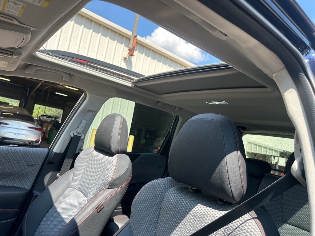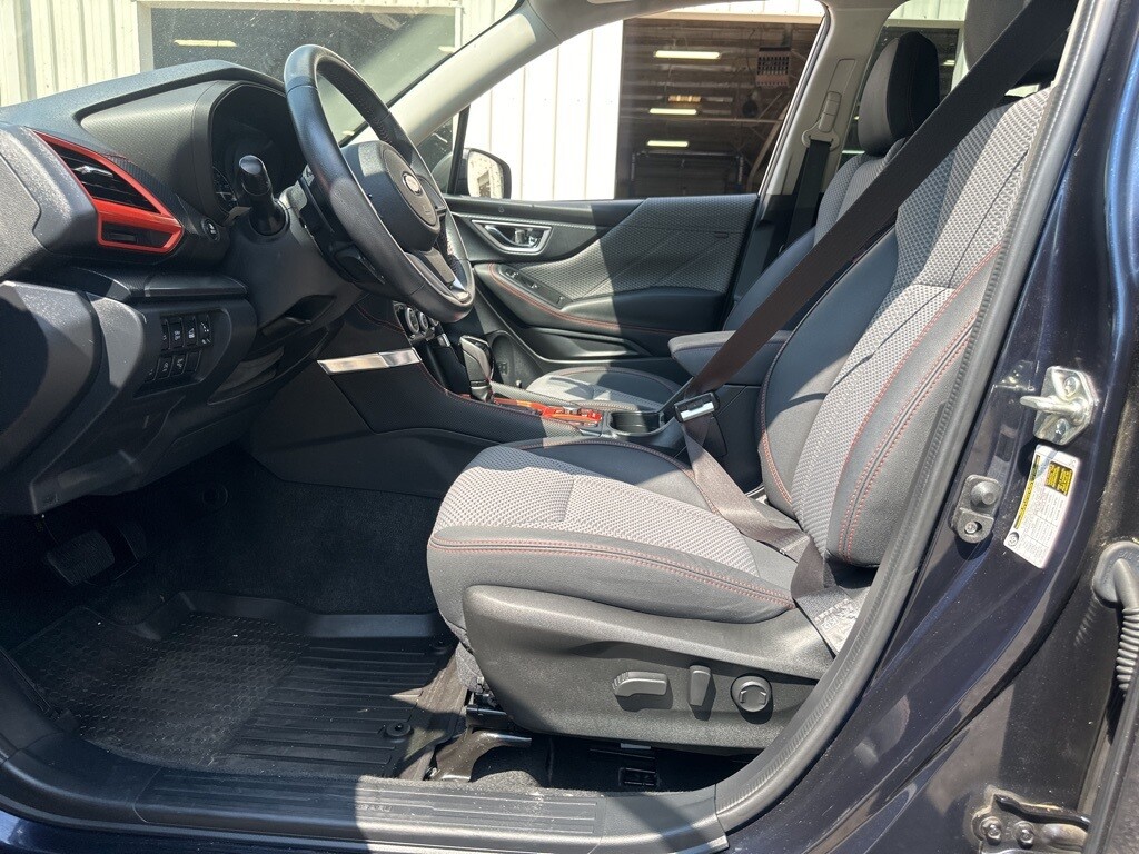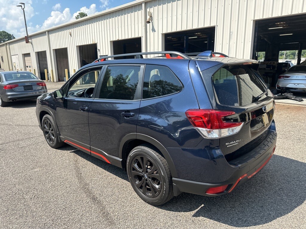 Certification Program Details: Southern Certified CARFAX One-Owner. Clean CARFAX. Certified. Dark Blue 2021 Subaru Forester Sport AWD Lineartronic CVT 2.5L 4-Cylinder DOHC 16V VVT AWD/4WD, BACKUP CAMERA, BLUETOOTH, LEATHER SEATS, MOONROOF, PANORAMIC SUNROOF, POWER PACKAGE, KEYLESS ENTRY, APPLE ANDROID CARPLAY, PUSH BUTTON START, 4-Wheel Disc Brakes, 6 Speakers, ABS brakes, Air Conditioning, AM/FM radio: SiriusXM, Auto High-beam Headlights, Brake assist, Bumpers: body-color, CD player, Driver door bin, Driver vanity mirror, Dual front impact airbags, Dual front side impact airbags, Electronic Stability Control, Exterior Parking Camera Rear, Four wheel independent suspension, Front Bucket Seats, Front Center Armrest, Front fog lights, Fully automatic headlights, Heated door mirrors, Knee airbag, Low tire pressure warning, Outside temperature display, Overhead airbag, Overhead console, Paddle-Shift Control Switches, Panic alarm, Passenger door bin, Power door mirrors, Power driver seat, Power moonroof: Panoramic, Power steering, Power windows, Radio data system, Radio: Subaru Starlink 6.5 Multimedia Plus System, Rear anti-roll bar, Rear seat center armrest, Rear window defroster, Remote keyless entry, Roof rack: rails only, Security system, Speed-sensing steering, Split folding rear seat, Sport Cloth Upholstery, Steering wheel mounted audio controls, Tachometer, Tilt steering wheel, Traction control, Wheels: 18 x 7.0J Black Finish Aluminum Alloy.