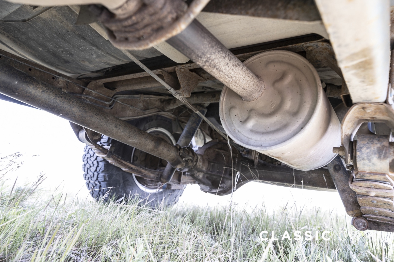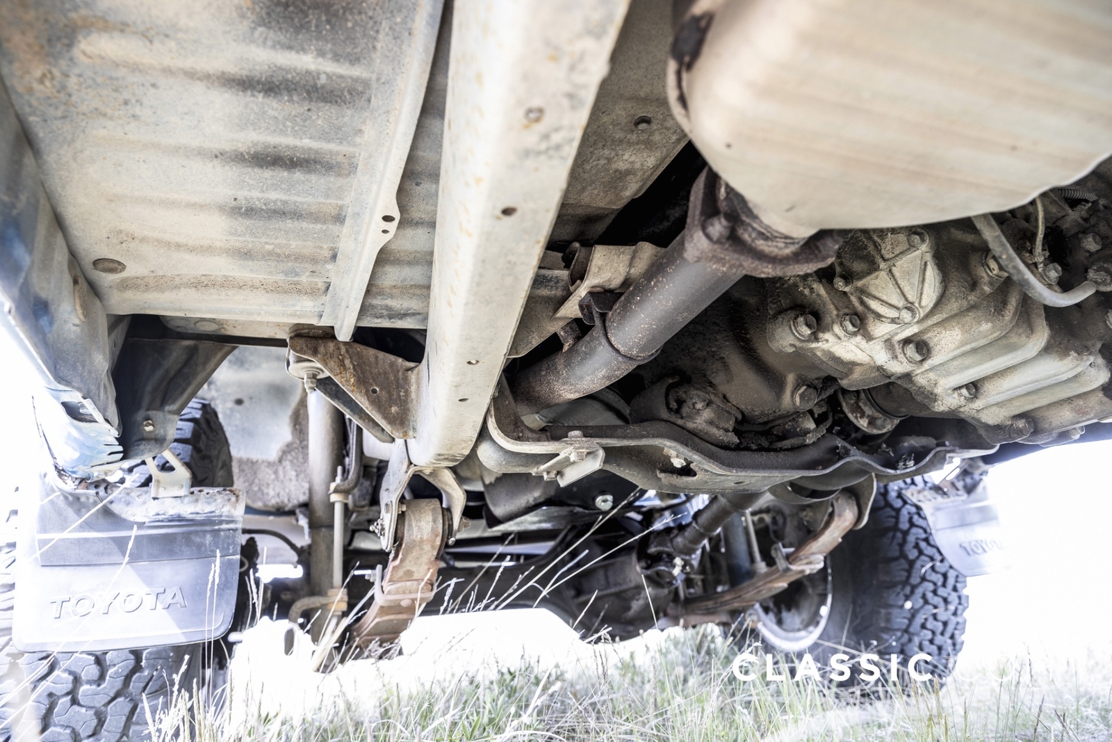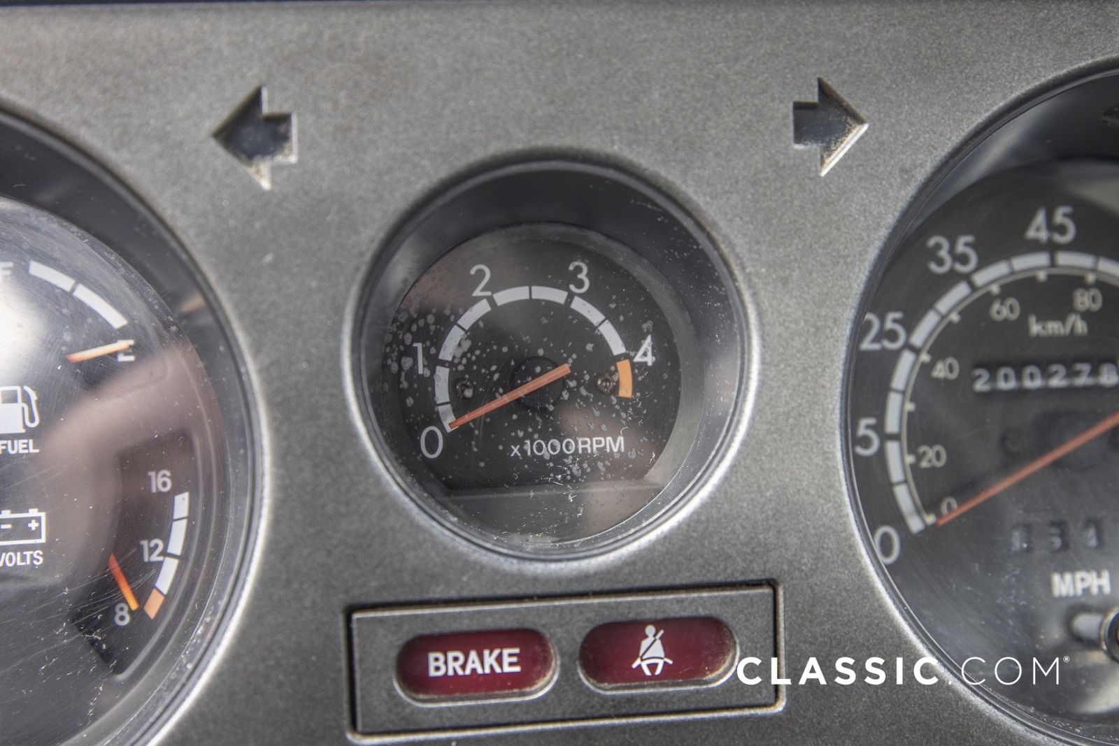 Features include part-time 4WD, rear defroster, folding rear seat, and air conditioning. It remains unmodified with the exception of an Alpine stereo unit and a set of aftermarket wheels.