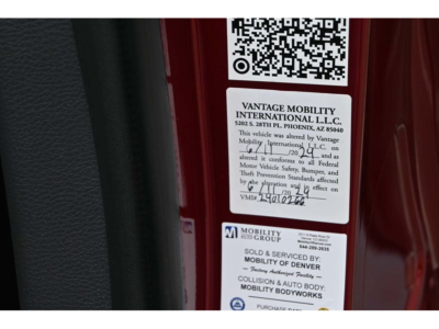 Door Opening Height: 56.1" and width: 29.3"IN-STOCK: *Qualifies for a $1,000 Toyota Mobility Rebate. New 2024 Toyota Sienna XLE+ VMI NorthStar Hybrid AWD Side Entry rampvan for sale. Up to 120-month finance available. Brand new VMI conversion on an all new 2024 Sienna chassis with full manufacturers warranty. The industry's first wheelchair accessible AWD minivan has arrived! VMI's exclusive features beat out the competition: most useable room, highest ground clearance, interchangeable removable front seats, Durafloor plus rubberized flooring, 1,000lb capacity ramp, galvanneal coating undercarriage protection, and new for Vantage Mobility in 2024: 2-remote system for greater control and reliability. Toyota Sienna features: bold new styling, tons of technology, Hybrid system with up to 36mpg Fuel Efficiency (go 500 miles on a tank of gas), and Electric on-demand AWD system. XLE + Model, Red Exterior, Gray leather Interior, Toyota Safety Sense 2.0: Pre-Collision Sys w/ Pedestrian Detection, Full-Speed Range Dynamic Radar Cruise Control, Lane Departure Alert w/ Steering Assist, Lane Tracing Assist, Automatic High Beams, Road Sign Assist STAR Safety System LATCH-Lower Anchor & Tether for Children Blind Spot Monitor w/ RCTA 5-Door Smart Key w/ Push Button Start Safety & Remote Connect w/ 1-Year Trial, Audio Plus - 9-in Touchscreen, 8 Spkrs, HandsFree Bluetooth phone/Music, USB Media Port, 6 USB Charge Ports, SiriusXM w/ 3-Month All Access Trial, Android Auto & Apple CarPlay Compatible Four Zone Auto Climate Control SofTex-Trimmed Seats, Heated & Power Front Seats, 2nd-Row Captain's Chairs w/ Super Long-Slide Feature, 60/40 One-Motion-Stow w/Split & Stow 3rd Row Seat Rear Seat Reminder, 2.5L 4-Cylinder Engine 245 Combined Net Horsepower Electronic Continuous Var. Tran. (ECVT) 17-in Alloy Wheels Electronic On-Demand All-Wheel Drive, LED Headlights with Auto on/off feature Hands-Free Dual Power Sliding SideDoors Power Liftgate Frt & Rear Parking Assist w/ Auto Brake Power Tilt / Slide Moonroof. This vehicle is currently available for sale at Mobility of Denver, located at: 2311 S Platte River Drive, Denver CO 80223. We don't charge a Dealer Handling Fee and are now your mobility one-stop-shop. Just give us a call as we offer it all: sales, service, parts, and rentals. Open M-F 9am - 6pm. Sat by appt. Call 303-351-7904.
