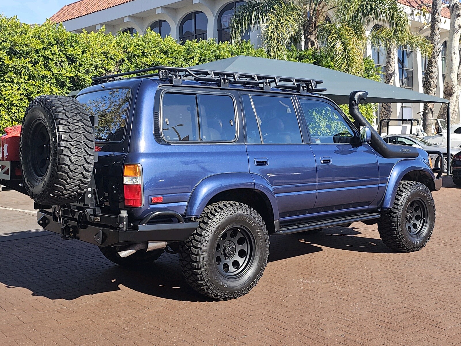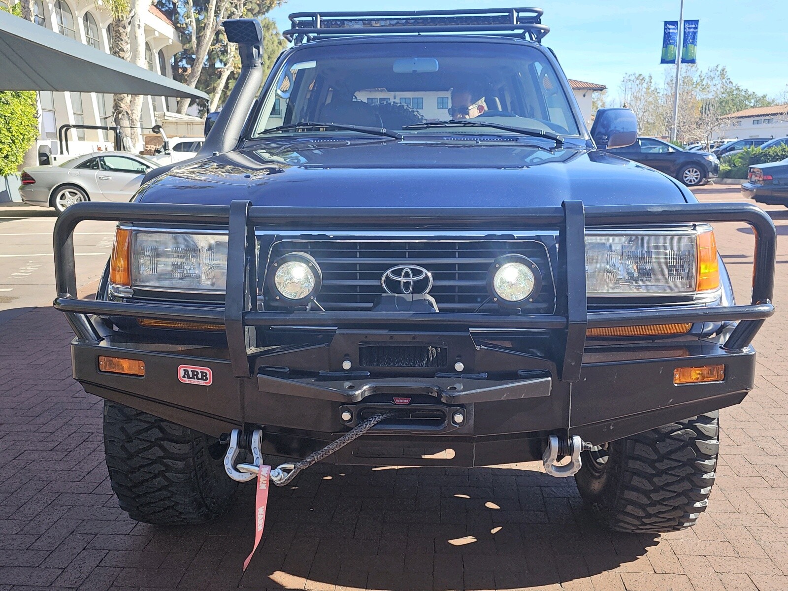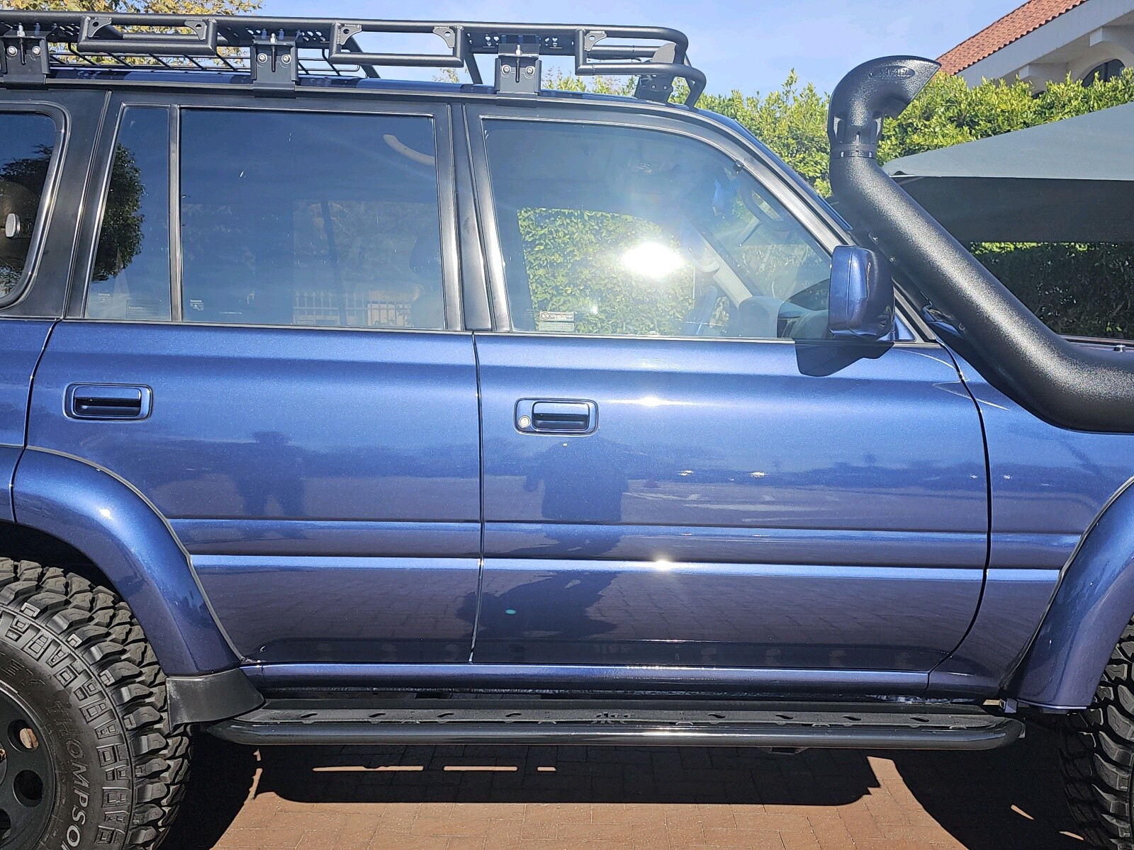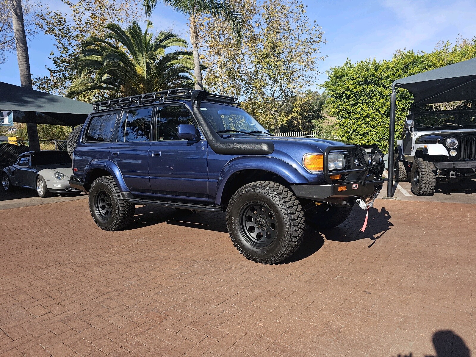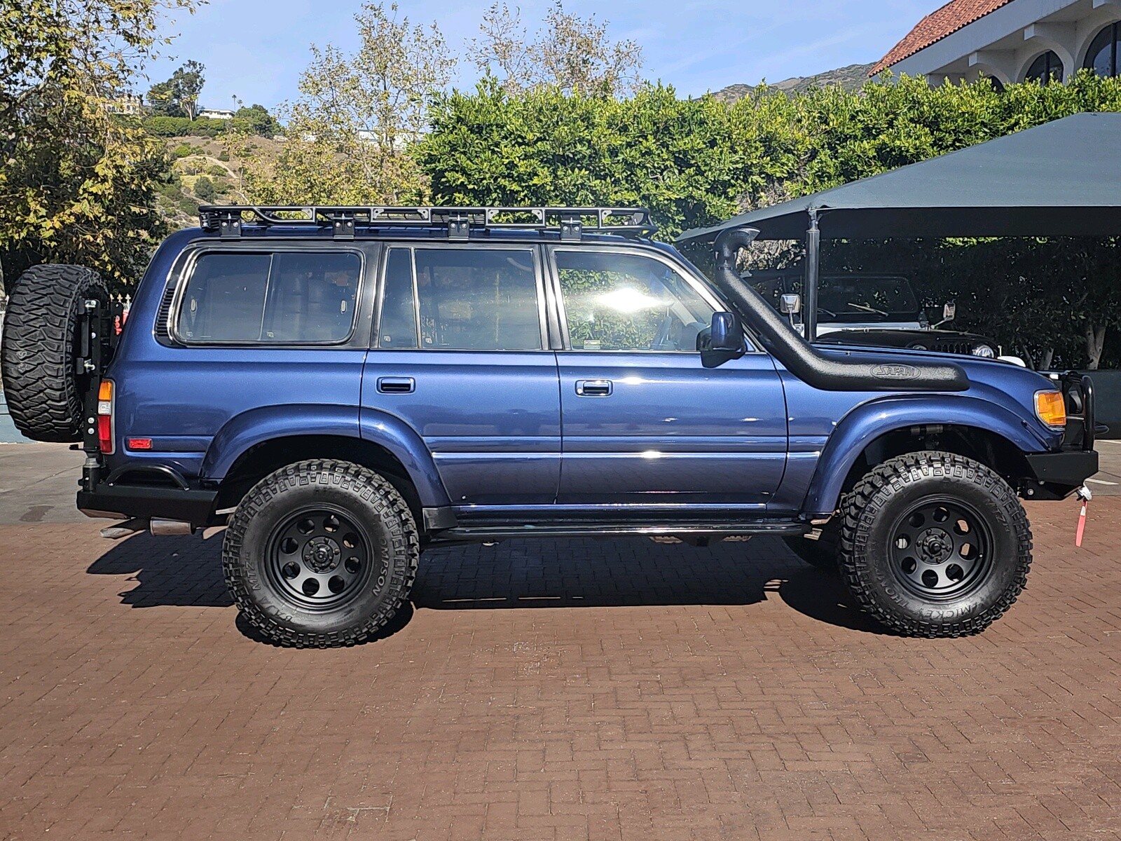 1997 Toyota Landcruiser 4x4 dark metallic blue exterior Excellent condition completely striped and given a $9000 paint all glass, weatherstripping is perfect, the vehicle has been never damaged and each body panel carries the vin number and toyota logo as seen in the over 100 photos up graded wheels, tires and suspension, 35.MT ARB front and rear , side steps ew winch, roof rack, led.lighting, very straight exterior w one chip. Grey leather, full working power and sunroof, cold ac, interior is perfect as seen in pics. Motornhas been rebuilt.and it's all new as.well as the transmission. It drives Excellent..Seller's Notes