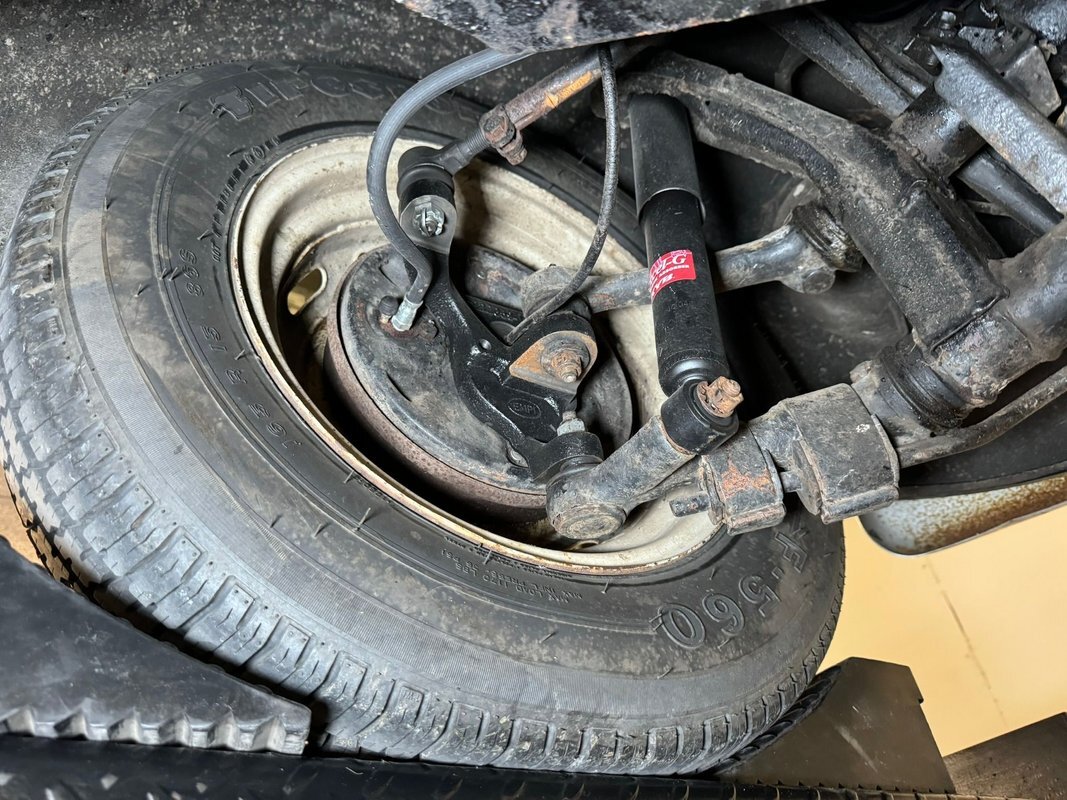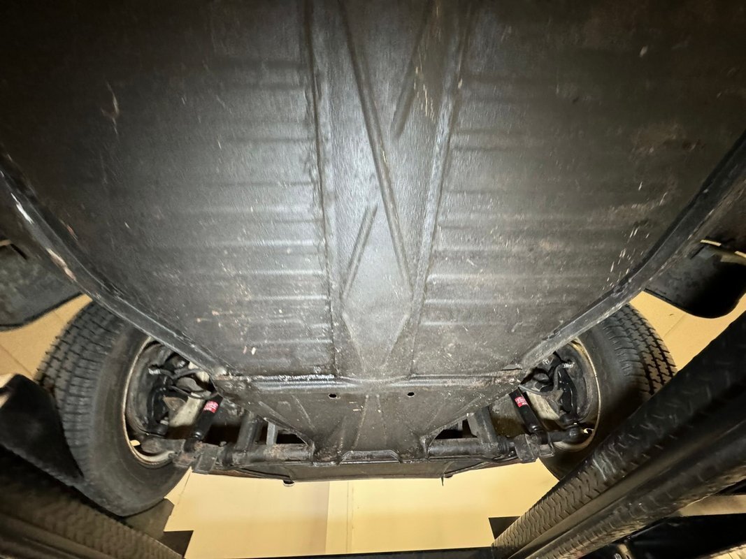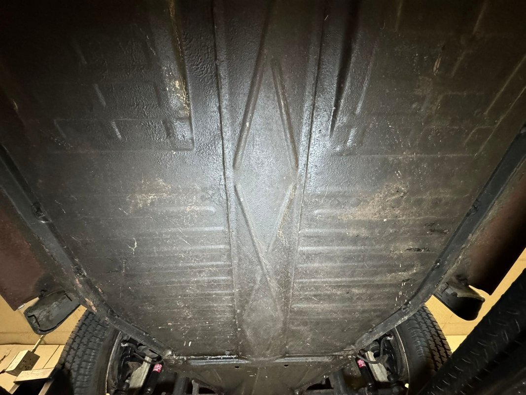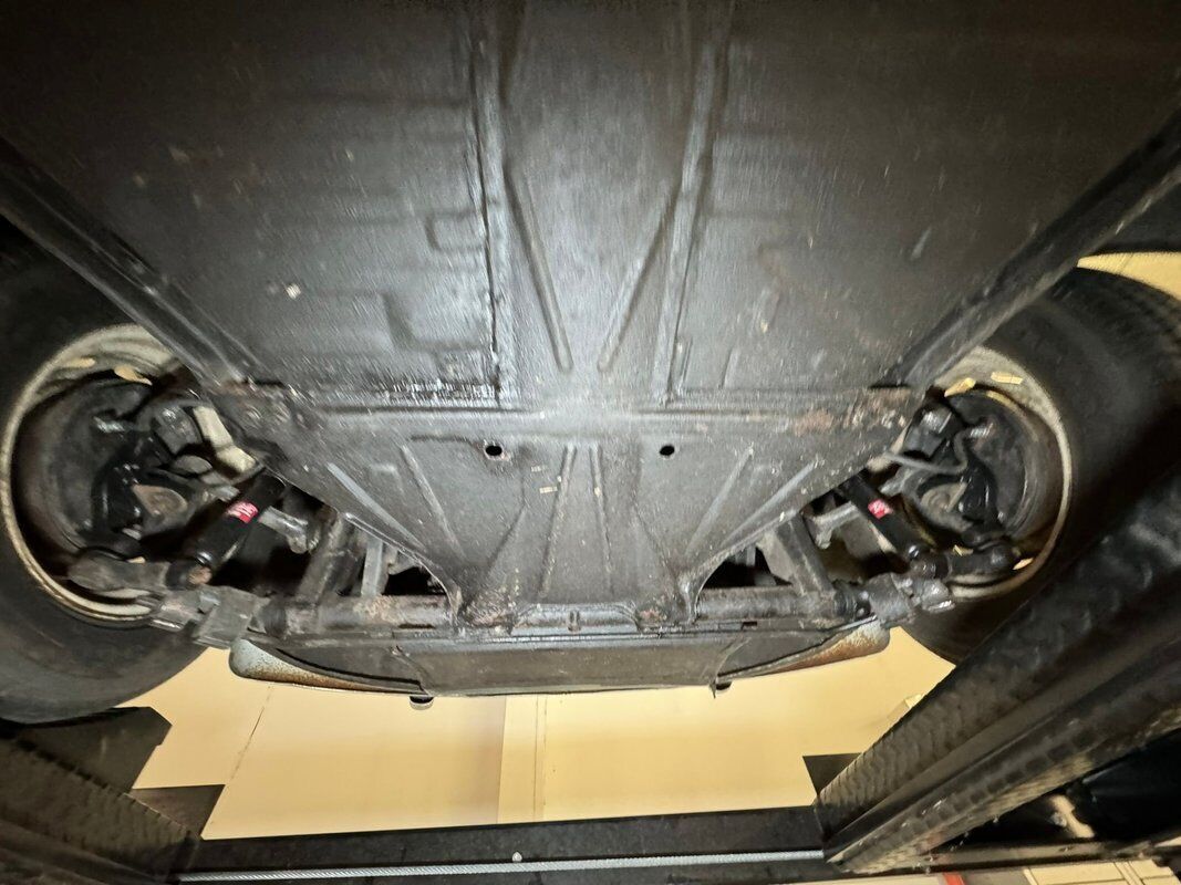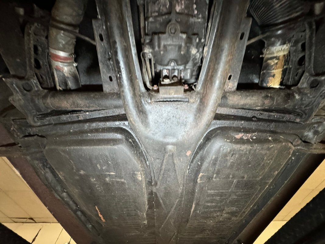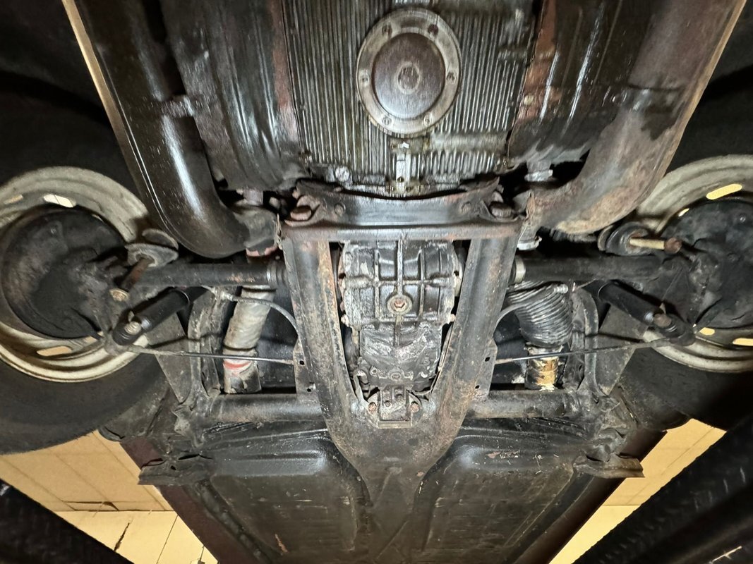 Surface rust covers the single muffler of the dual exhaust, which is pretty typical. The remainder of the underside is unremarkable with surface rust appearing only occasionally. The belly pan and inner wheel components all look good. Transverse torsion bar suspension resides on the independent front suspension while torsion bar, trailing arms, and swing axles live on the rear independent suspension.