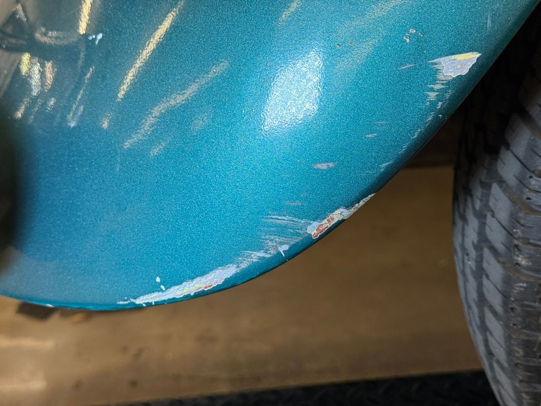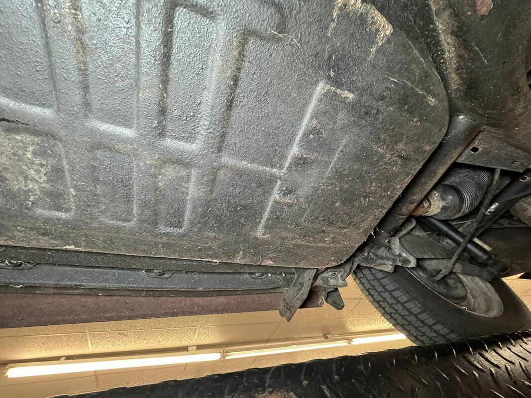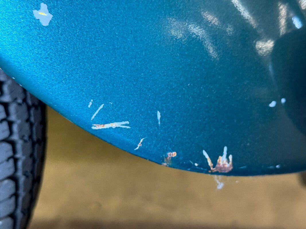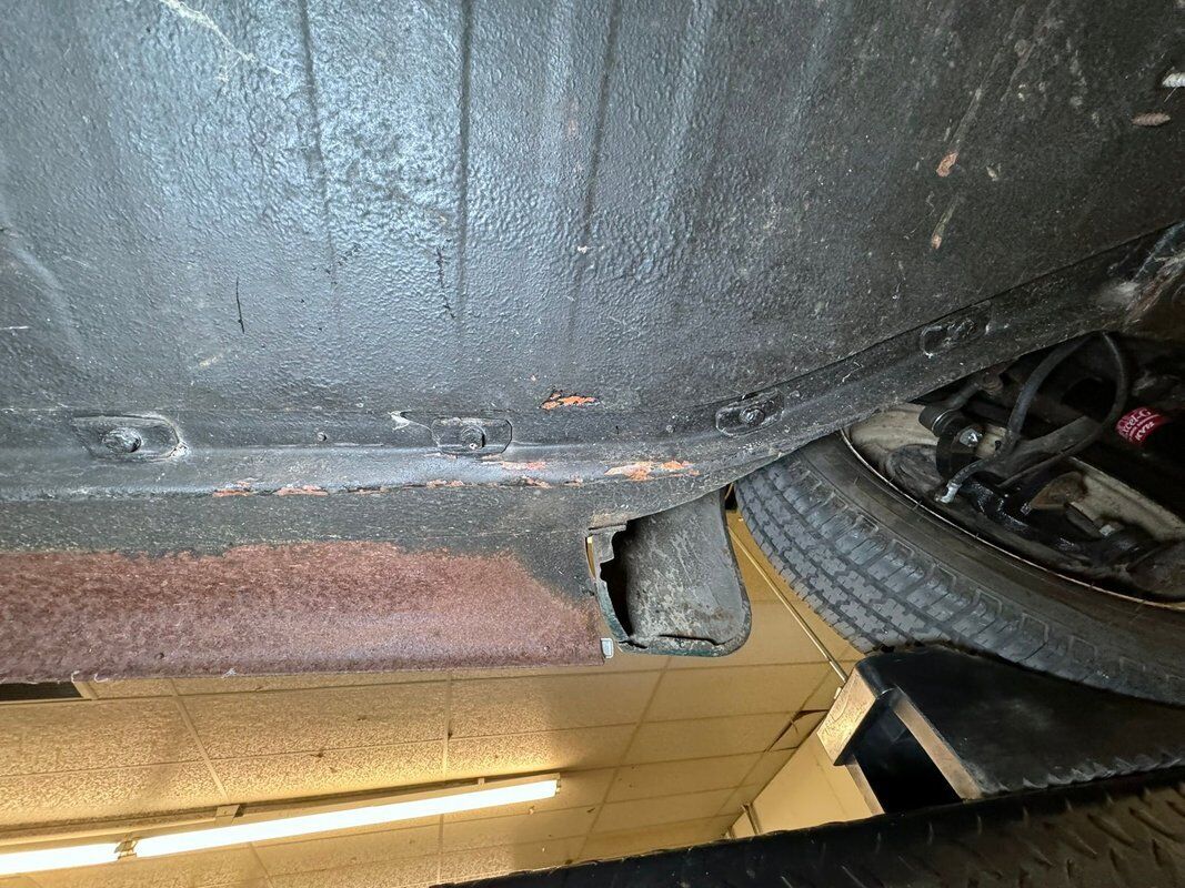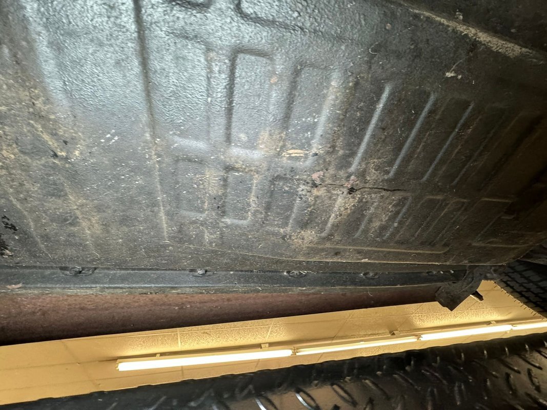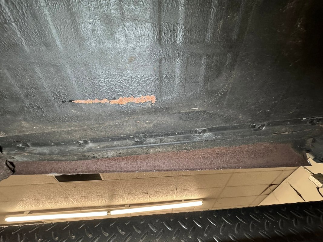 Surface rust covers the single muffler of the dual exhaust, which is pretty typical. The remainder of the underside is unremarkable with surface rust appearing only occasionally. The belly pan and inner wheel components all look good. Transverse torsion bar suspension resides on the independent front suspension while torsion bar, trailing arms, and swing axles live on the rear independent suspension.