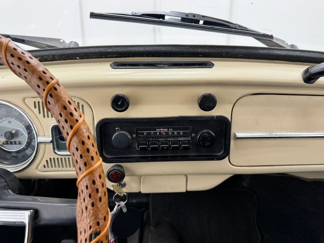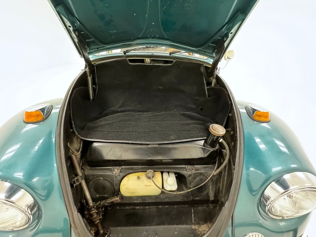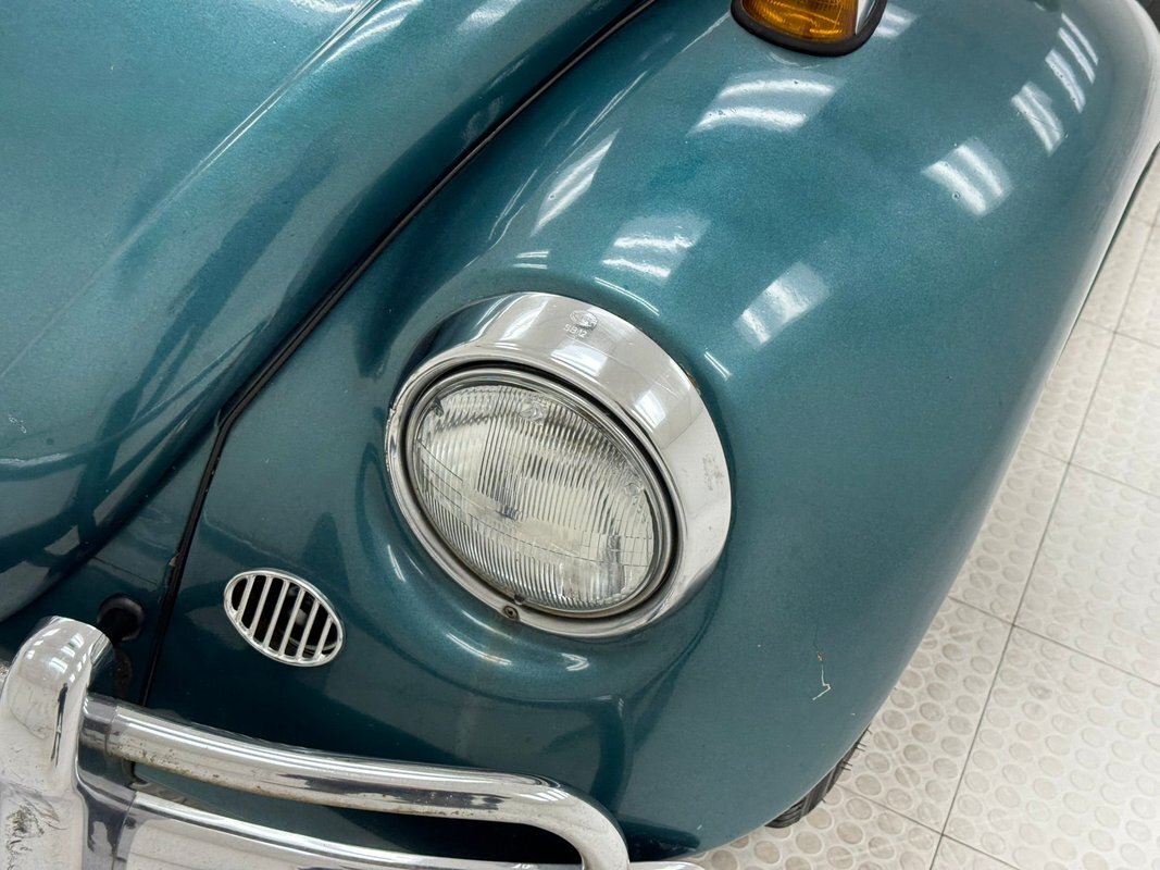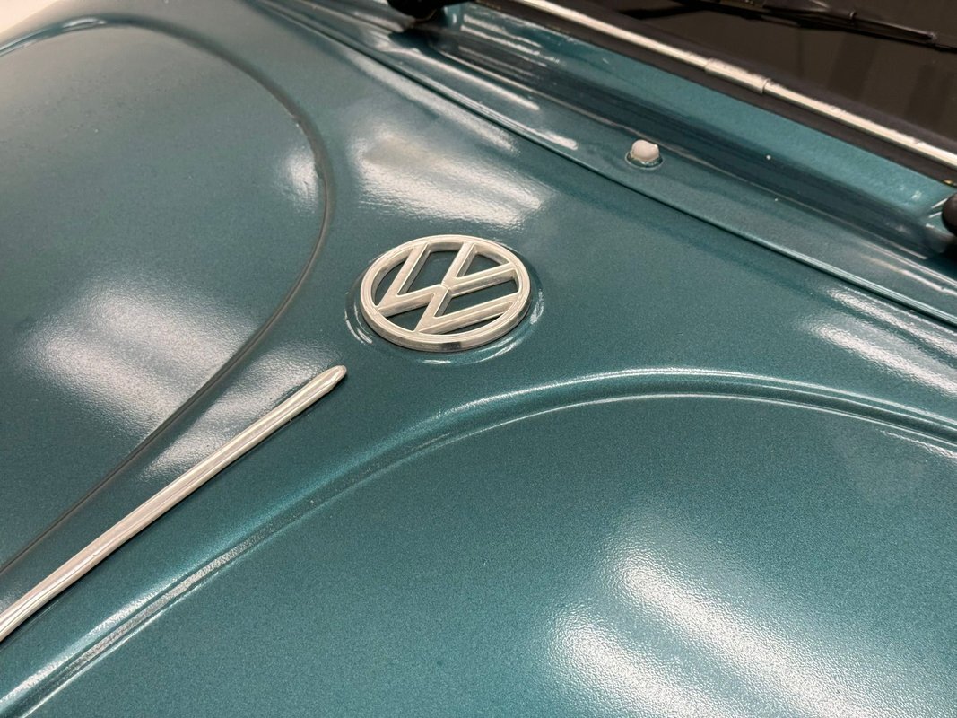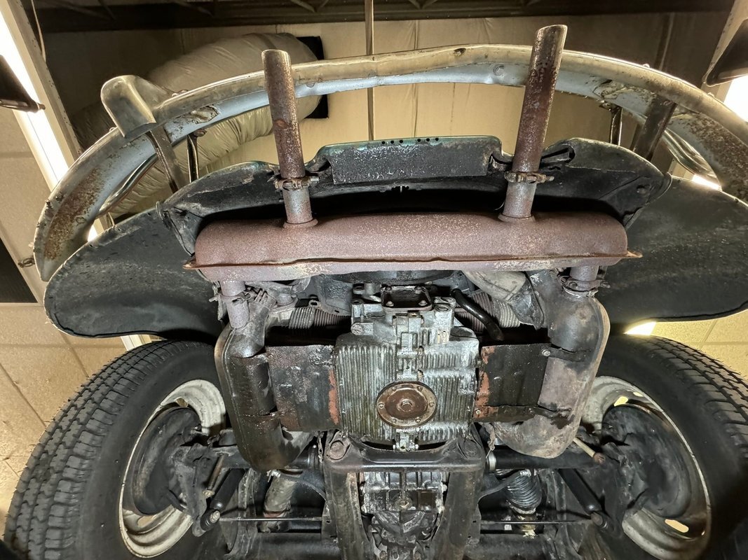 A 1600cc engine is in place rated at 60 horsepower. It's fed by a 1-barrel carburetor and tied to a 4-speed manual transmission. The rear engine compartment is clean and presentable in driver condition and of course, most components are accessible. Drum brakes occupy each corner of the Beetle.