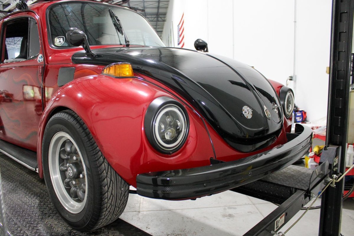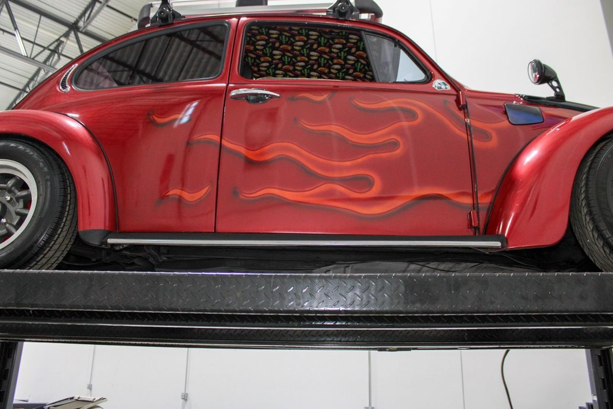 This Beetle is full of custom work. Everything has been touched from the suspension to the headliner, and even the engine.