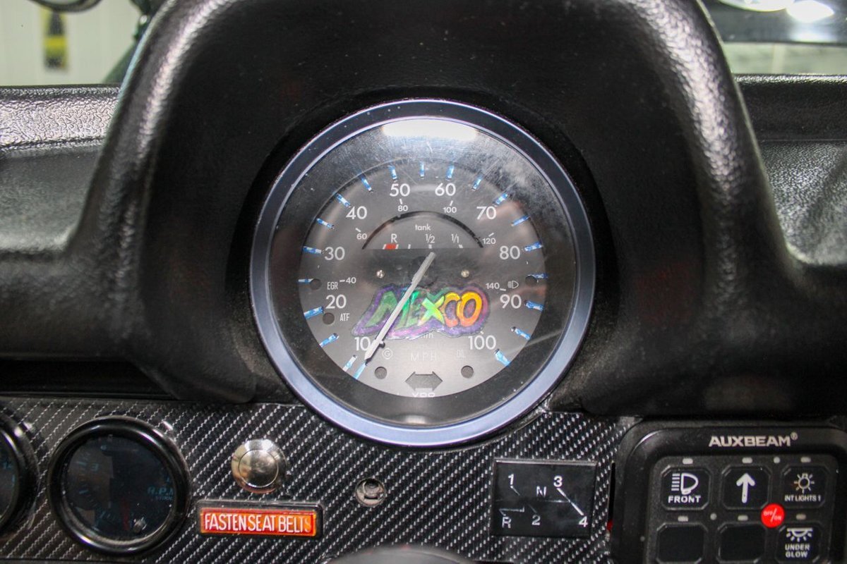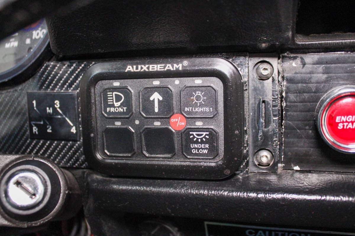 The interior and exterior are also sporting some custom features. The body has been repainted, the undercarriage is solid and undercoated. Underflow was also added. On the interior, you will find a custom dash, stearing wheel, door panels, and AUX beam panel.