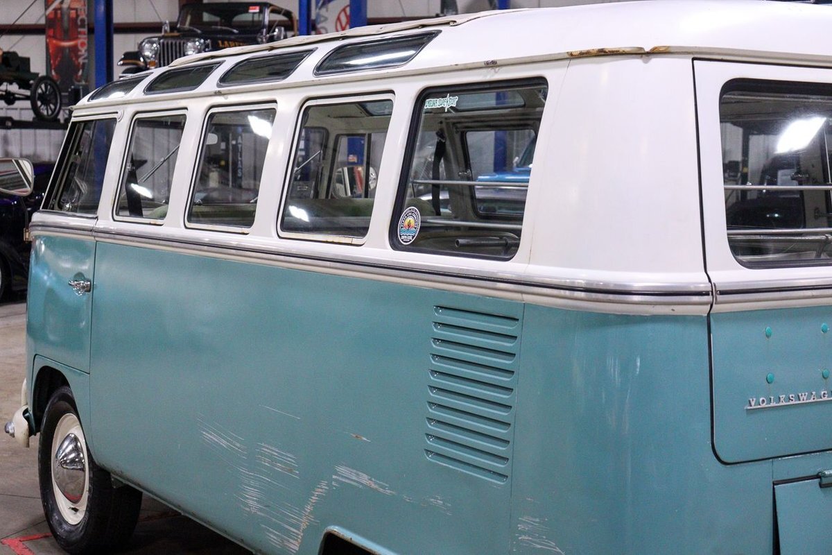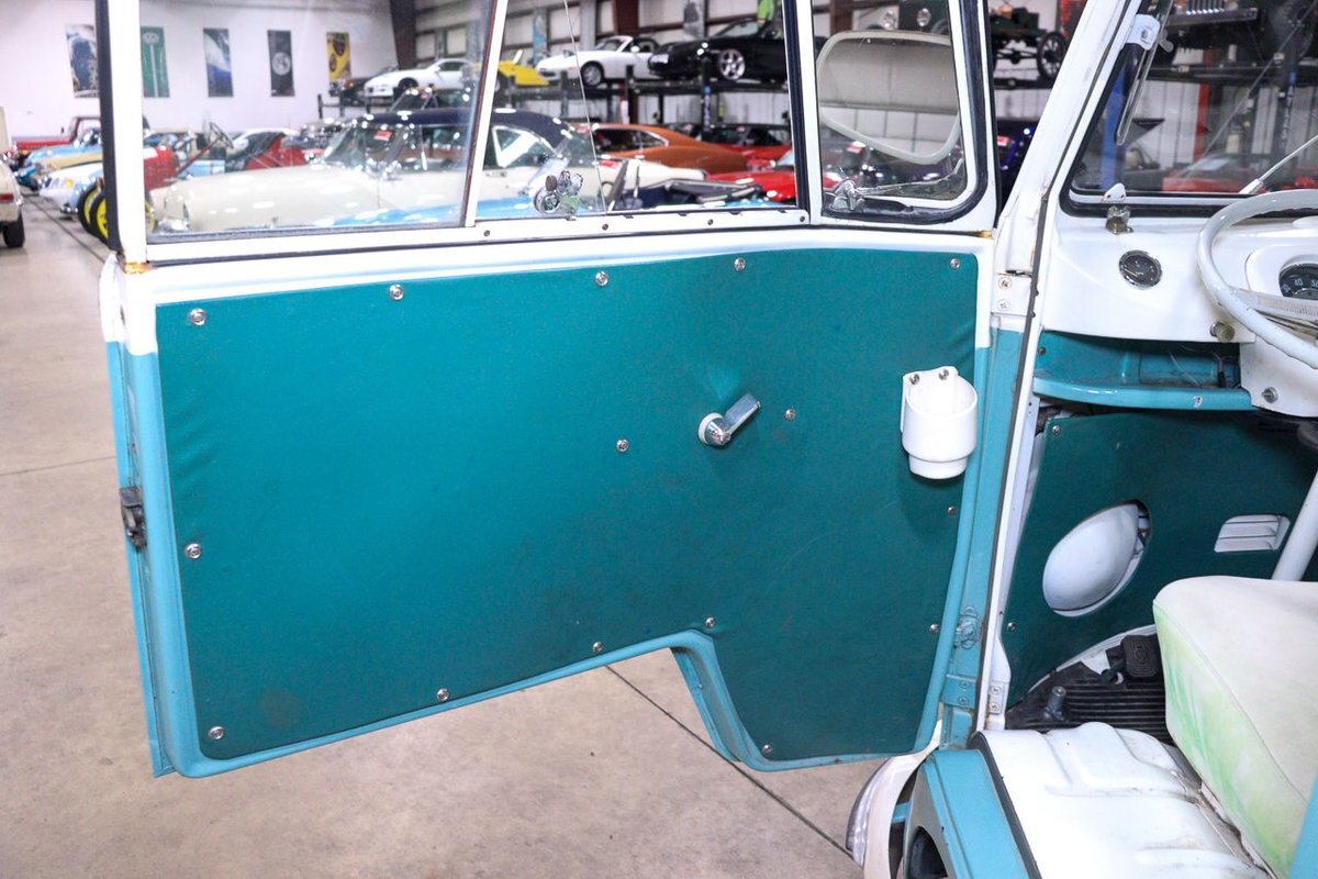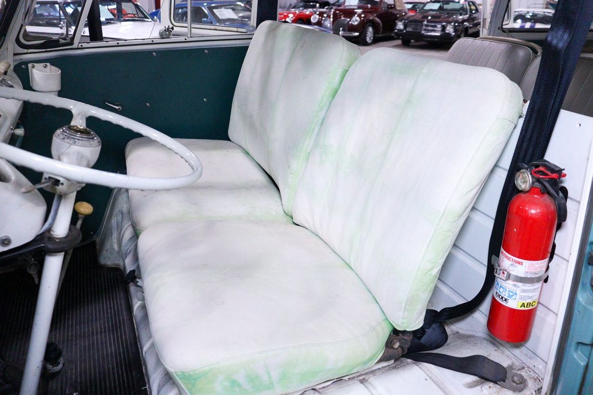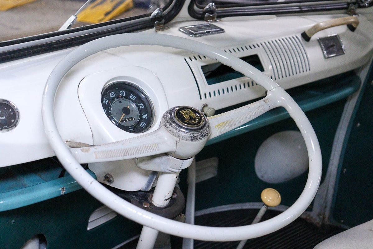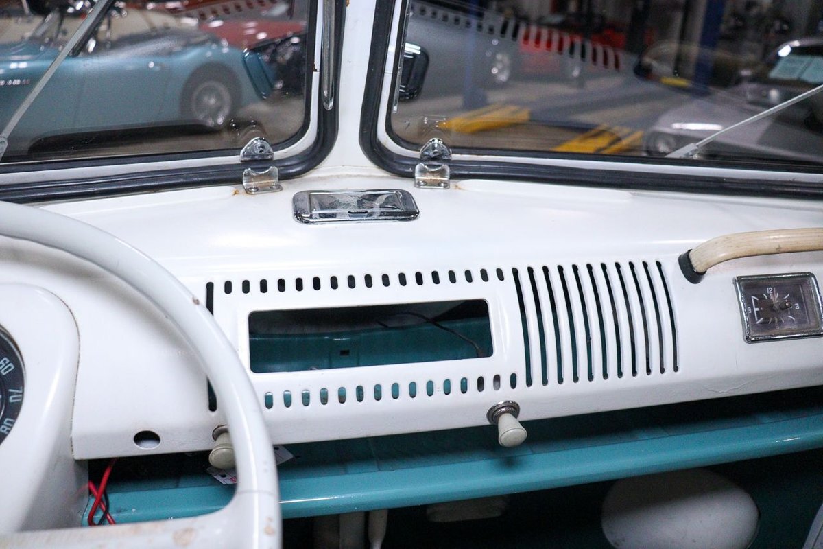 Wrapped in a captivating two-tone Turquoise and White exterior, the 1966 Volkswagen Transporter commands attention wherever it travels. Its exterior design mirrors the era's commitment to simplicity and functionality, boasting clean lines and an unmistakable rounded silhouette. Inside, the spacious cabin comfortably accommodates eight passengers, showcasing a layout that effortlessly merges utility with style. Whether navigating city streets or cruising through back roads, the Volkswagen Transporter guarantees a unique journey for both driver and passengers. Please note there is some damage on the driver's side, which is detailed in the photo gallery on our website.