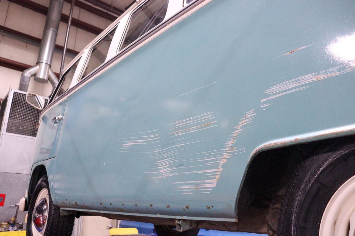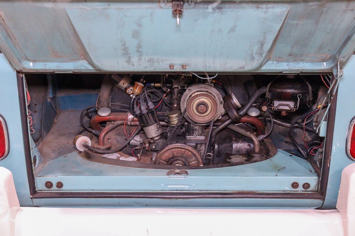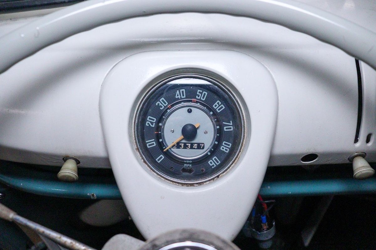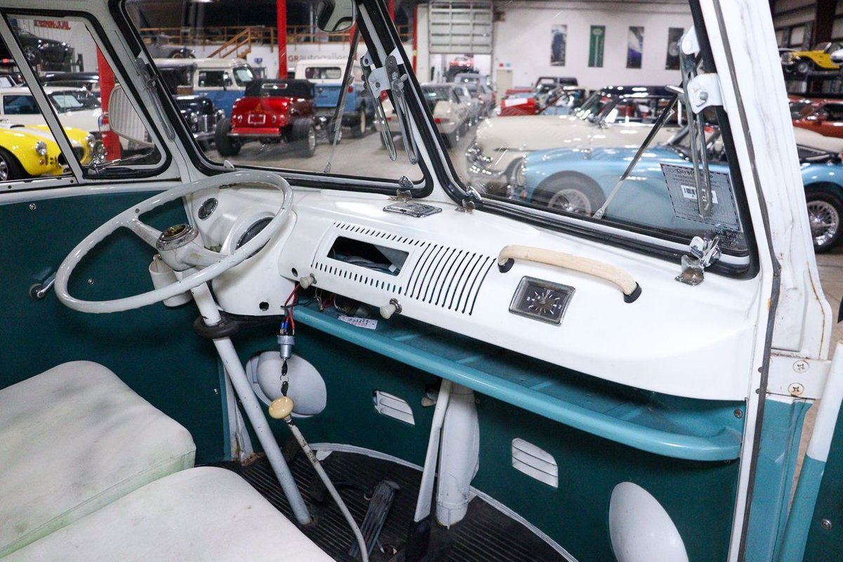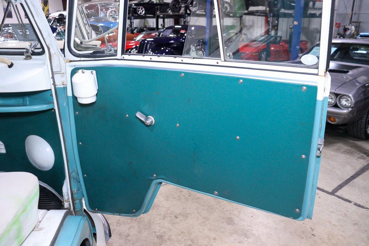 Wrapped in a captivating two-tone Turquoise and White exterior, the 1966 Volkswagen Transporter commands attention wherever it travels. Its exterior design mirrors the era's commitment to simplicity and functionality, boasting clean lines and an unmistakable rounded silhouette. Inside, the spacious cabin comfortably accommodates eight passengers, showcasing a layout that effortlessly merges utility with style. Whether navigating city streets or cruising through back roads, the Volkswagen Transporter guarantees a unique journey for both driver and passengers. Please note there is some damage on the driver's side, which is detailed in the photo gallery on our website.